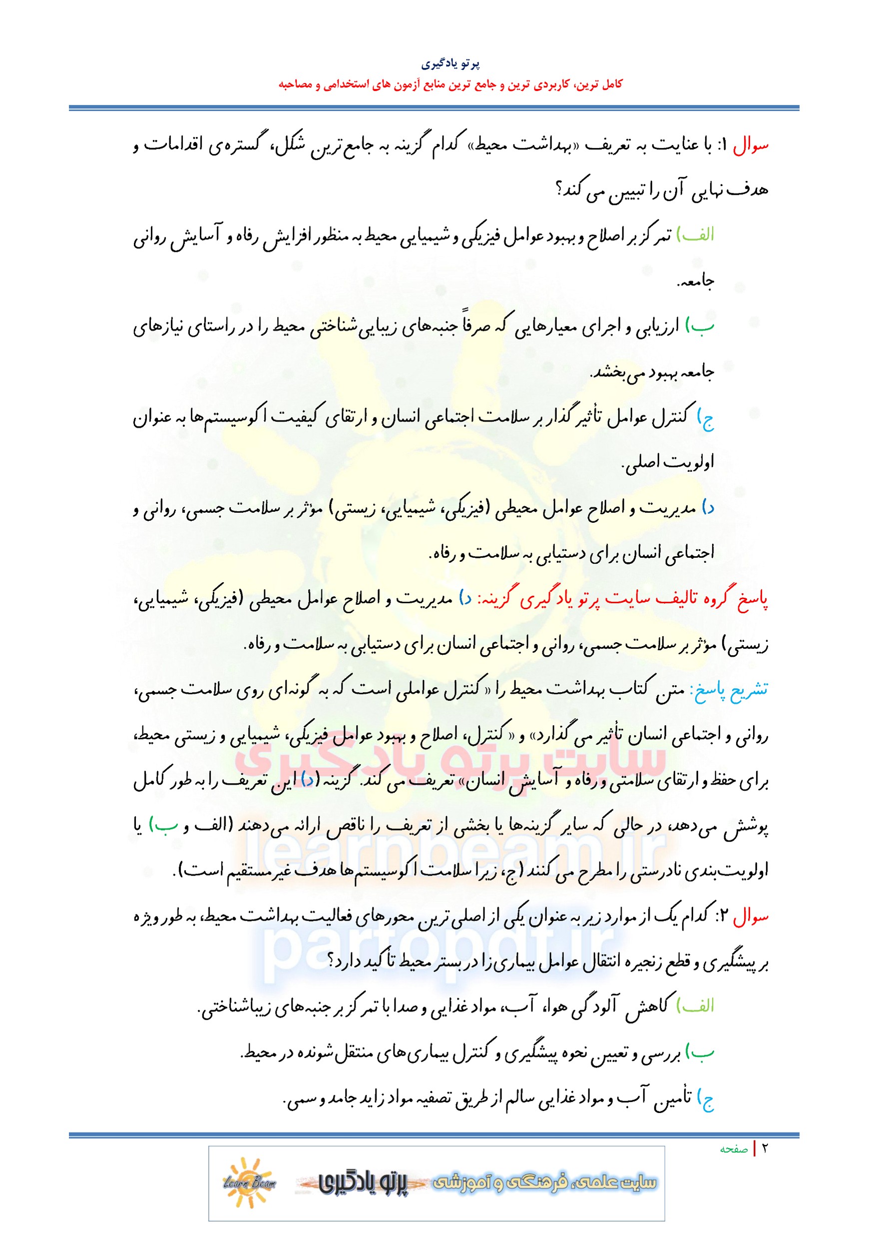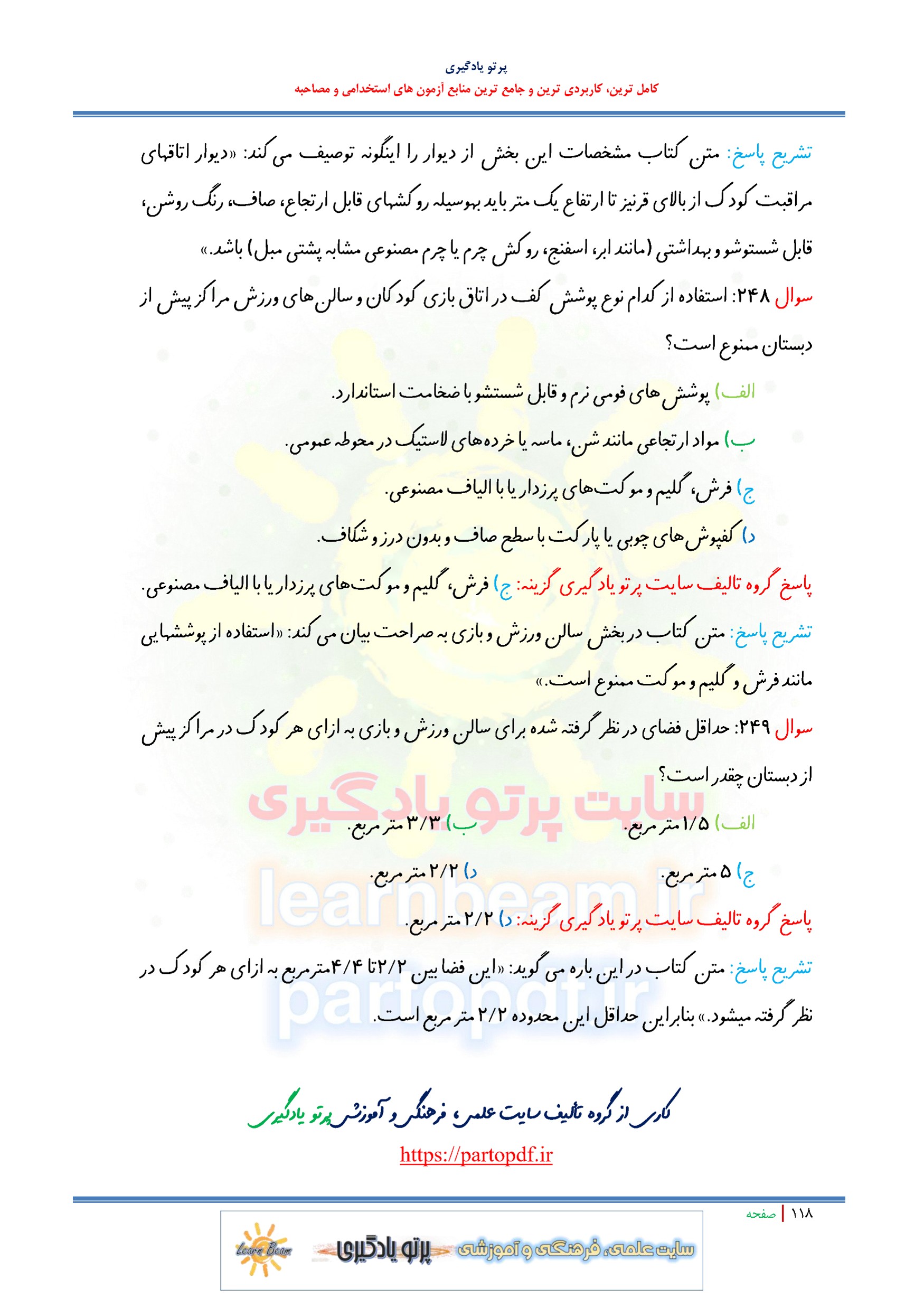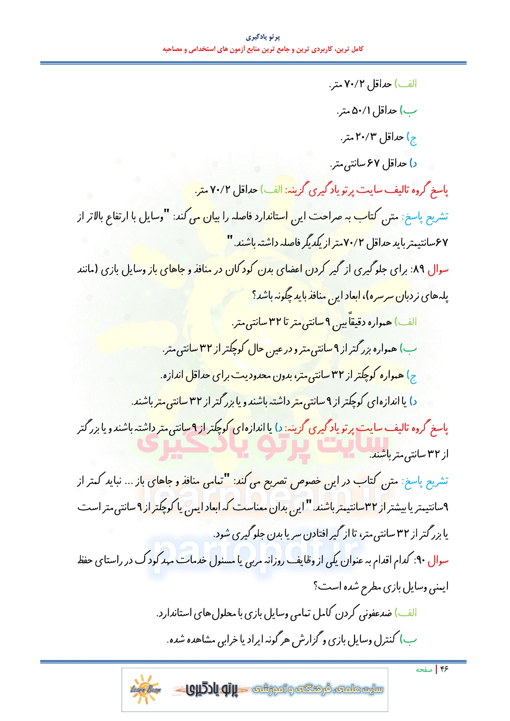 مجموعه سوالات و تست کتاب کنترل بهداشت و ایمنی محیط مراکز پیش از دبستان با پاسخ تشریحی