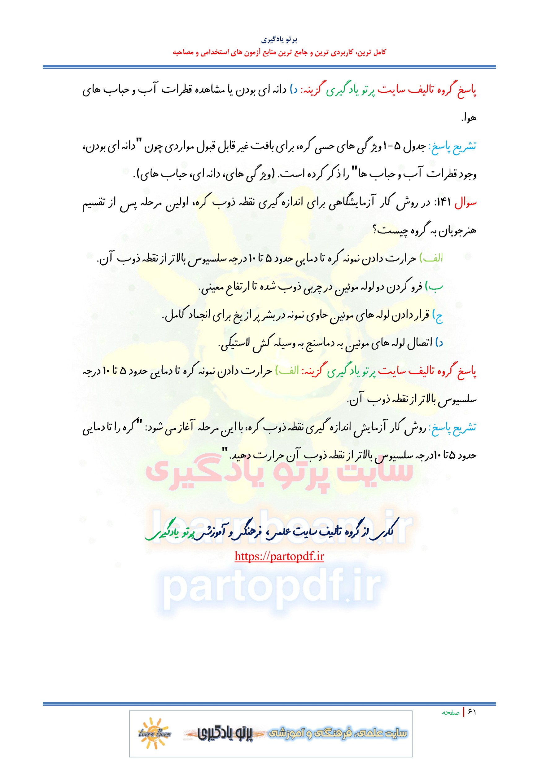سوالات تستی کتاب دانش فنی پایه صنایع غذایی