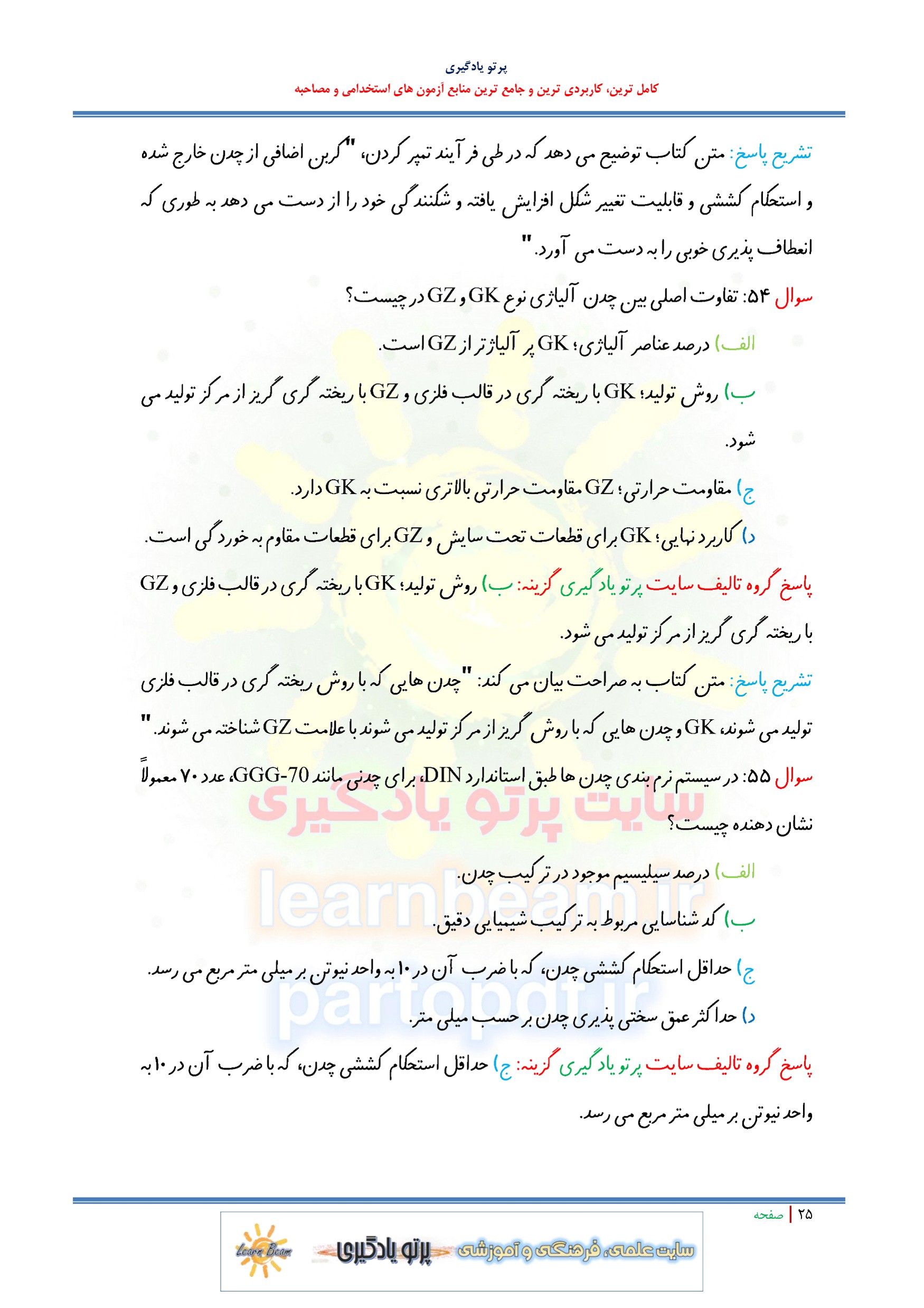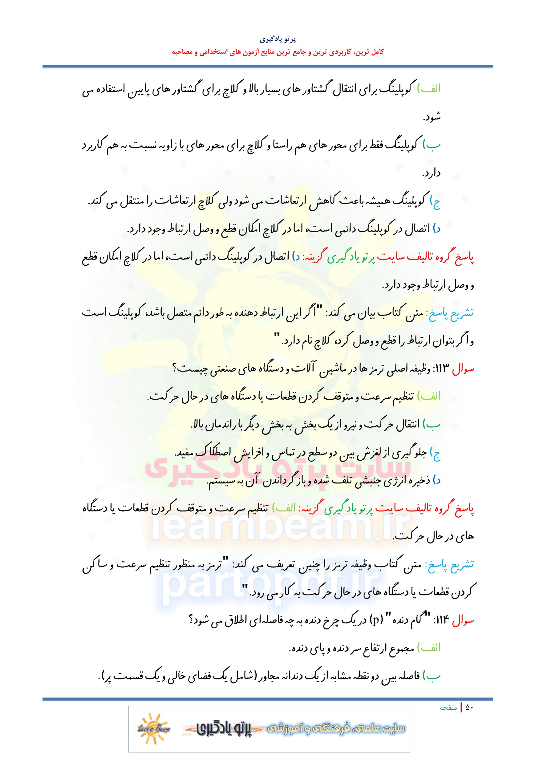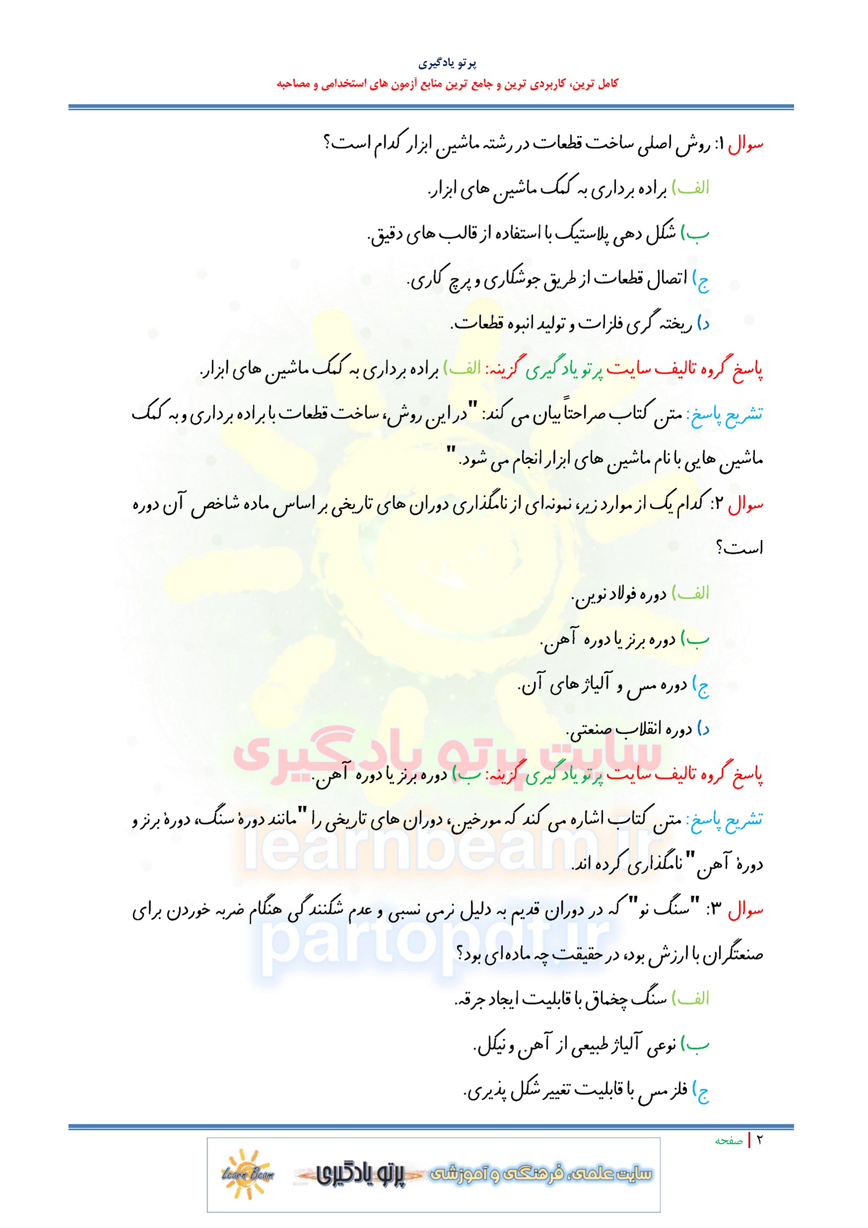 مجموعه سوالات و تست کتاب دانش فنی پایه ماشین ابزار با پاسخ تشریحی
