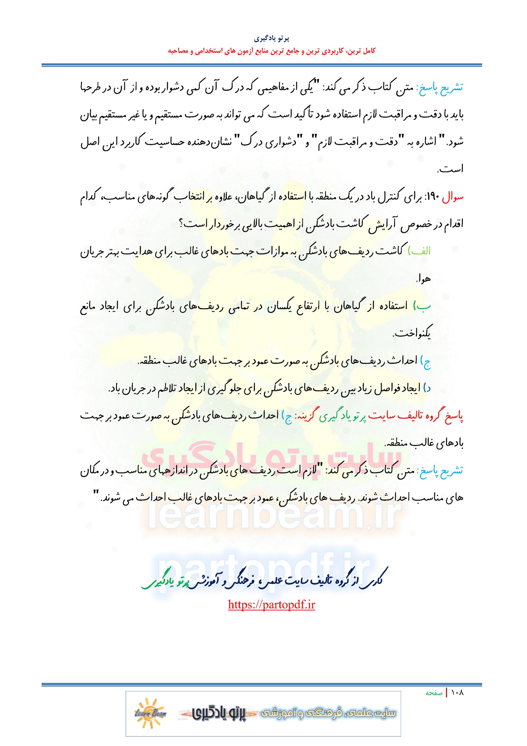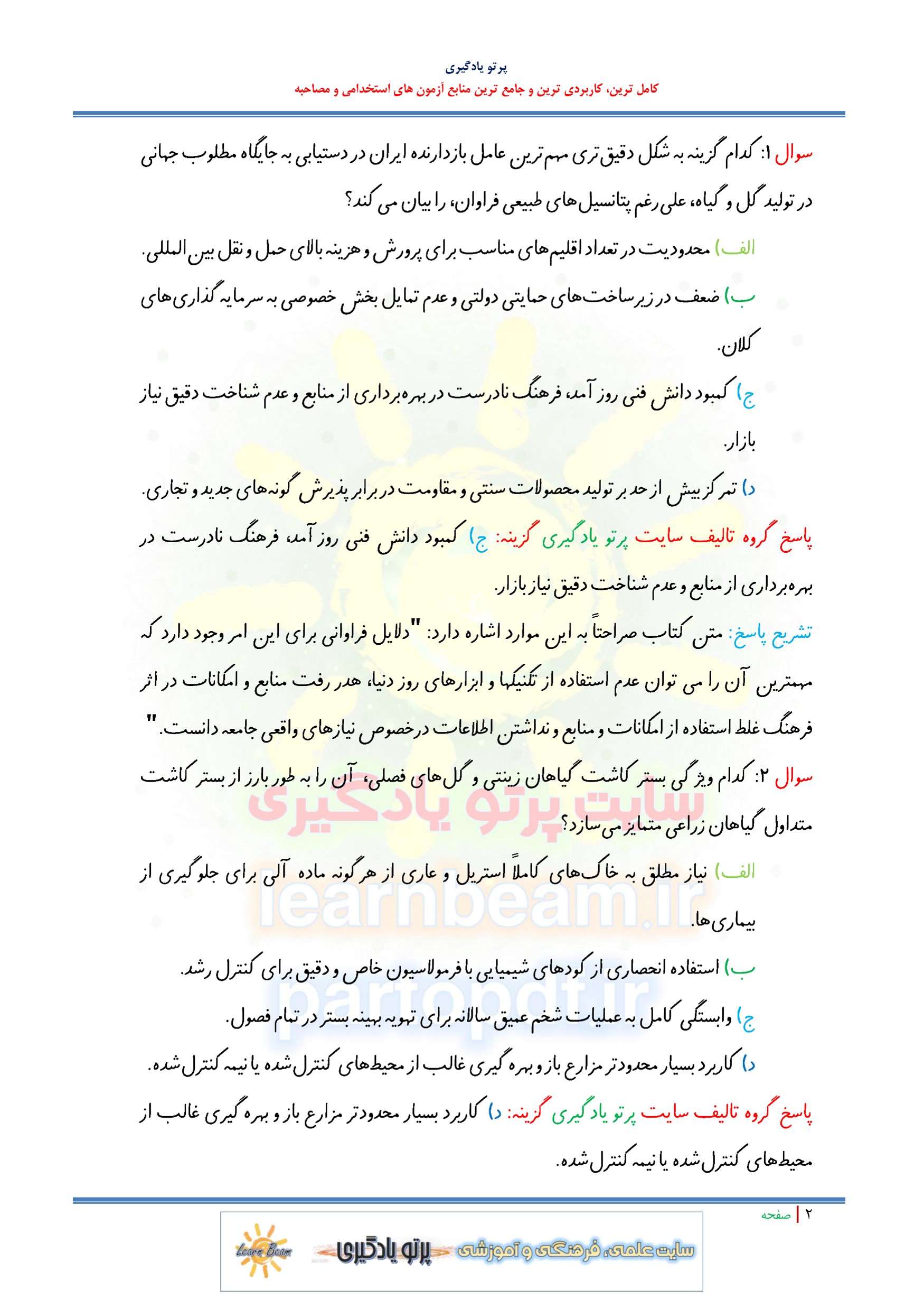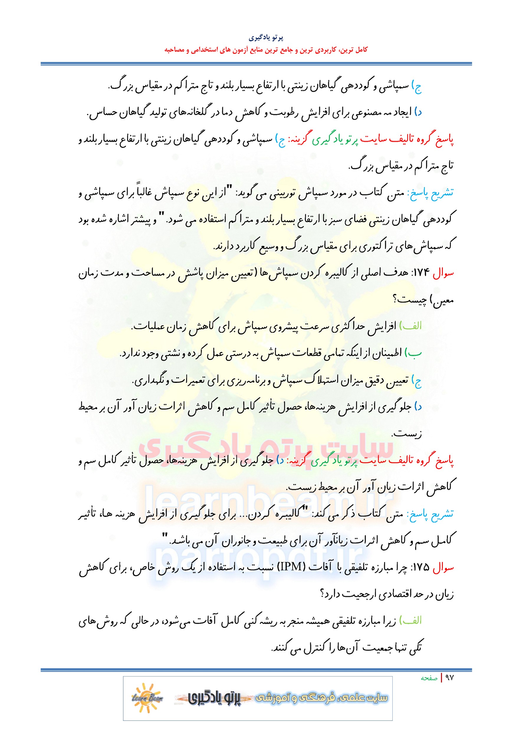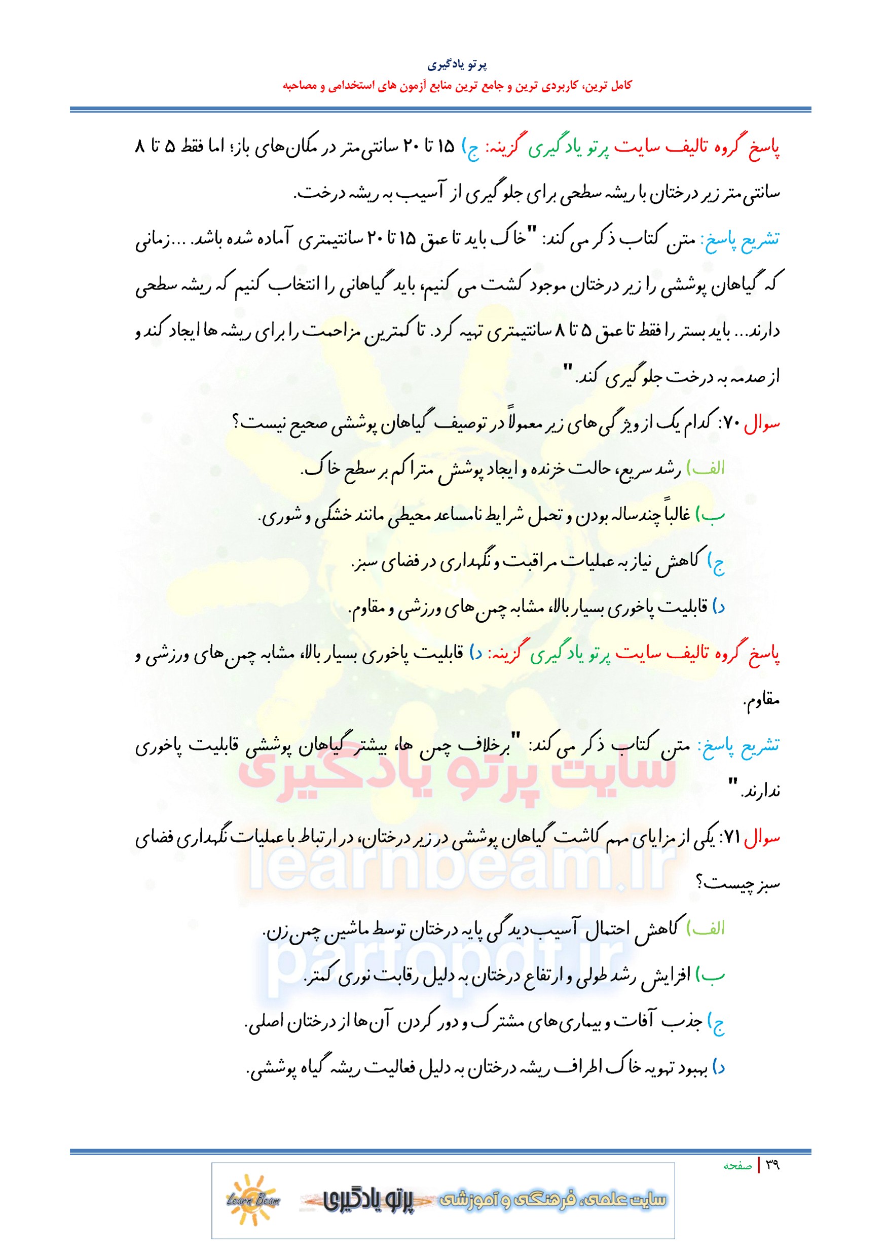 مجموعه سوالات و تست کتاب تولید و نگهداری گیاهان فضای سبز با پاسخ تشریحی