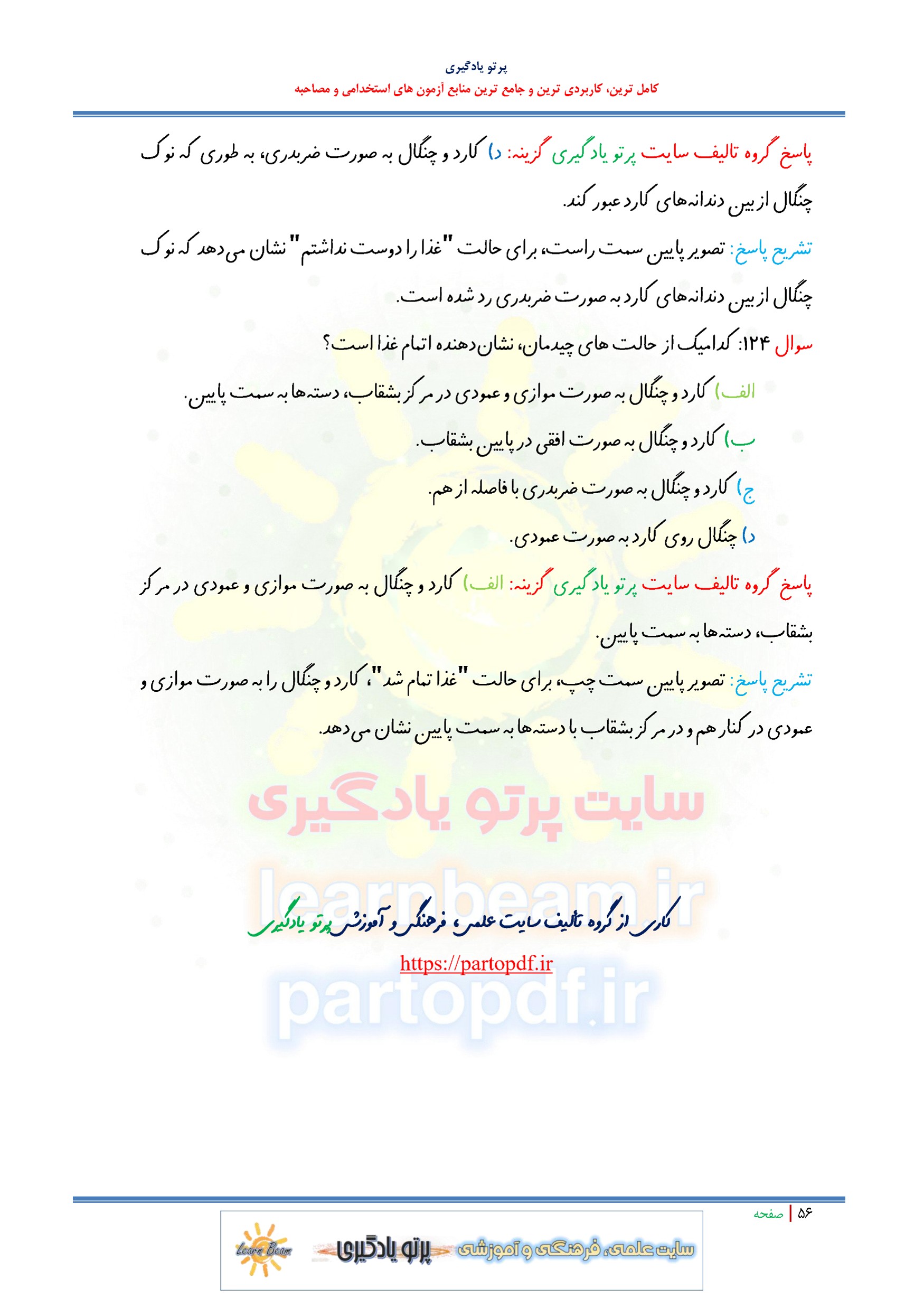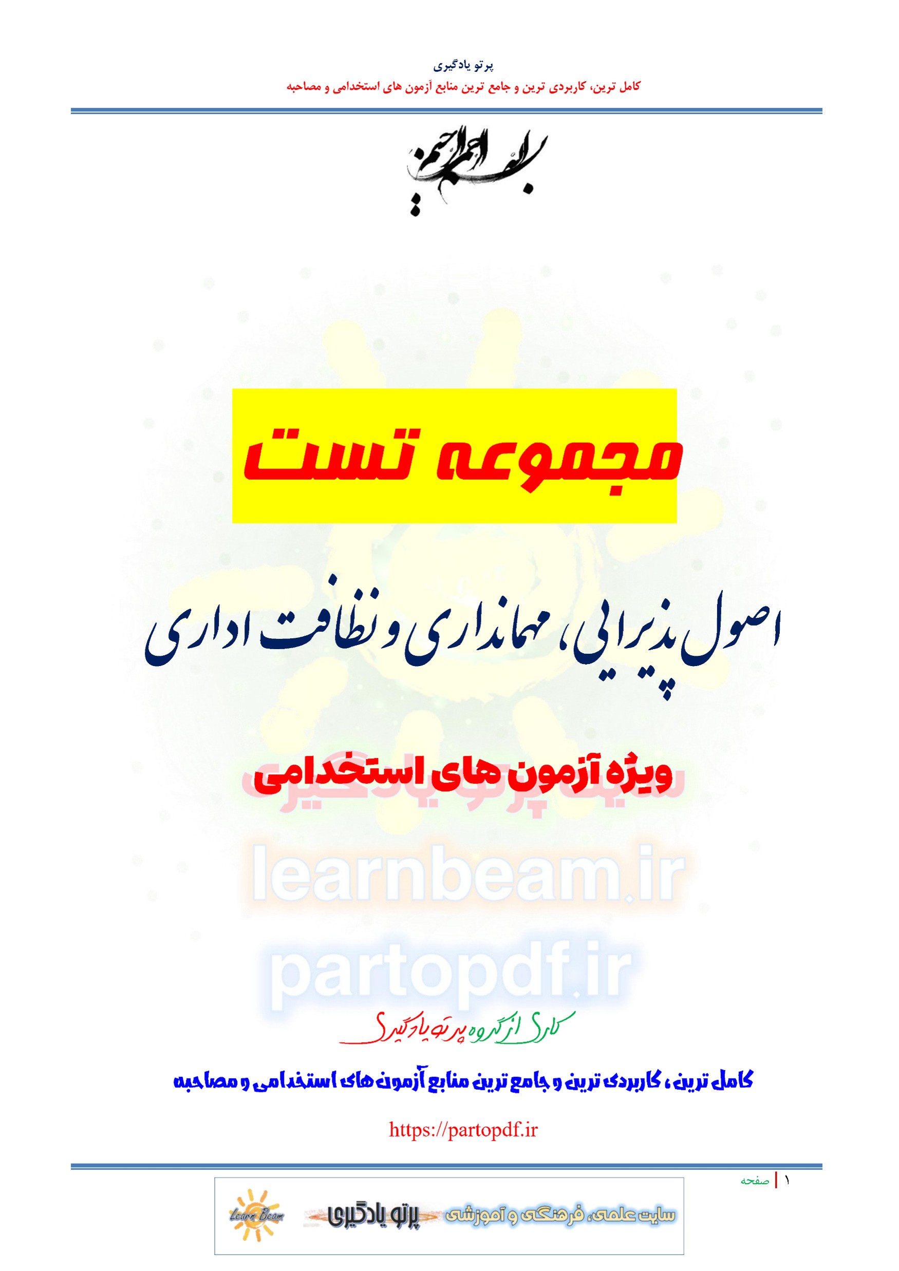 سوالات و تست کتاب اصول پذیرایی مهمانداری و نظافت اداری شامل 124 تست در 56 صفحه با پاسخ تشریحی در قالب فایل pdf. بهترین منبع برای آزمون های استخدامی می باشد. جزوه سوالات تستی کتاب اصول پذیرایی مهمانداری و نظافت اداری مطالب خوانده شده داوطلبین آزمون استخدامی را نظم بخشیده و منسجم می سازد. این مجموعه مرور سریع داوطلب را سبب می شود و آگاهی های وی را نظم بخشیده و یک آمادگی و شبیه سازی را برای جلسه آزمون به همراه دارد. مطالعه این منبع برای همه داوطلبین عزیز پیشنهاد می شود.