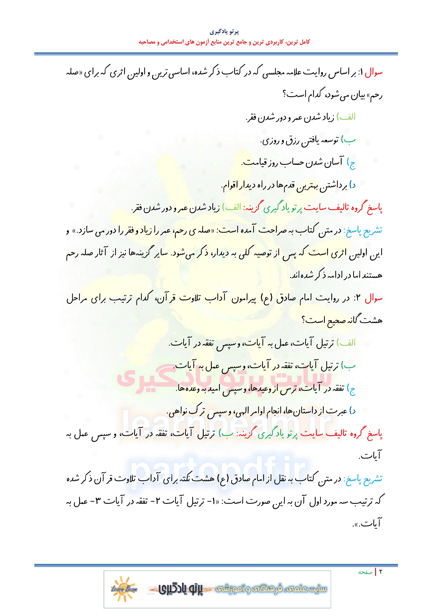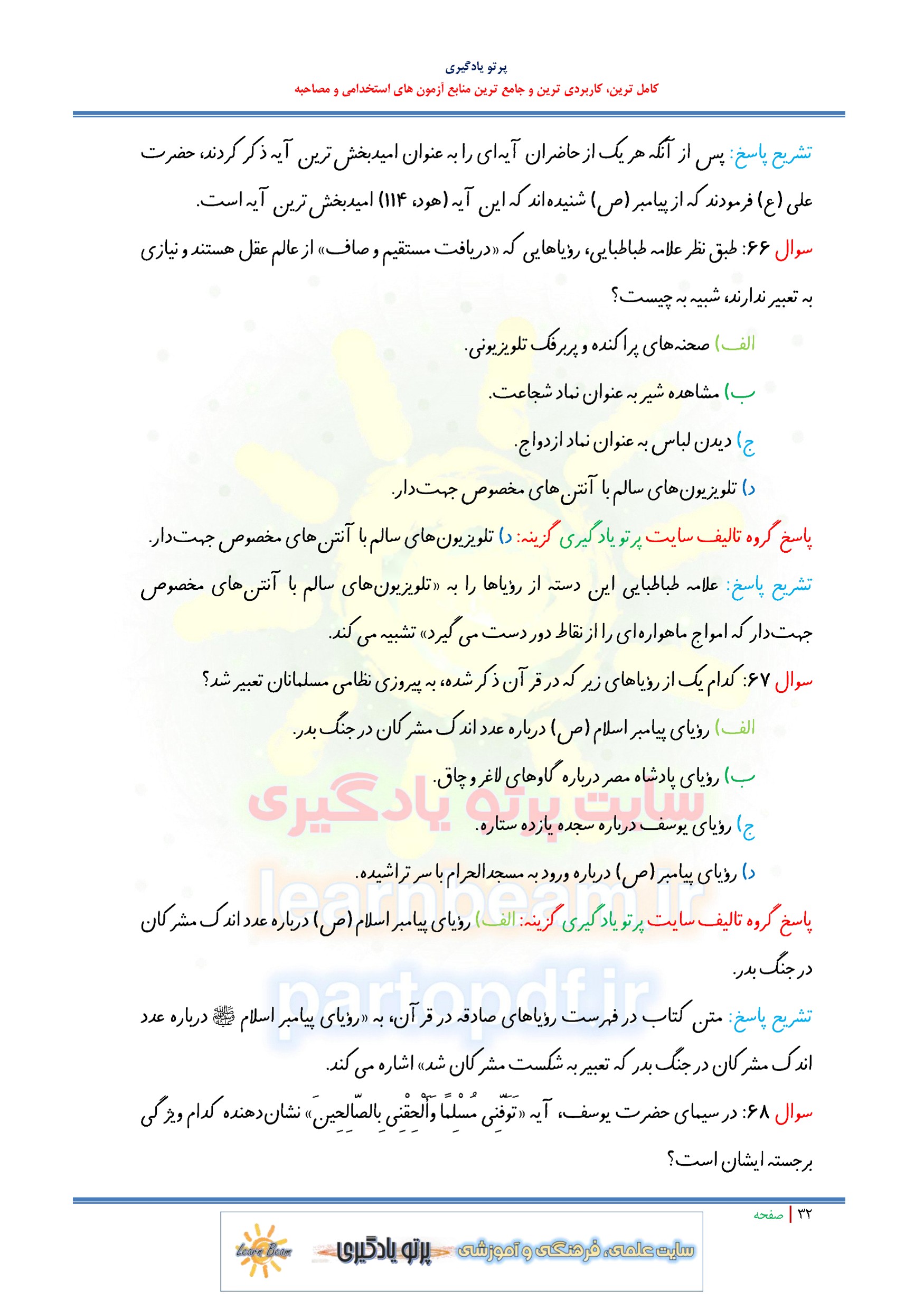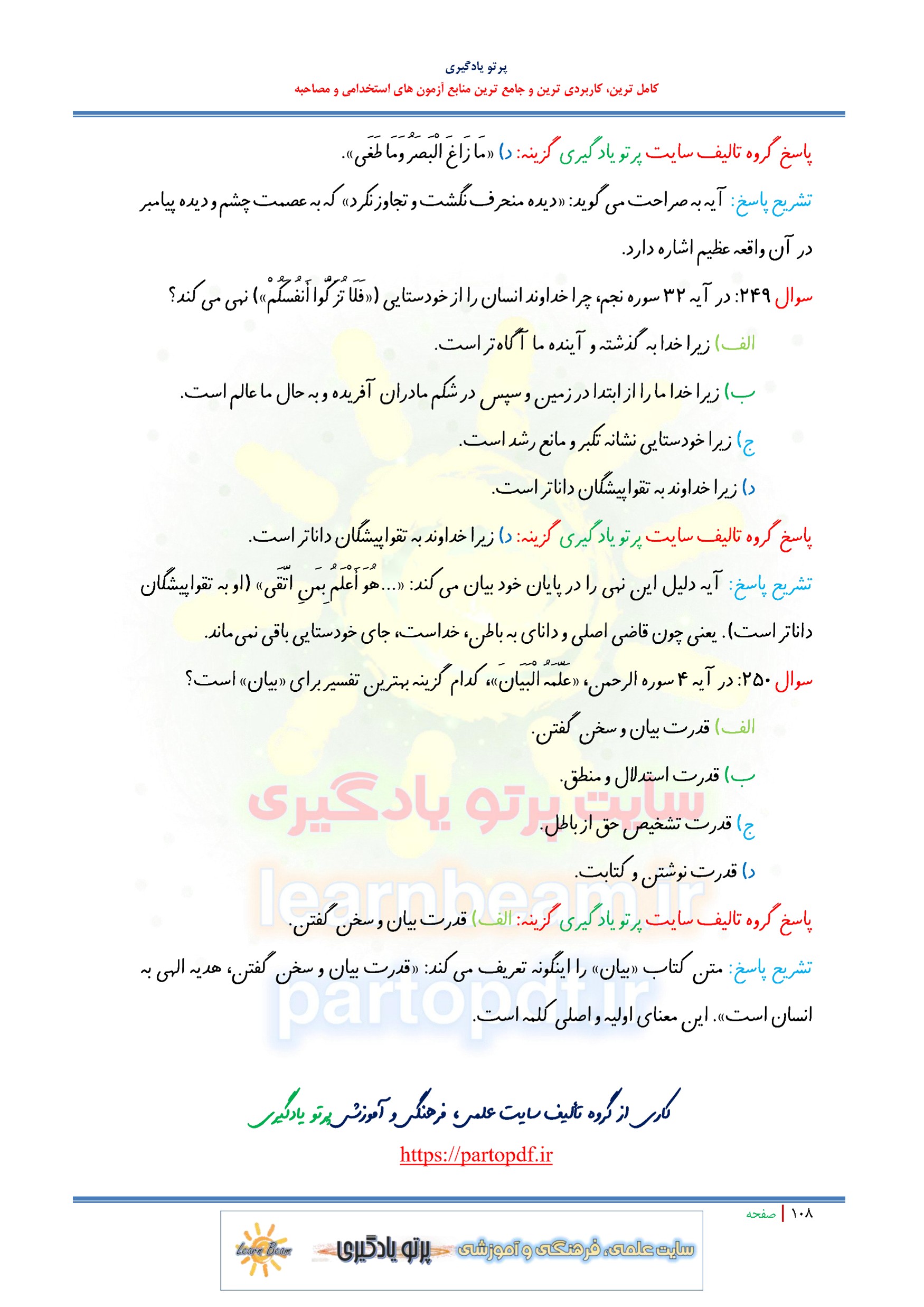 مجموعه سوالات و تست کتاب دقایقی با قرآن با پاسخ تشریحی