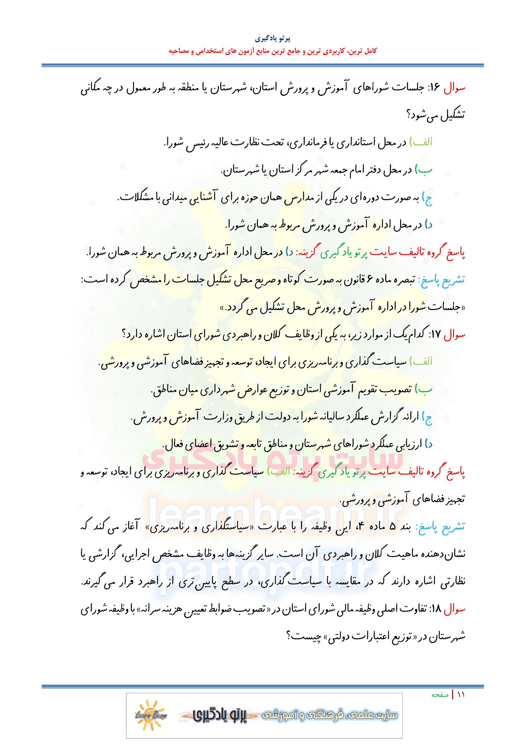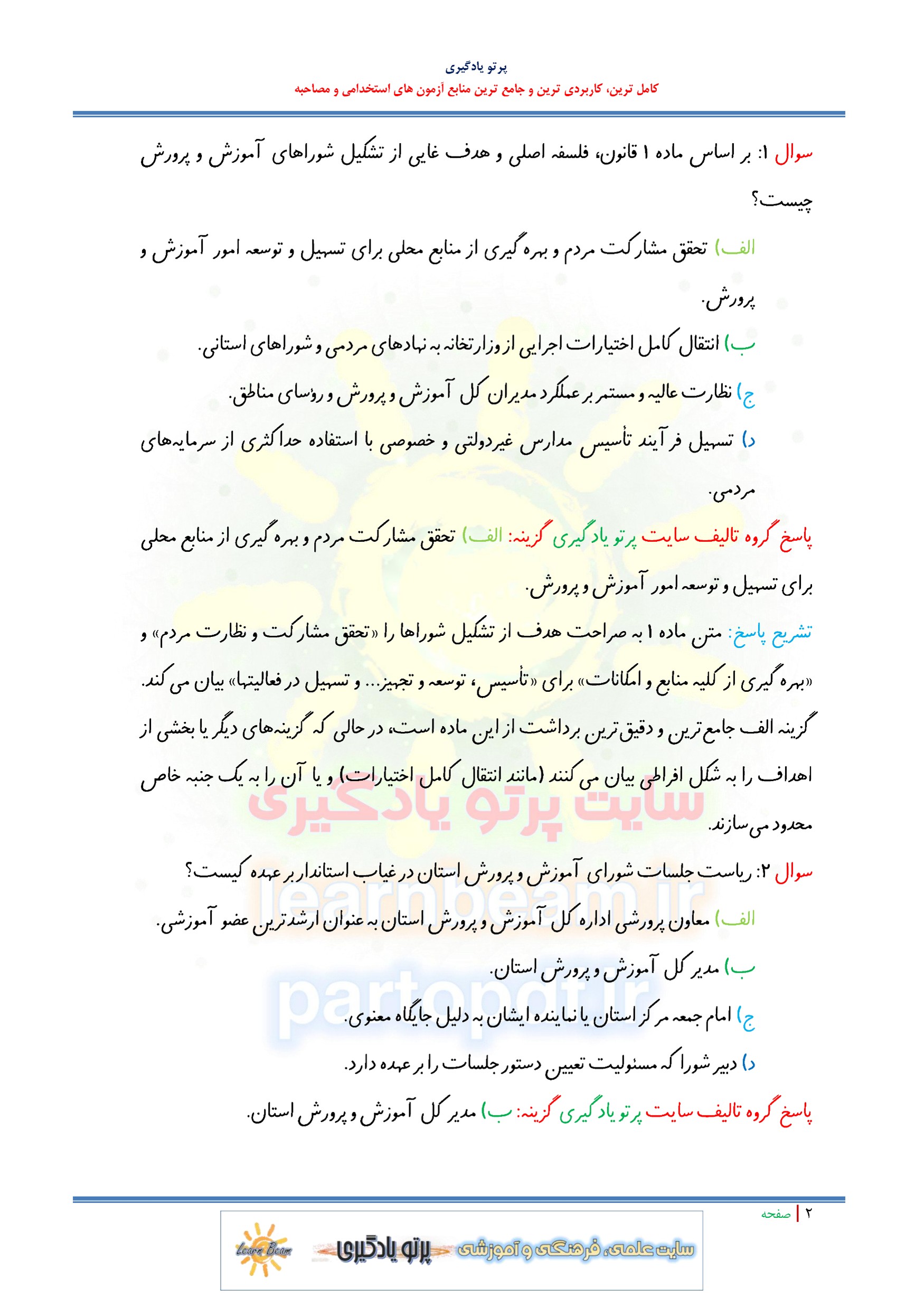 مجموعه سوالات و تست قانون تشکیل شوراهای آموزش و پرورش با پاسخ تشریحی