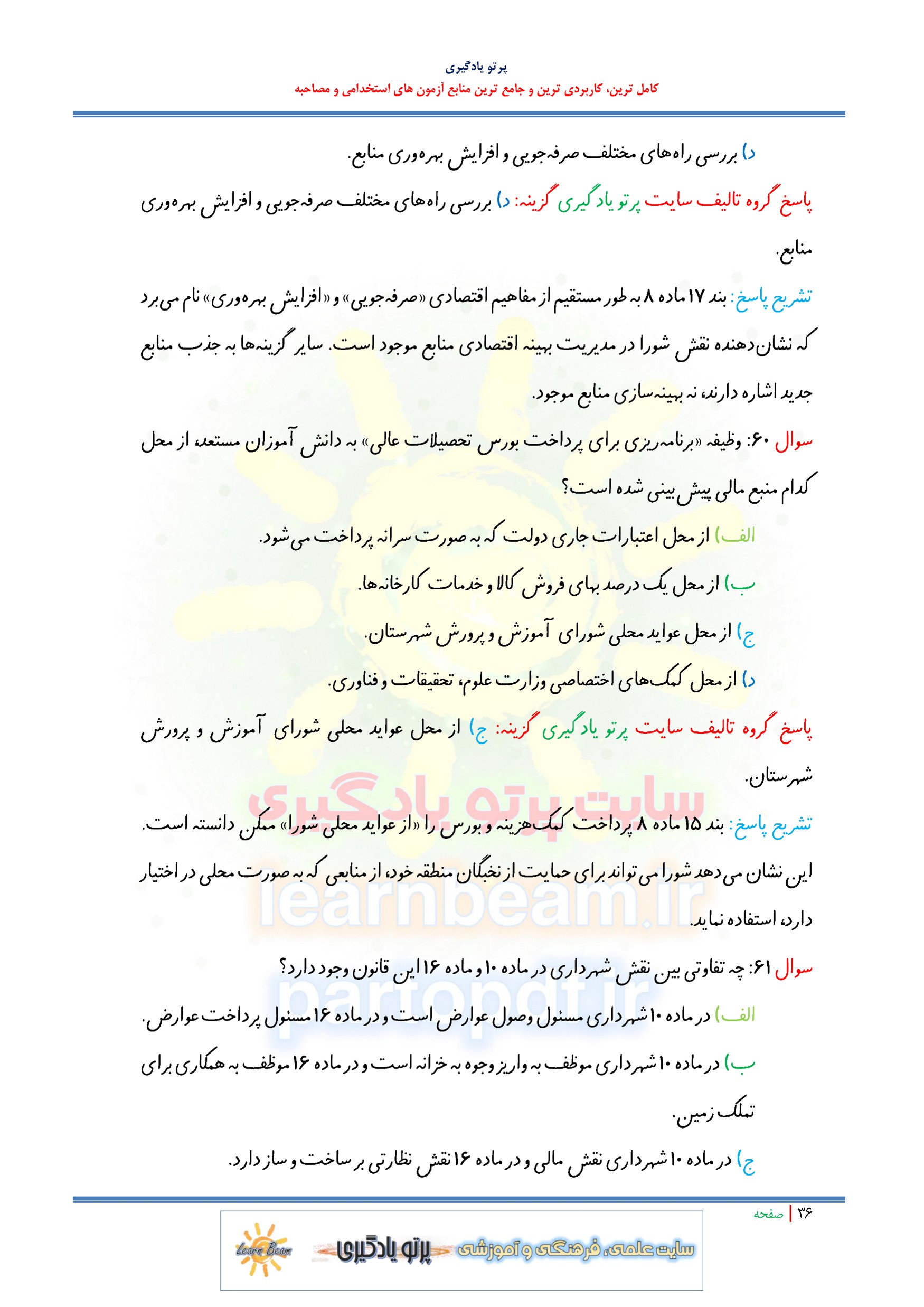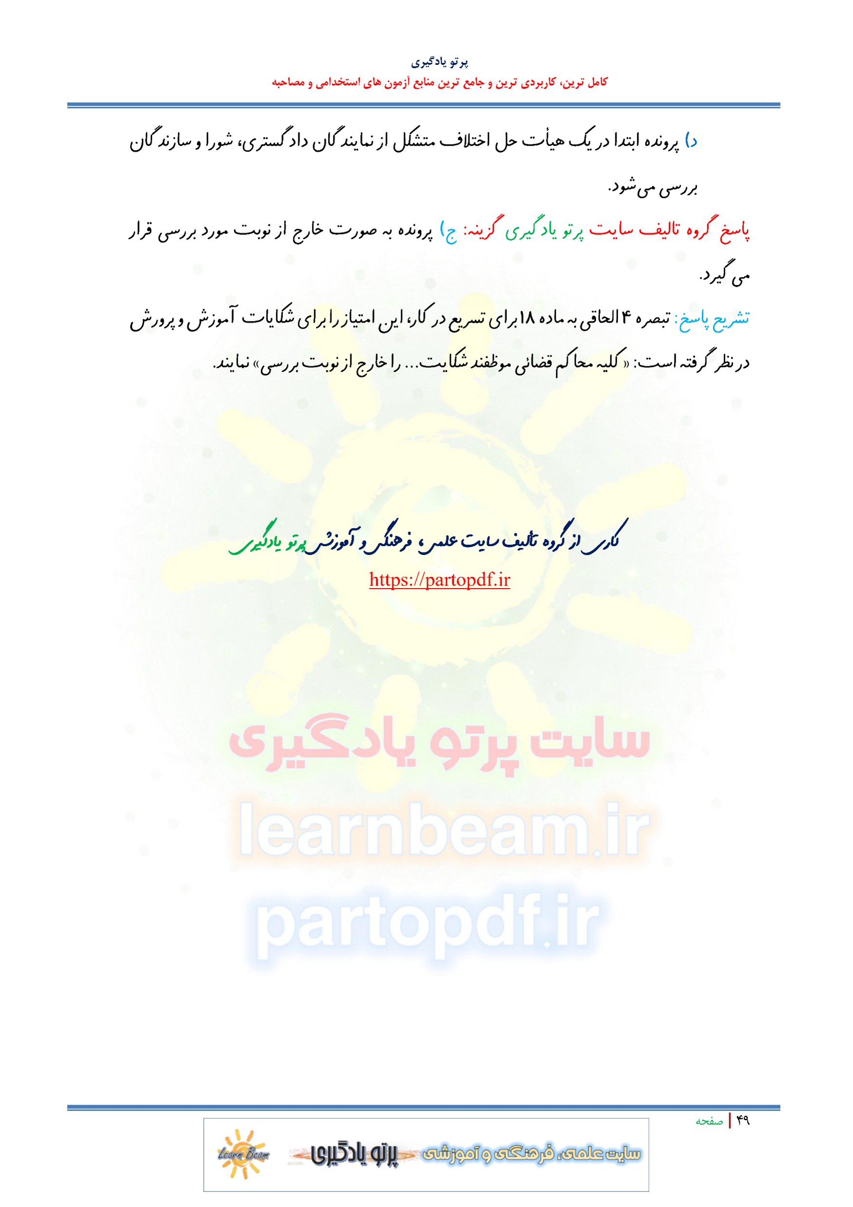سوالات و تست کتاب قانون تشکیل شوراهای آموزش و پرورش شامل 80 سوال تستی در 49 صفحه و پاسخ تشریحی در قالب فایل pdf مطابق با سرفصل های دفترچه آزمون های استخدامی. مجموعه تست قانون تشکیل شوراهای آموزش و پرورش بهترین منبع برای آمادگی آزمون های استخدامی می باشد. مجموعه سوالات و تست قانون تشکیل شوراهای آموزش و پرورش مطالب خوانده شده داوطلبین آزمون استخدامی را نظم بخشیده و منسجم می سازد. مجموعه سوالات تستی قانون تشکیل شوراهای آموزش و پرورش ویژه استخدامی وزارت آموزش و پرورش مرور سریع داوطلب را سبب می شود و آگاهی های وی را نظم بخشیده و یک آمادگی و شبیه سازی را برای جلسه آزمون به همراه دارد. مطالعه این منبع داوطلبین آزمون های استخدامی پیشنهاد می شود.