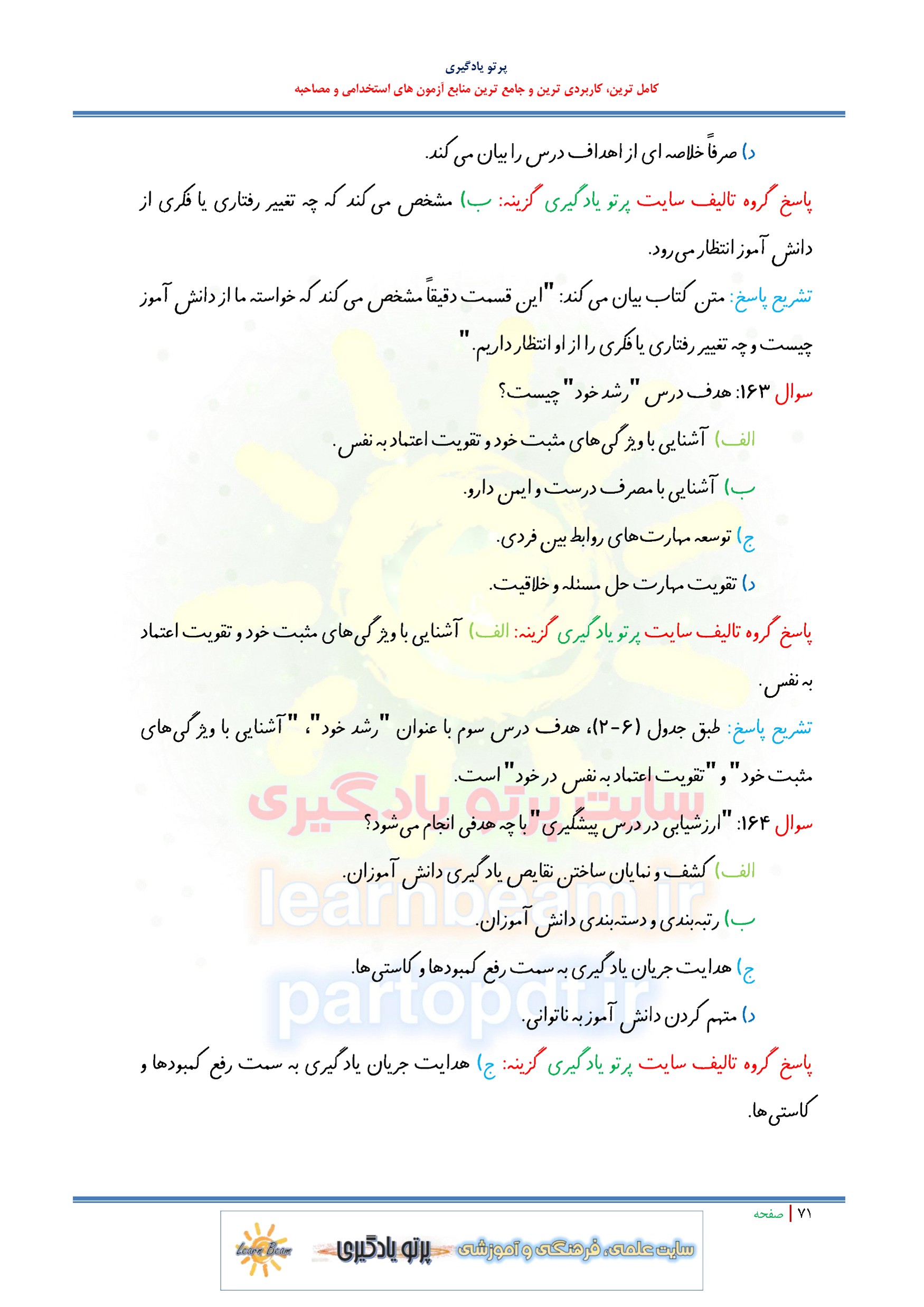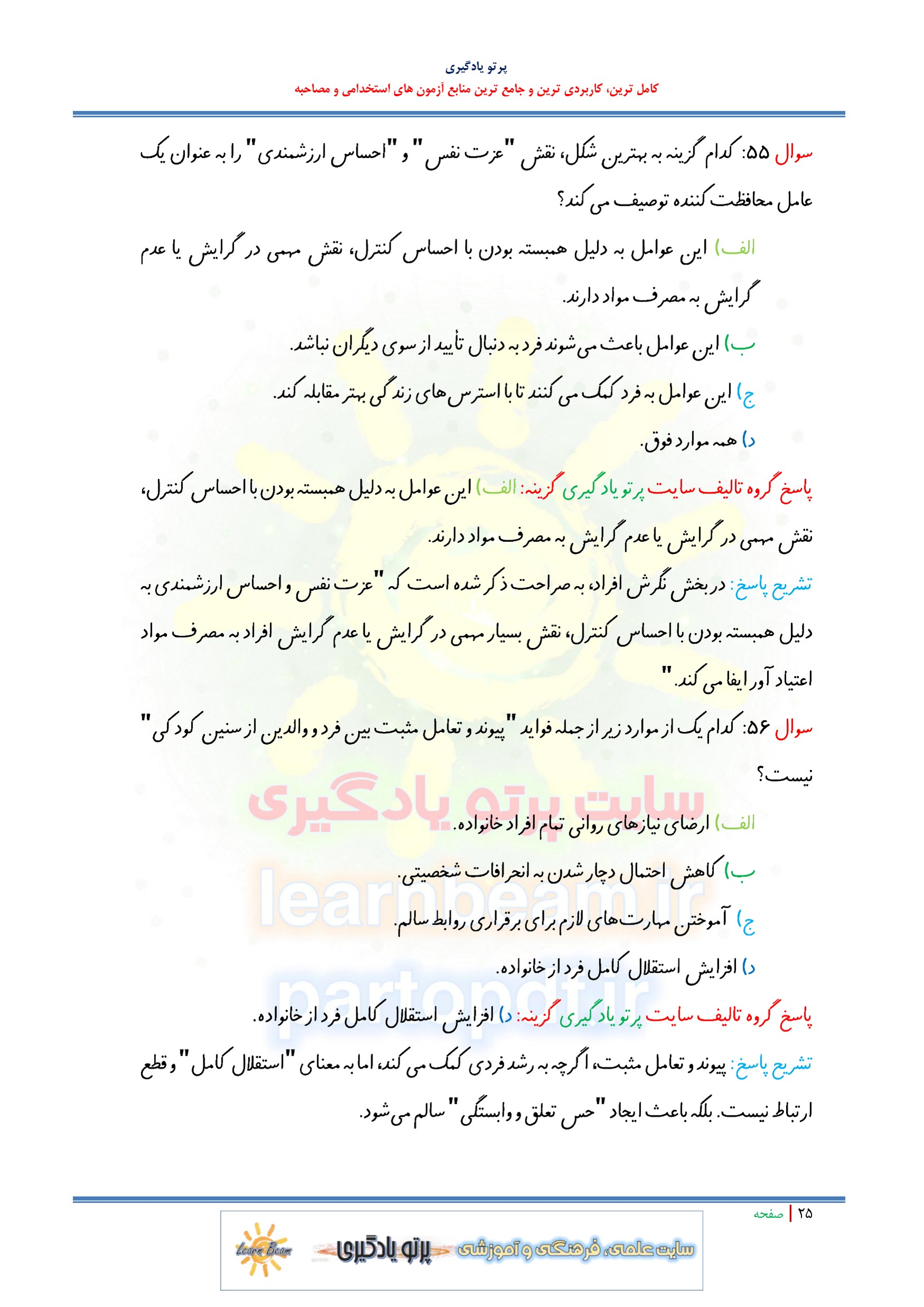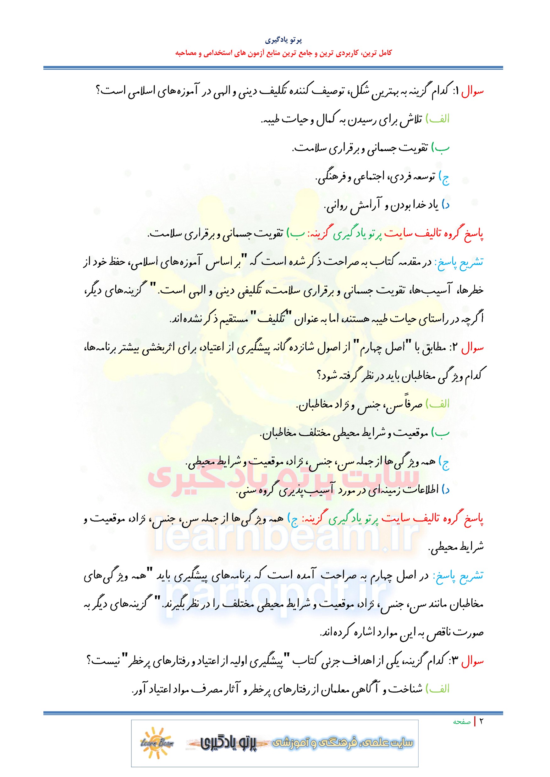 مجموعه سوالات و تست کتاب پیشگیری اولیه از اعتیاد و رفتارهای پرخطر با پاسخ تشریحی