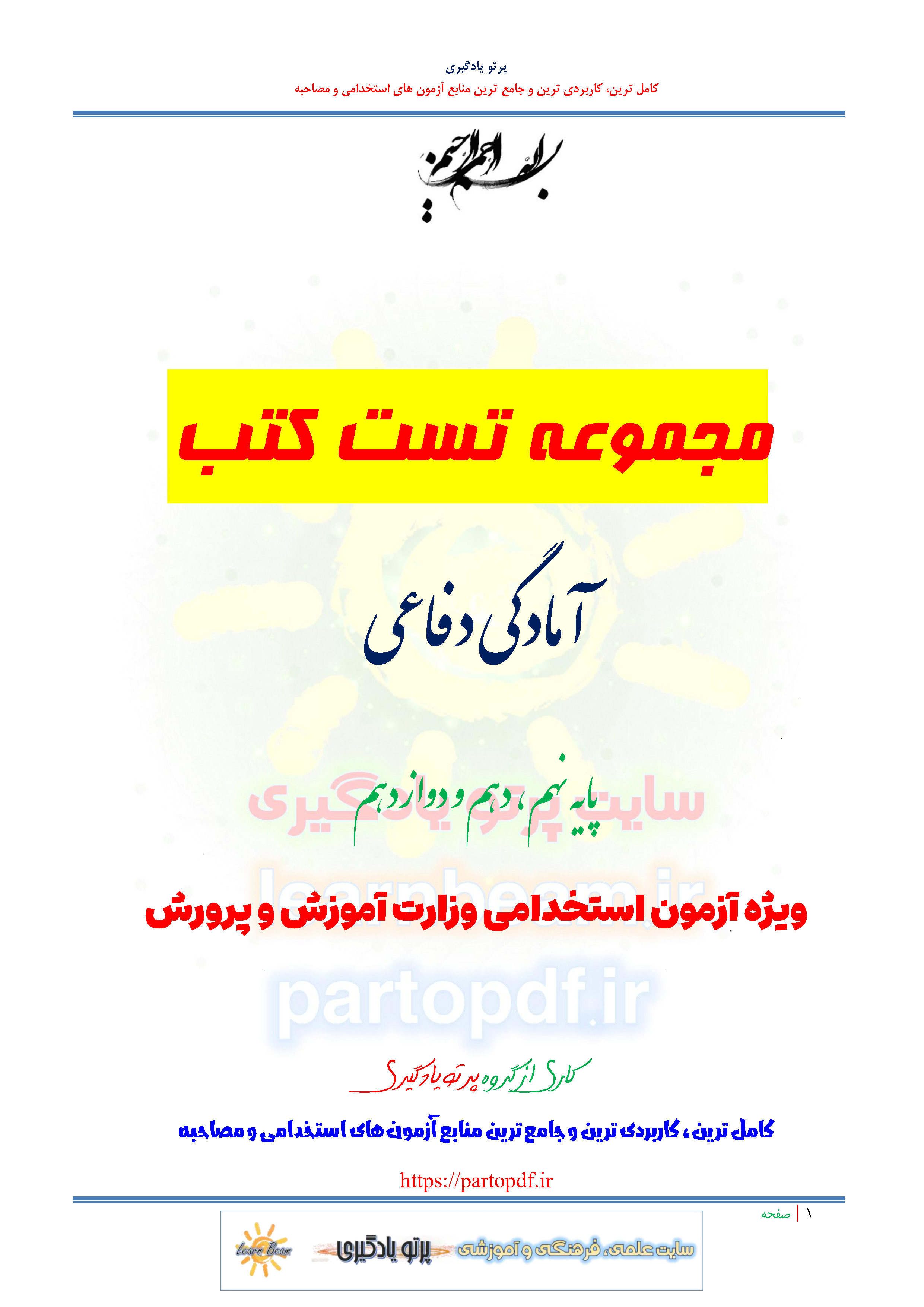 1) تست كتب درسي درس آمادگي دفاعي (129 تست در 28 صفحه)