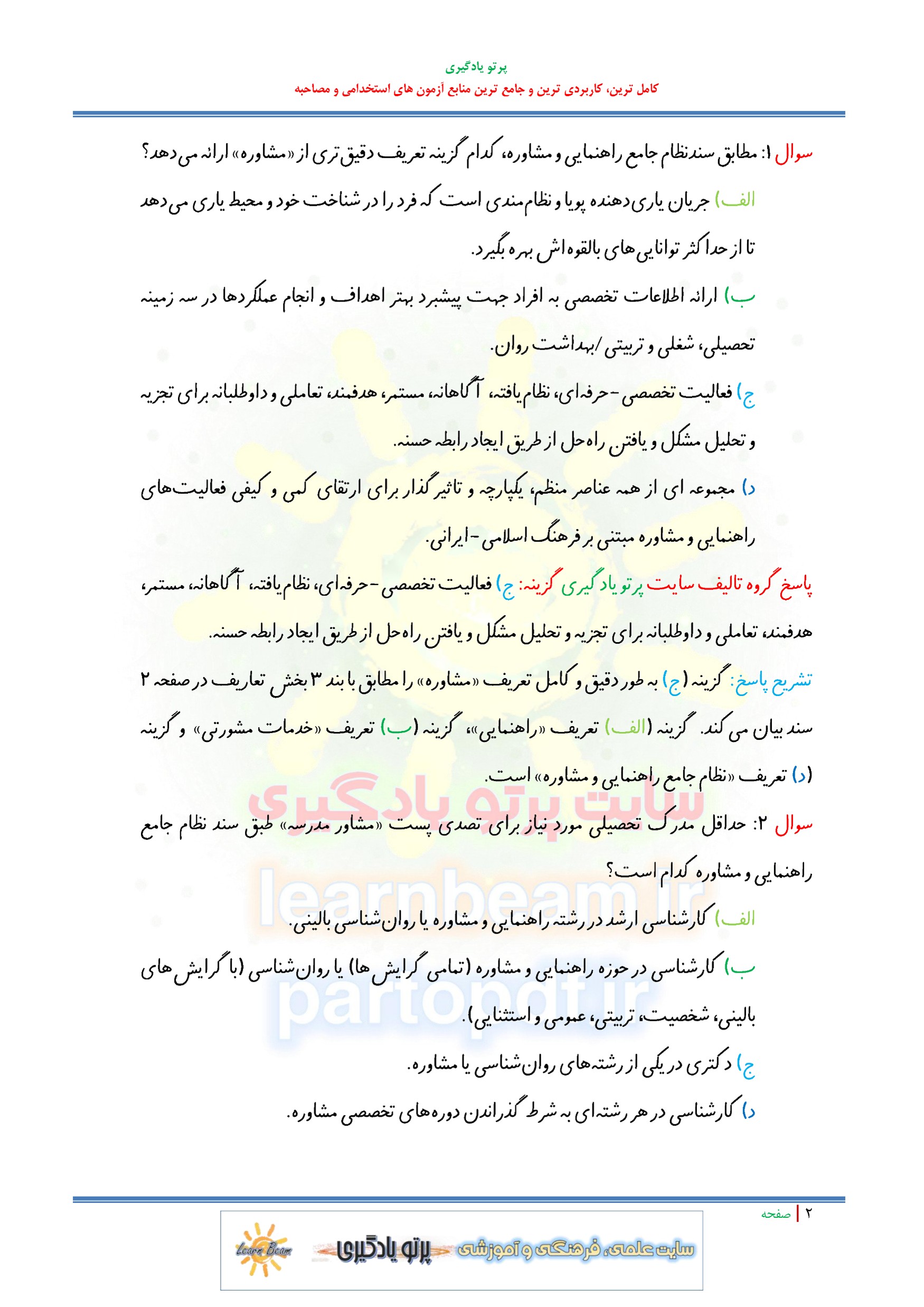 مجموعه سوالات و تست سند نظام جامع راهنمایی و مشاوره در آموزش و پرورش سال 1400 با پاسخ تشریحی