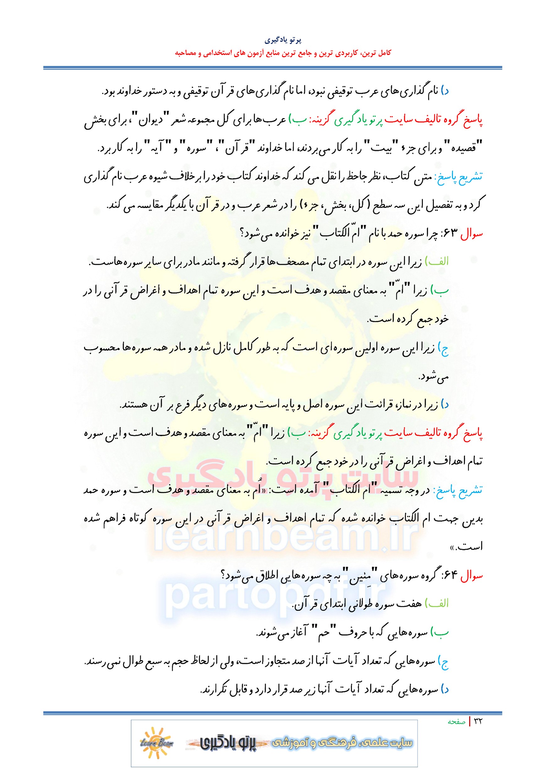 سوالات تستی کتاب آموزش علوم قرآنی آیت الله معرفت انتشارات موسسه فرهنگی تمهید