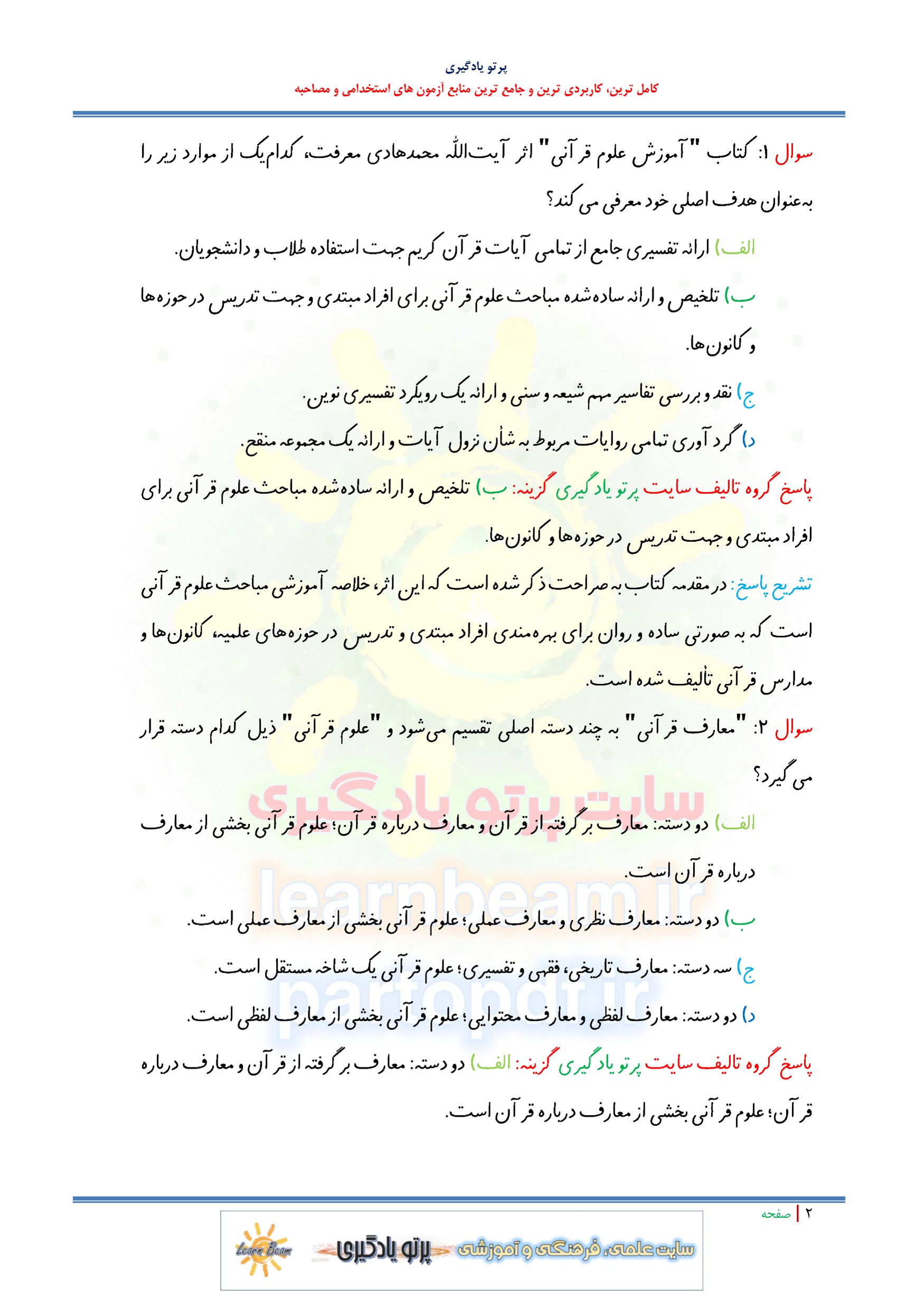 مجموعه سوالات و تست کتاب آموزش علوم قرآنی آیت الله معرفت با پاسخ تشریحی