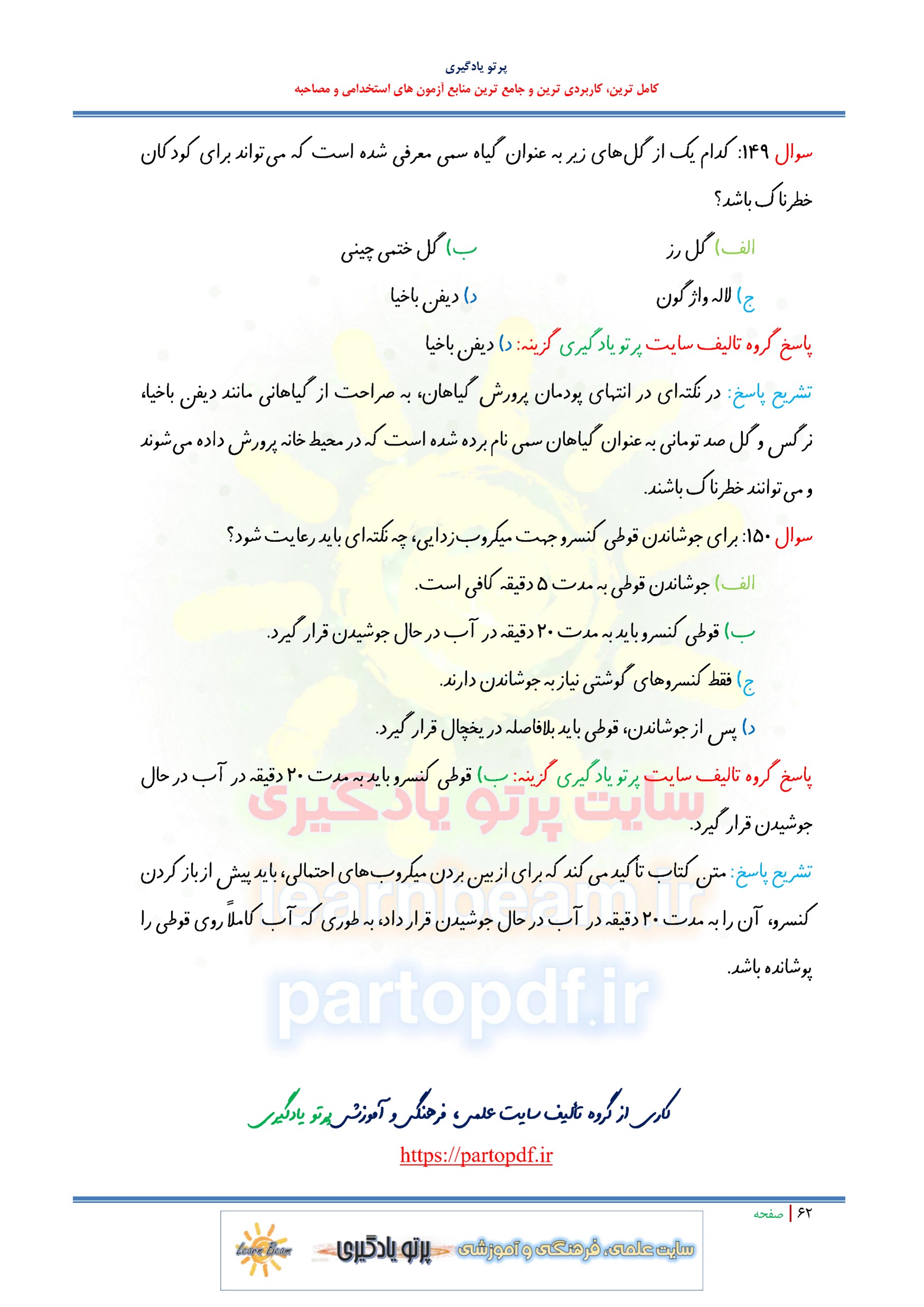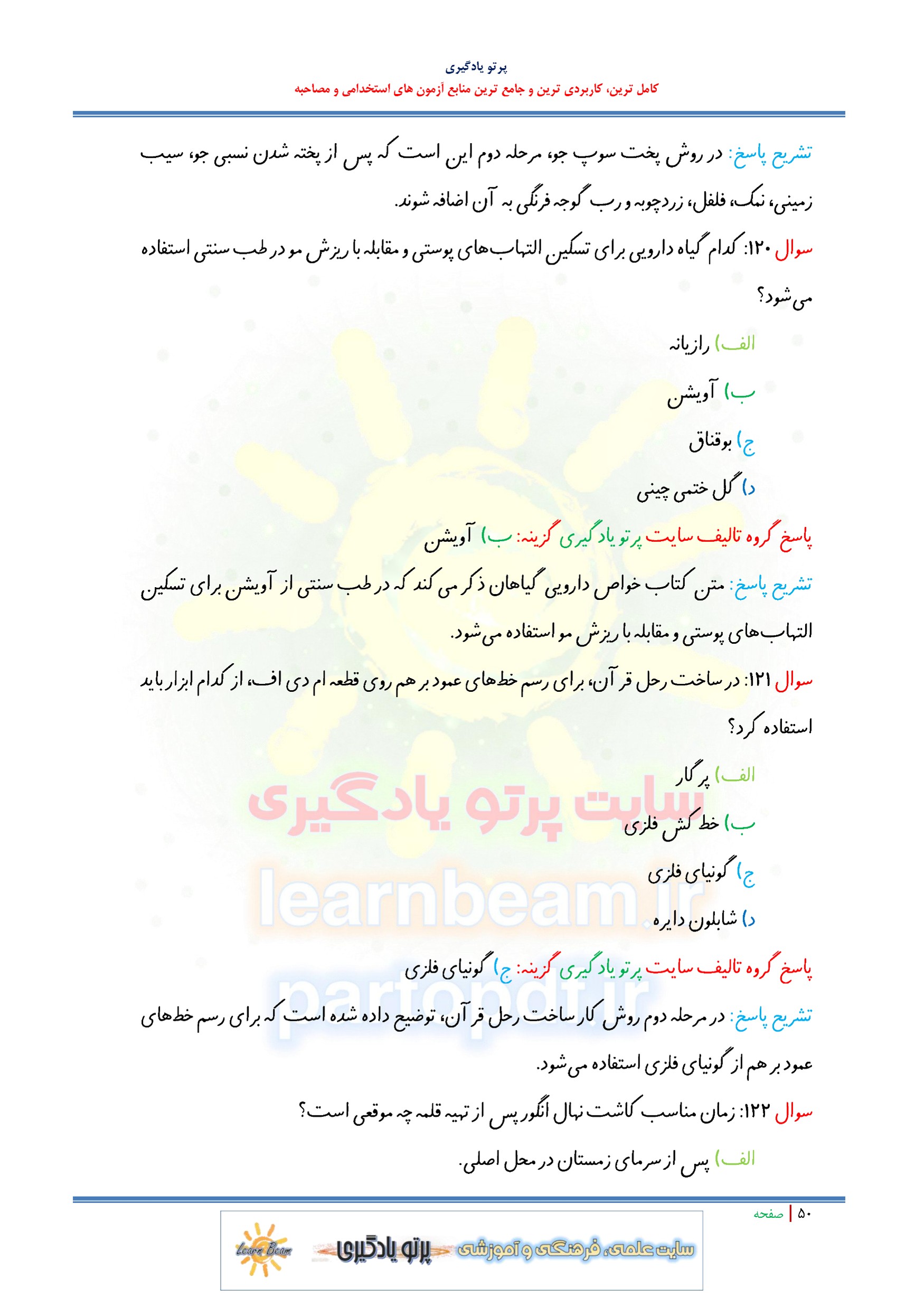 سوالات تستی کتاب کار و فناوری پایه هفتم