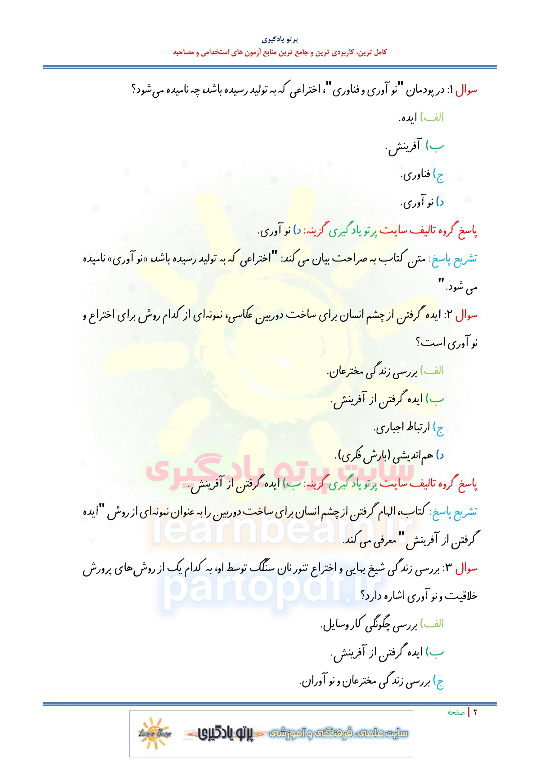 مجموعه سوالات و تست کتاب کار و فناوری پایه هفتم با پاسخ تشریحی