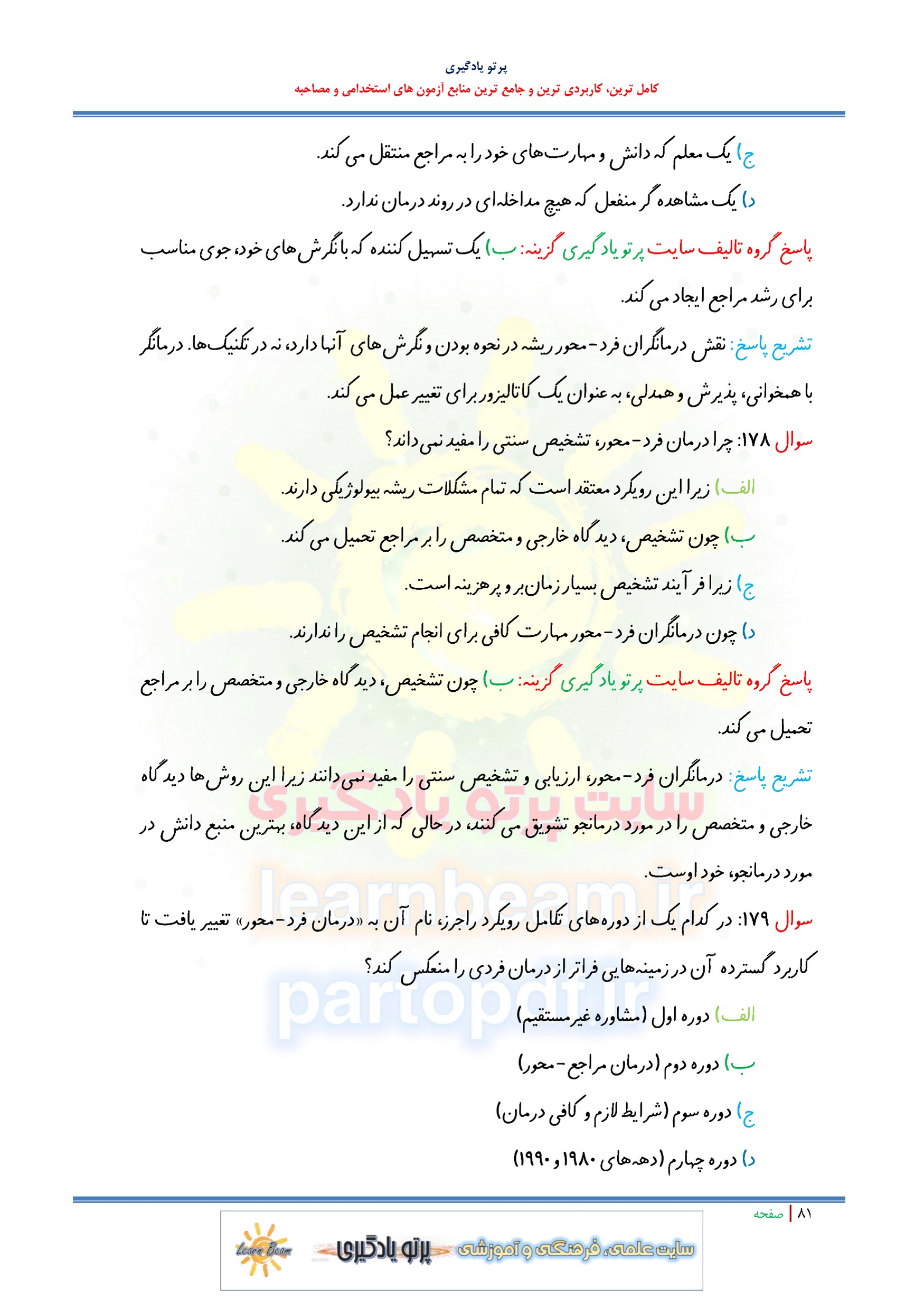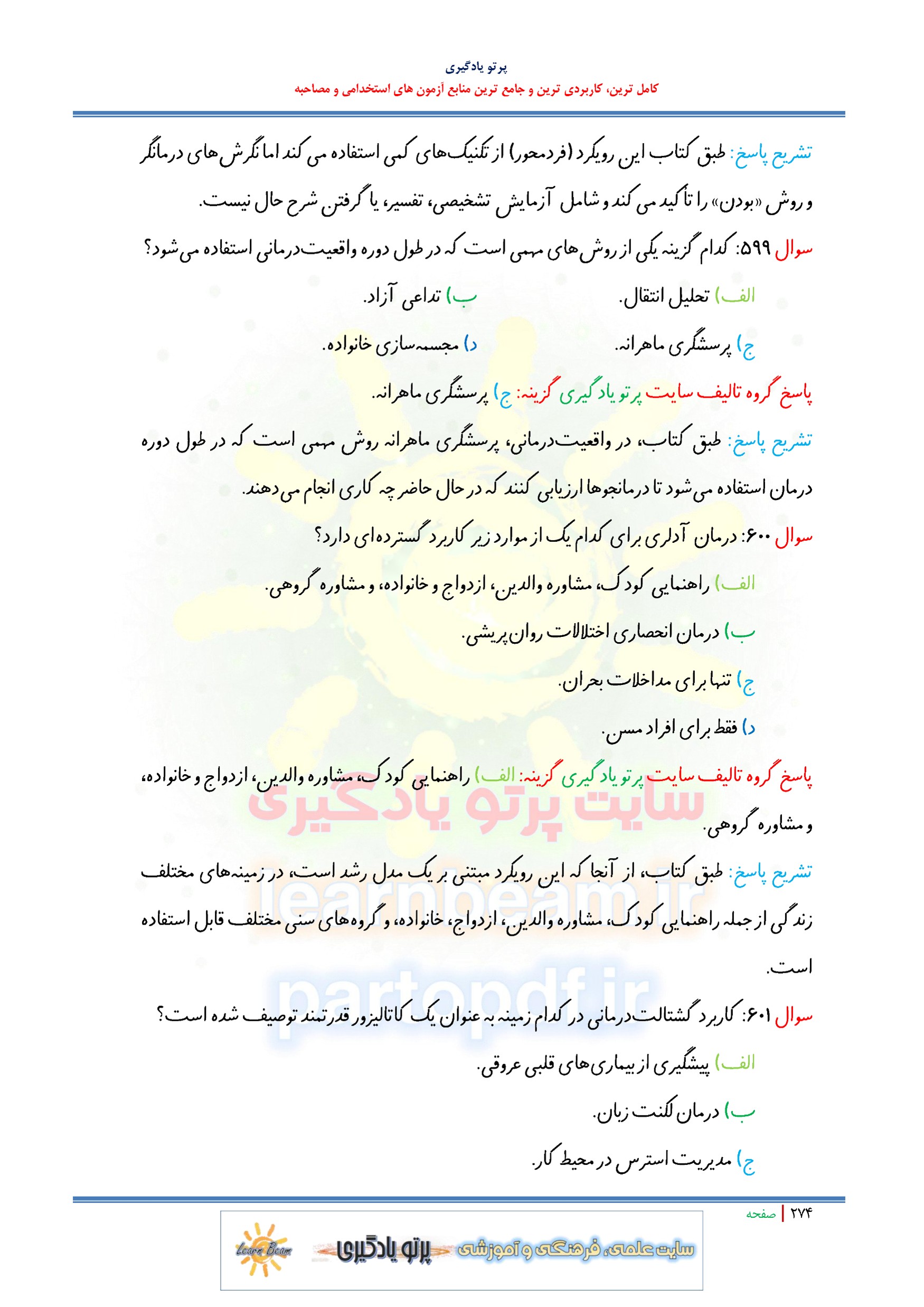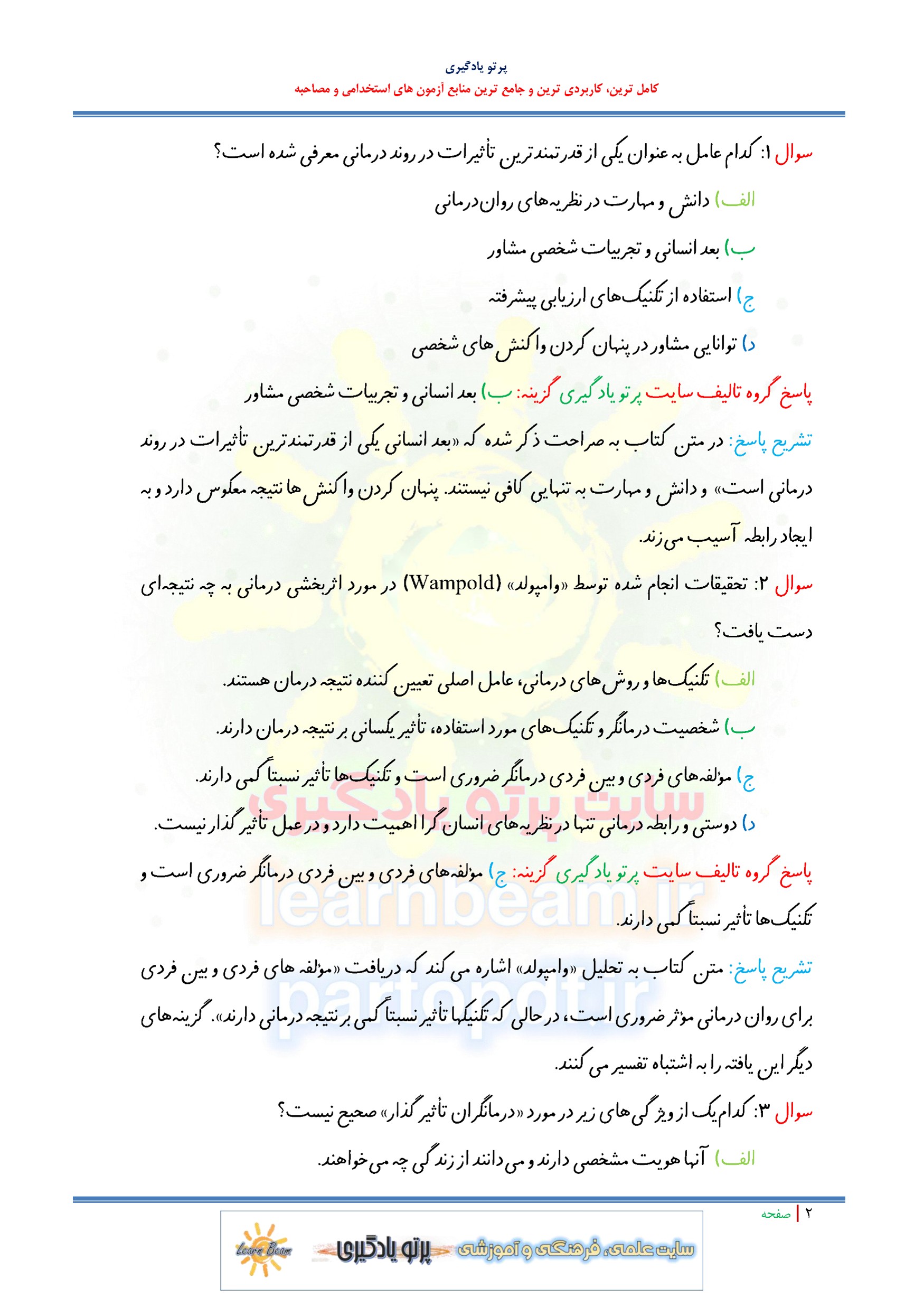 مجموعه سوالات و تست کتاب نظریه های مشاوره و روان درمانی با پاسخ تشریحی