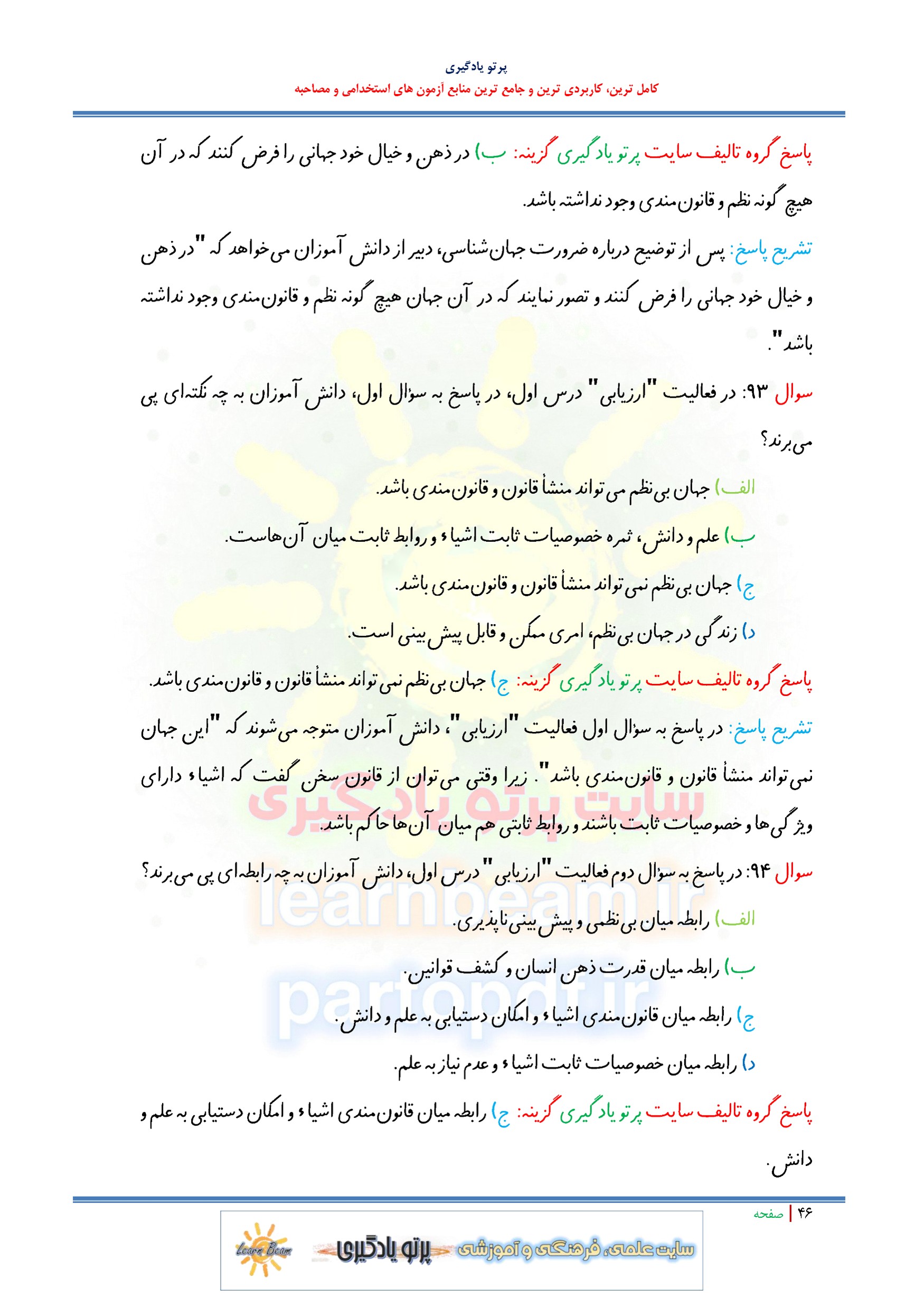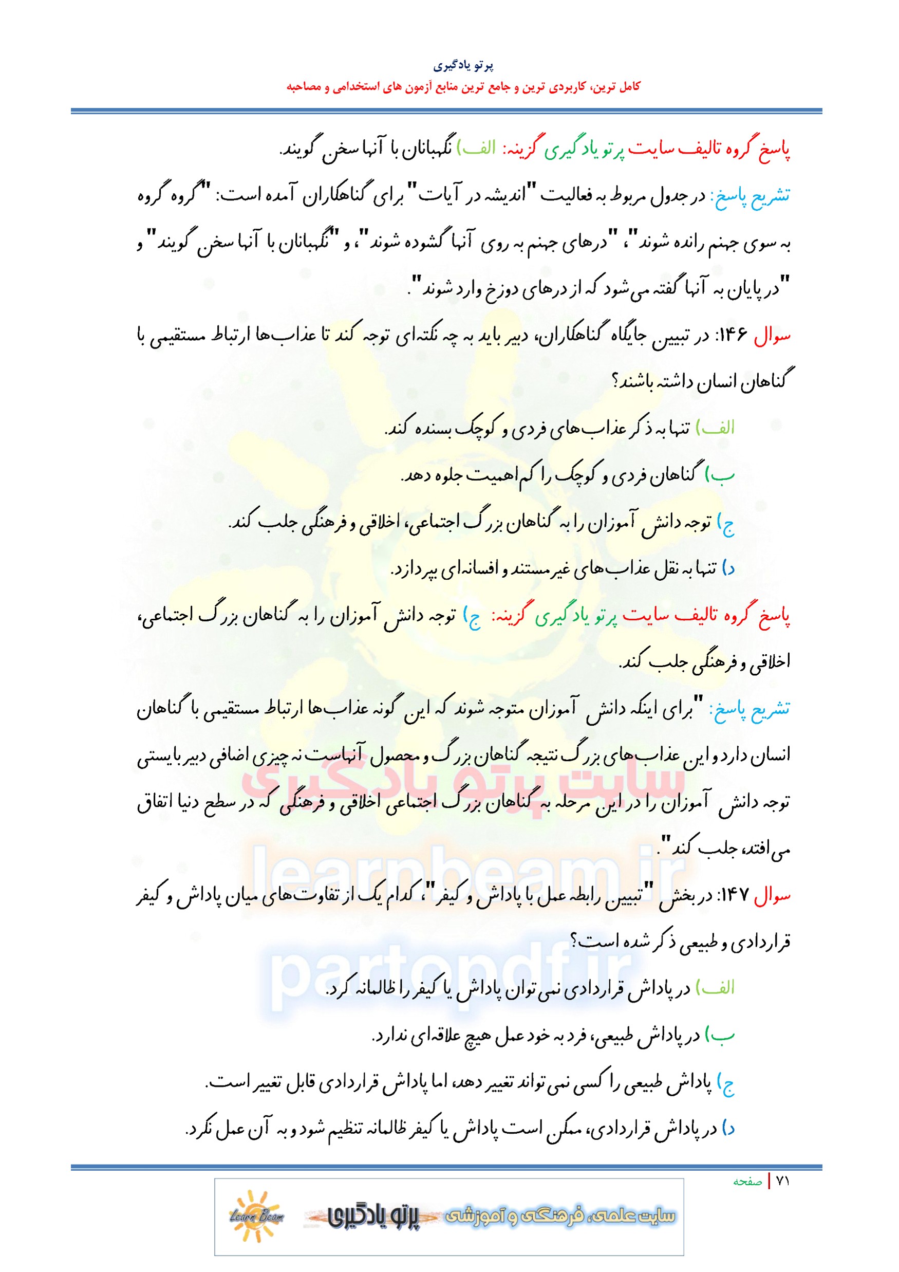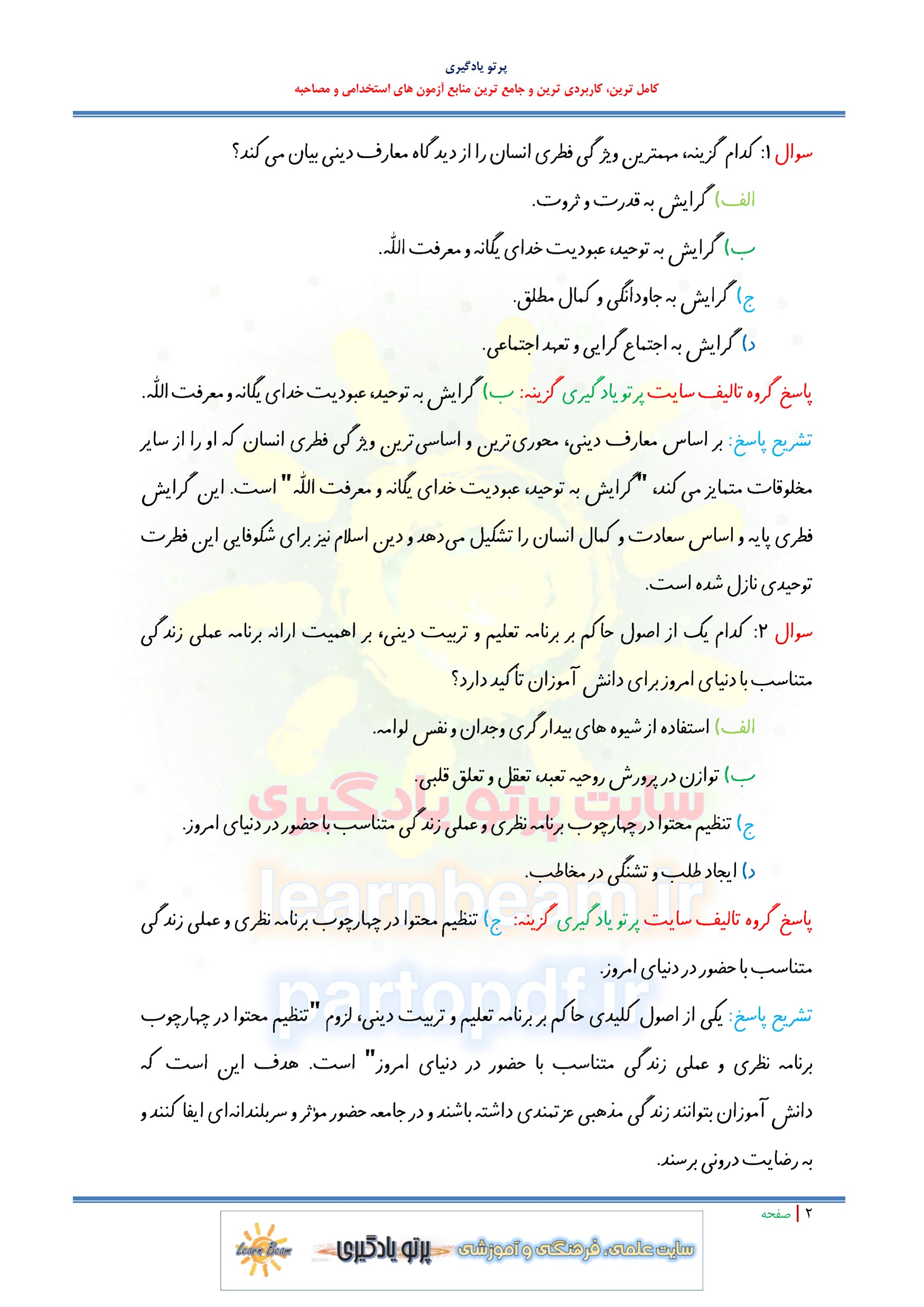 سوالات تستی کتاب راهنمای معلم دین و زندگی 2