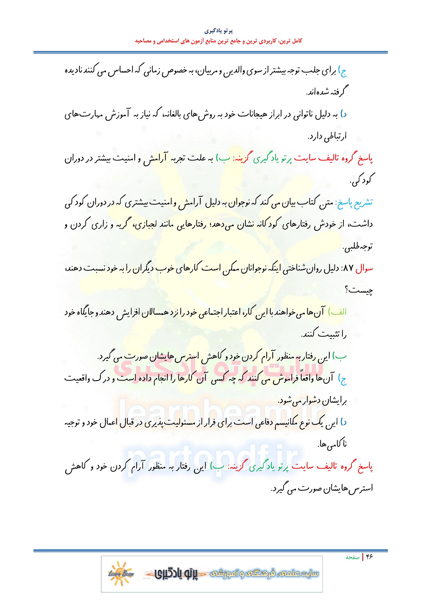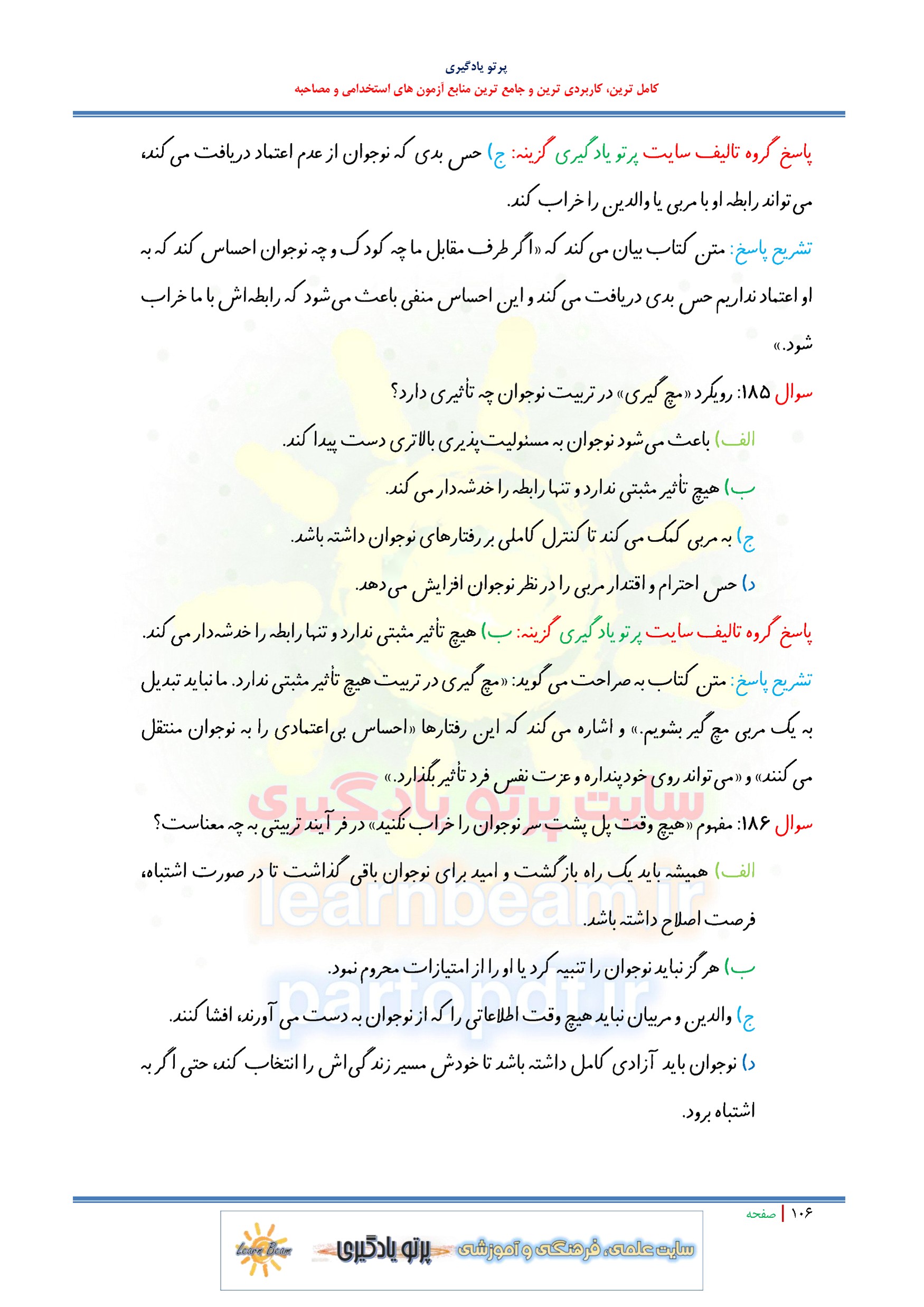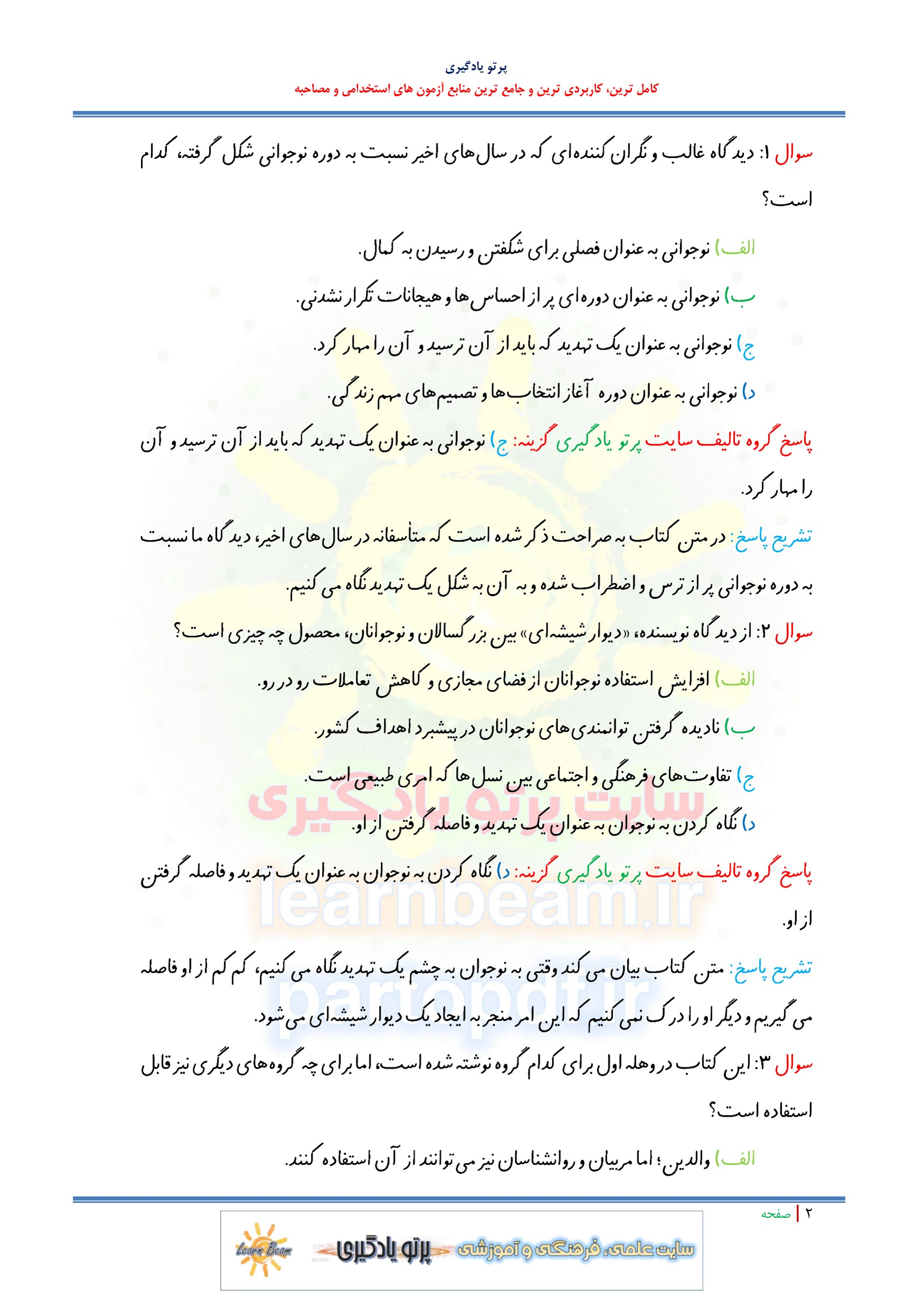 سوالات تستی کتاب رمزگشایی از دوران نوجوانی میر سبحان سادات