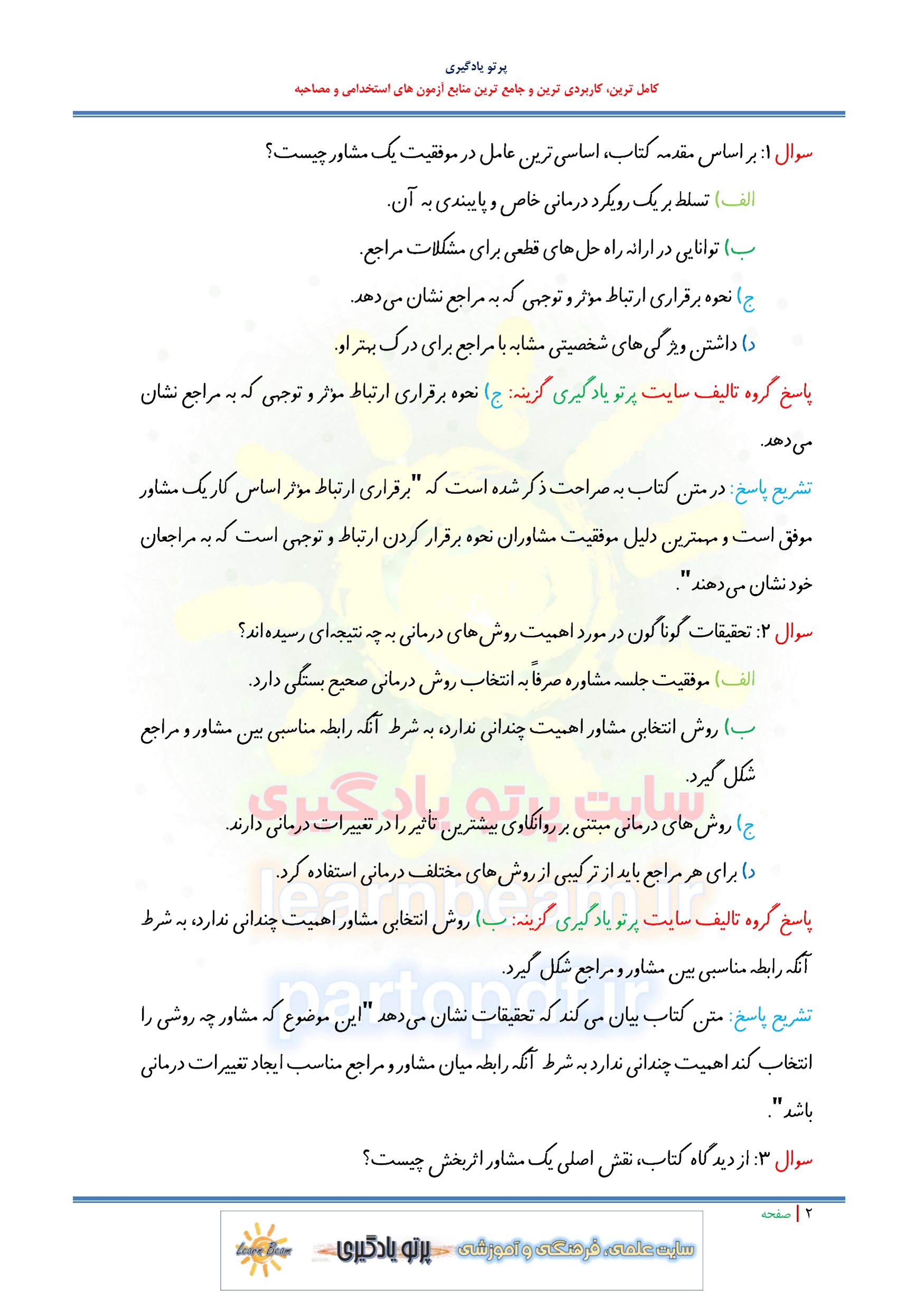 سوالات تستی کتاب مهارت های پایه و پیشرفته در مشاوره و روان درمانی کارورزی و تمرین عملی