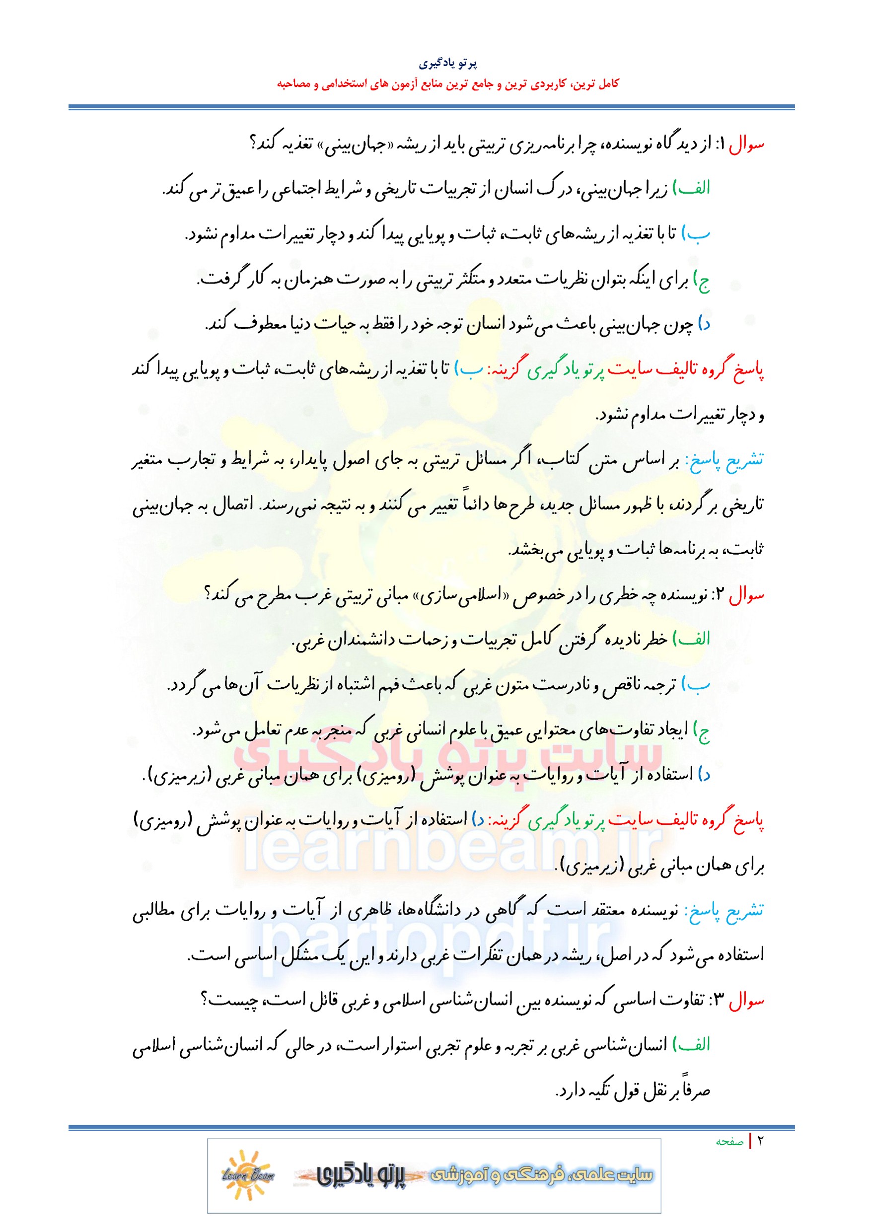 سوالات و تست جلد دوم کتاب راه رشد آیت الله حائری شیرازی