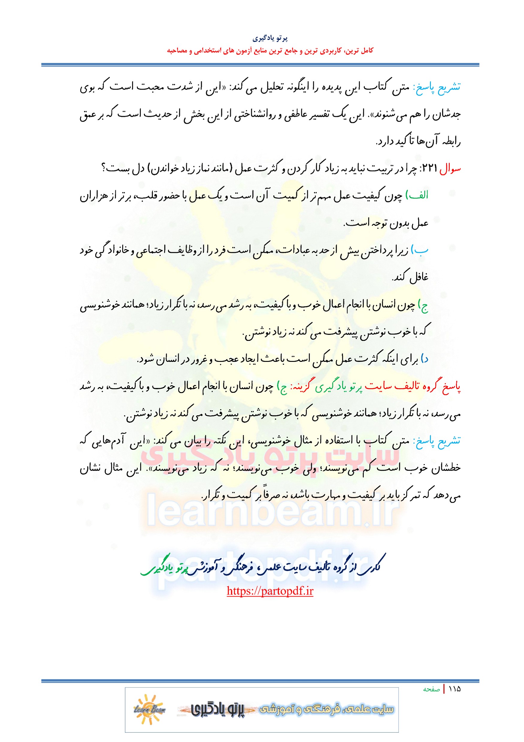 سوالات و تست جلد اول کتاب راه رشد آیت الله حائری شیرازی شامل 221 تست در 115 صفحه با پاسخ تشریحی در قالب فایل pdf. بهترین منبع برای آزمون های استخدامی می باشد. جزوه سوالات تستی کتاب راه رشد آیت الله حائری شیرازی جلد اول مطالب خوانده شده داوطلبین آزمون استخدامی را نظم بخشیده و منسجم می سازد. این مجموعه مرور سریع داوطلب را سبب می شود و آگاهی های وی را نظم بخشیده و یک آمادگی و شبیه سازی را برای جلسه آزمون به همراه دارد. مطالعه این منبع برای همه داوطلبین شرکت کننده در آزمون استخدامی وزارت آموزش و پرورش پیشنهاد می شود.