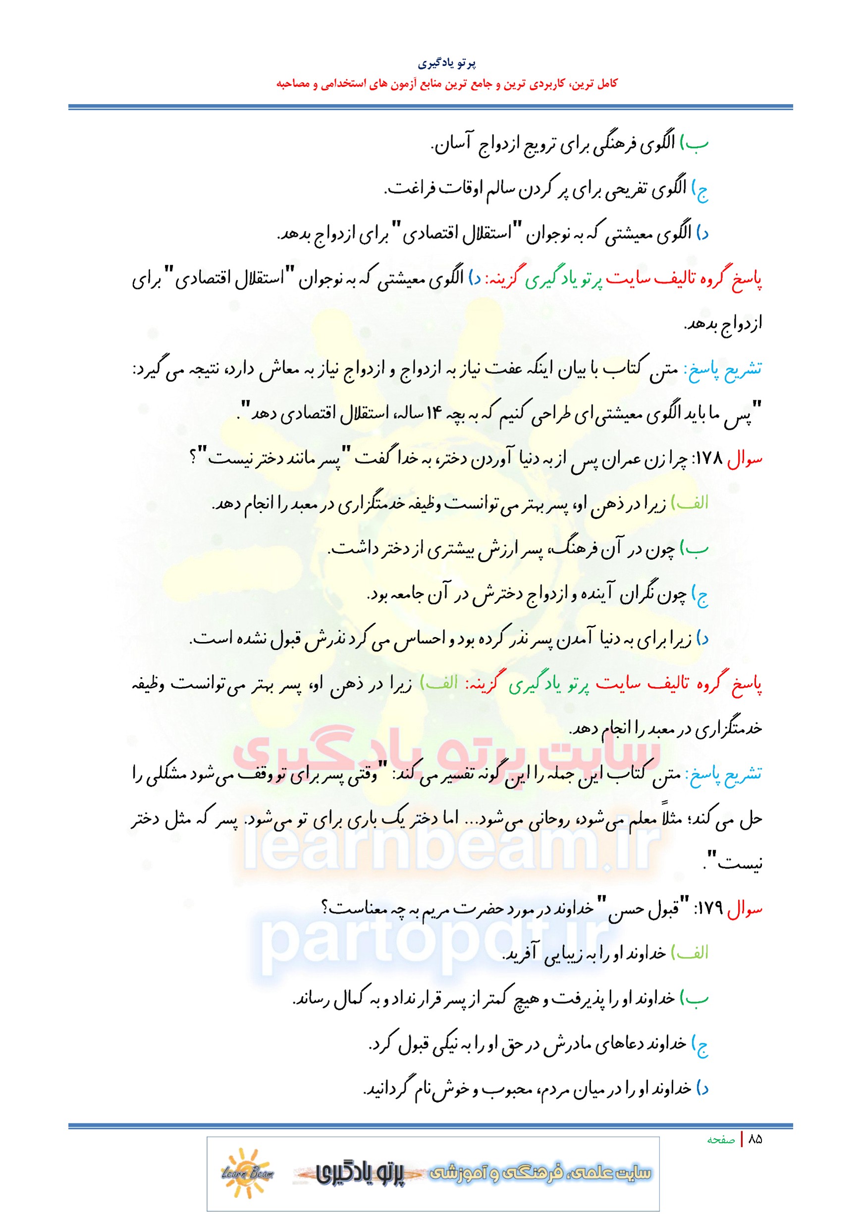 سوالات و تست جلد سوم کتاب راه رشد آیت الله حائری شیرازی شامل 200 سوال تستی در 96 صفحه و پاسخ تشریحی در قالب فایل pdf مطابق با سرفصل های دفترچه آزمون های استخدامی. مجموعه تست کتاب راه رشد آیت الله حائری شیرازی جلد سوم بهترین منبع برای آمادگی آزمون های استخدامی می باشد. مجموعه سوالات و تست جلد سوم کتاب راه رشد آیت الله حائری شیرازی مطالب خوانده شده داوطلبین آزمون استخدامی را نظم بخشیده و منسجم می سازد. مجموعه سوالات تستی کتاب راه رشد آیت الله حائری شیرازی جلد سوم ویژه آزمون های استخدامی و استخدامی وزارت آموزش و پرورش مرور سریع داوطلب را سبب می شود و آگاهی های وی را نظم بخشیده و یک آمادگی و شبیه سازی را برای جلسه آزمون به همراه دارد. مطالعه این منبع داوطلبین آزمون های استخدامی پیشنهاد می شود.