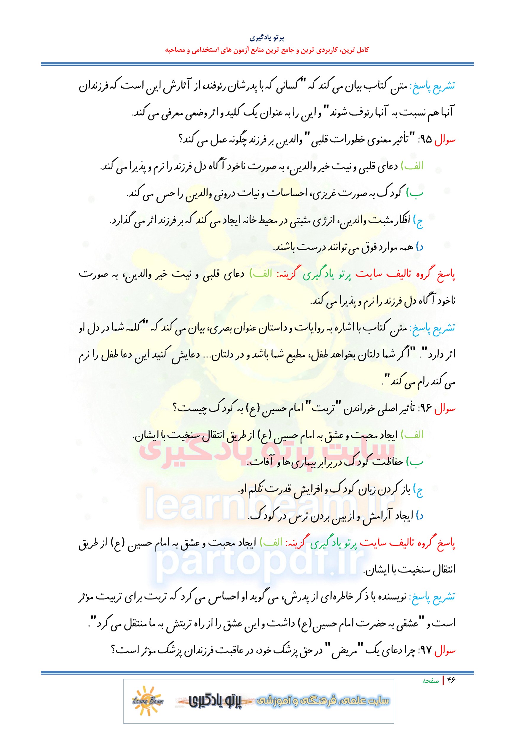 سوالات تستی جلد سوم کتاب راه رشد آیت الله حائری شیرازی