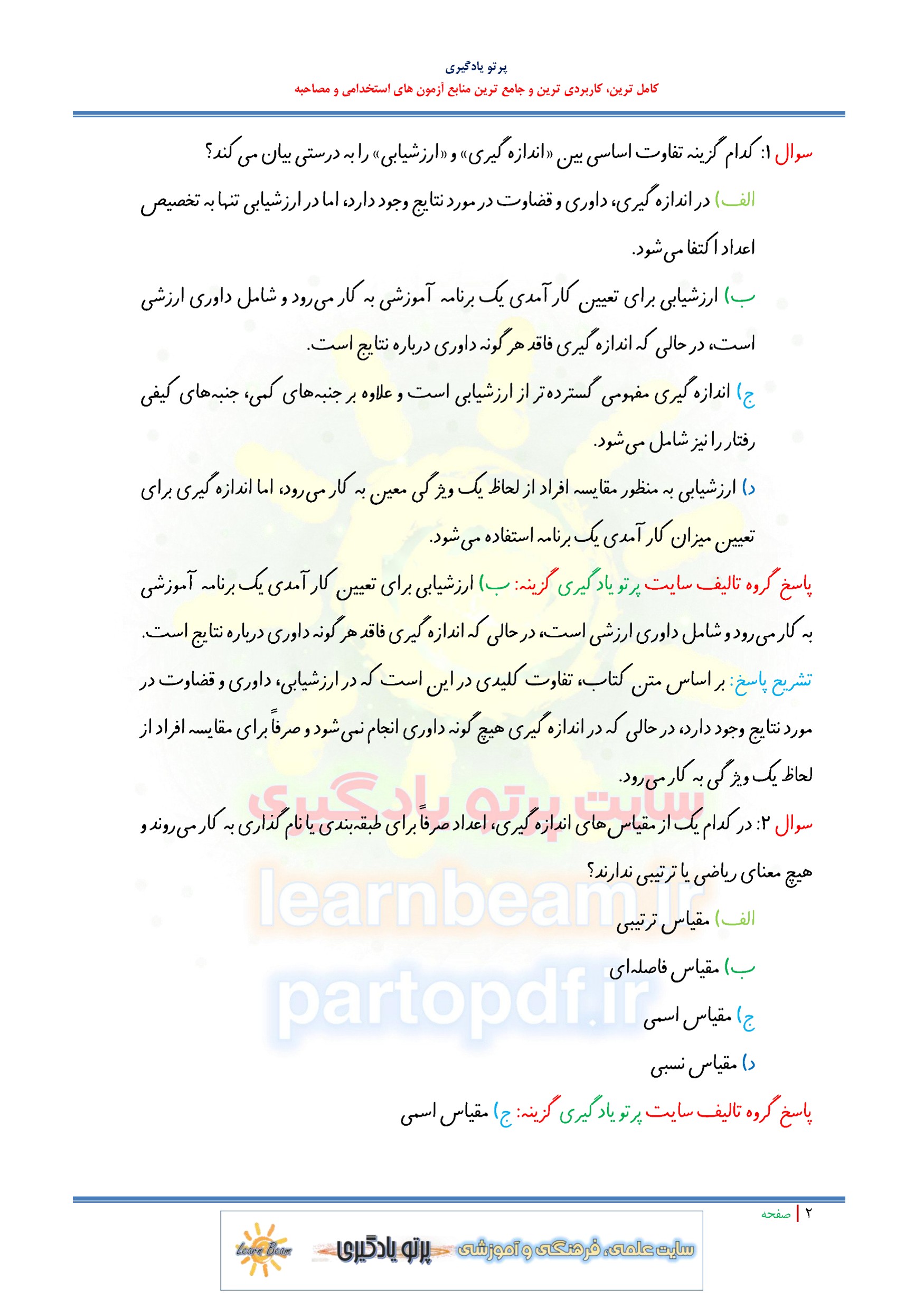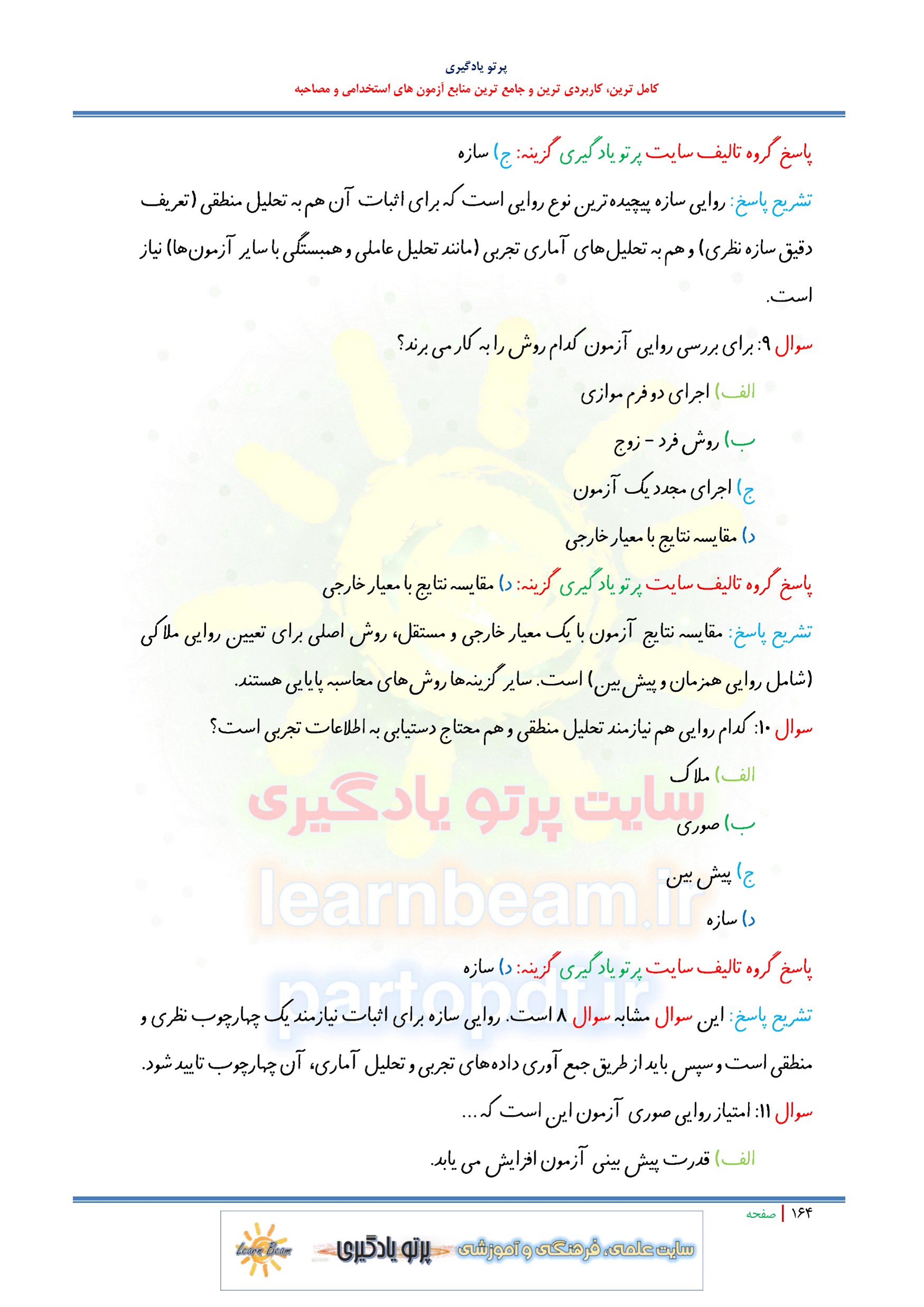 مجموعه سوالات و تست کتاب آشنایی با آزمون سازی و آزمون های روانی با پاسخ تشریحی