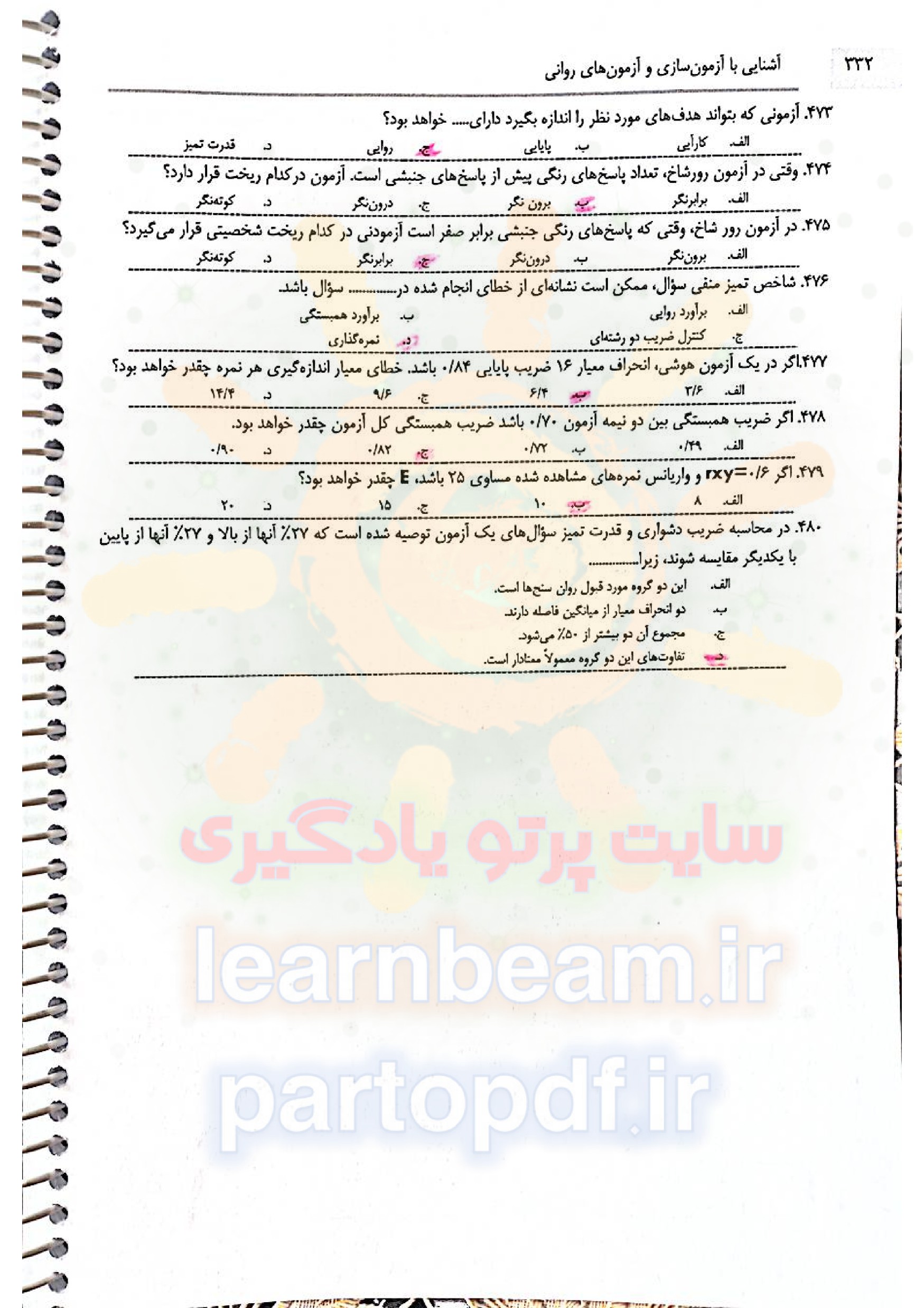 سوالات تستی جلد چهارم کتاب آشنایی با آزمون سازی و آزمون های روانی دکتر ابوالفضل کرمی