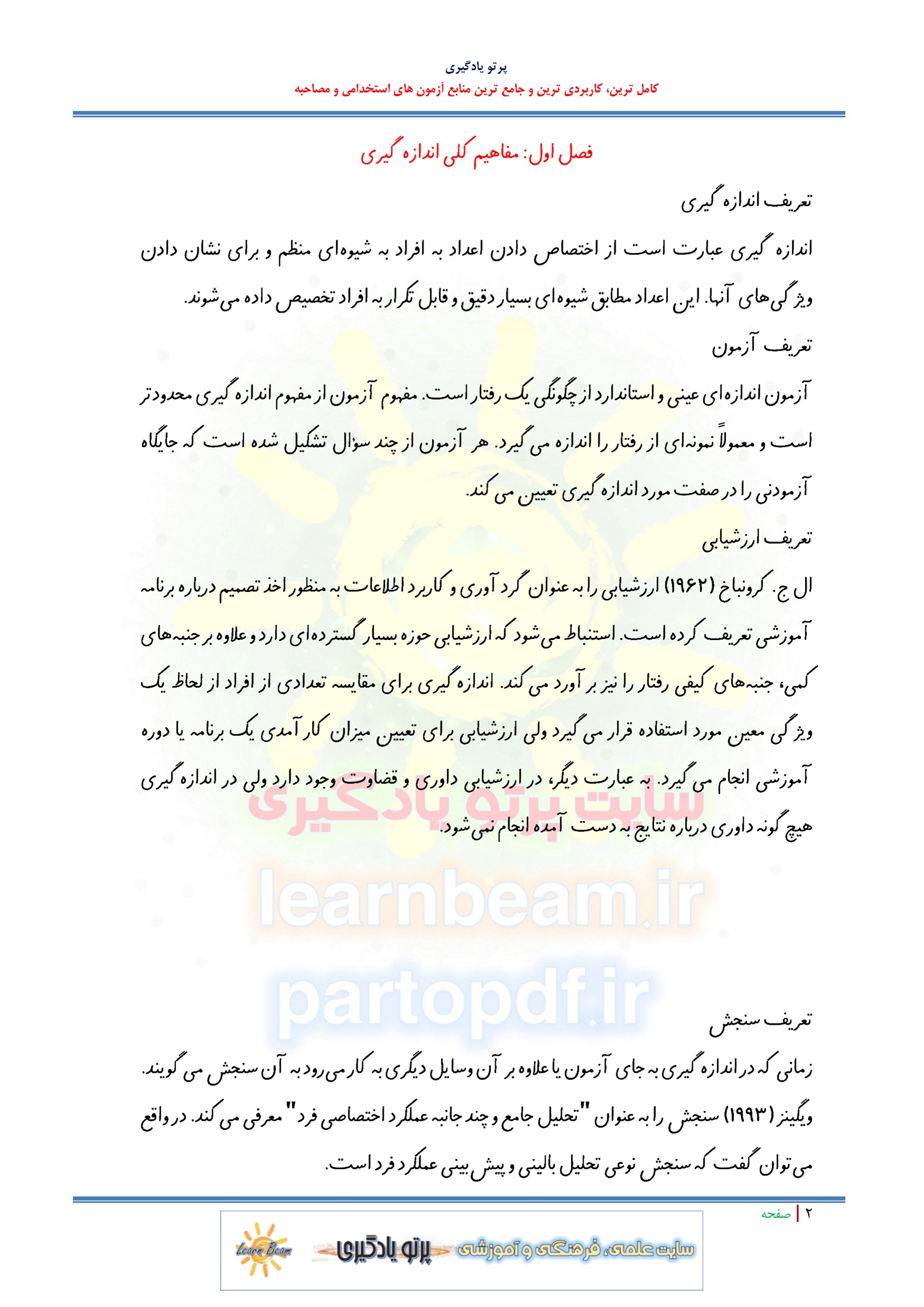 جزوه خلاصه کتاب آشنایی با آزمون سازی و آزمون های روانی دکتر ابوالفضل کرمی