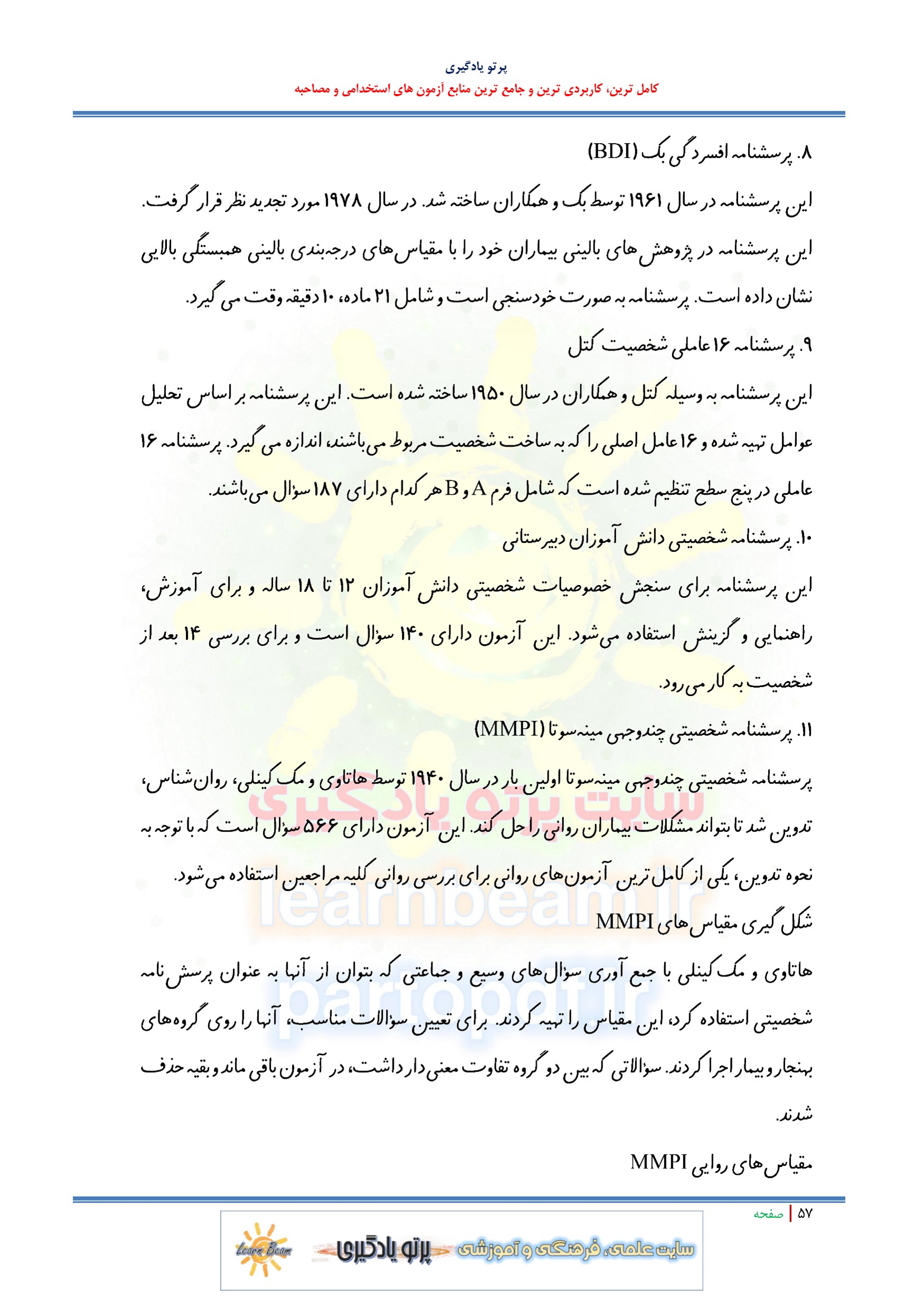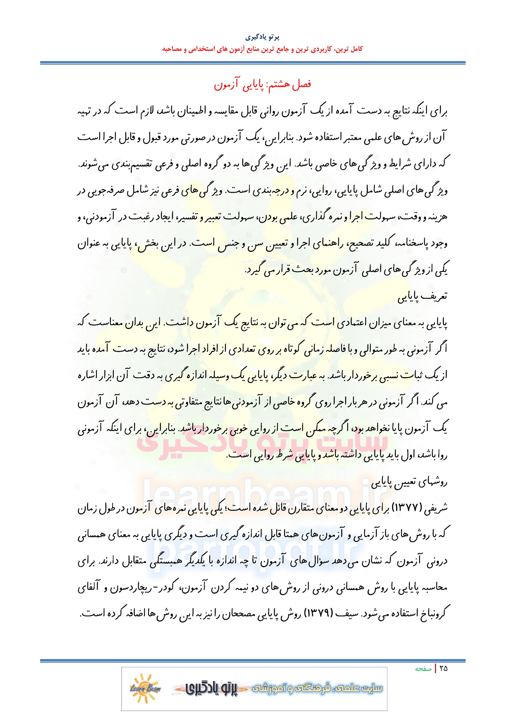 سوالات و تست کتاب آشنایی با آزمون سازی و آزمون های روانی دکتر ابوالفضل کرمی