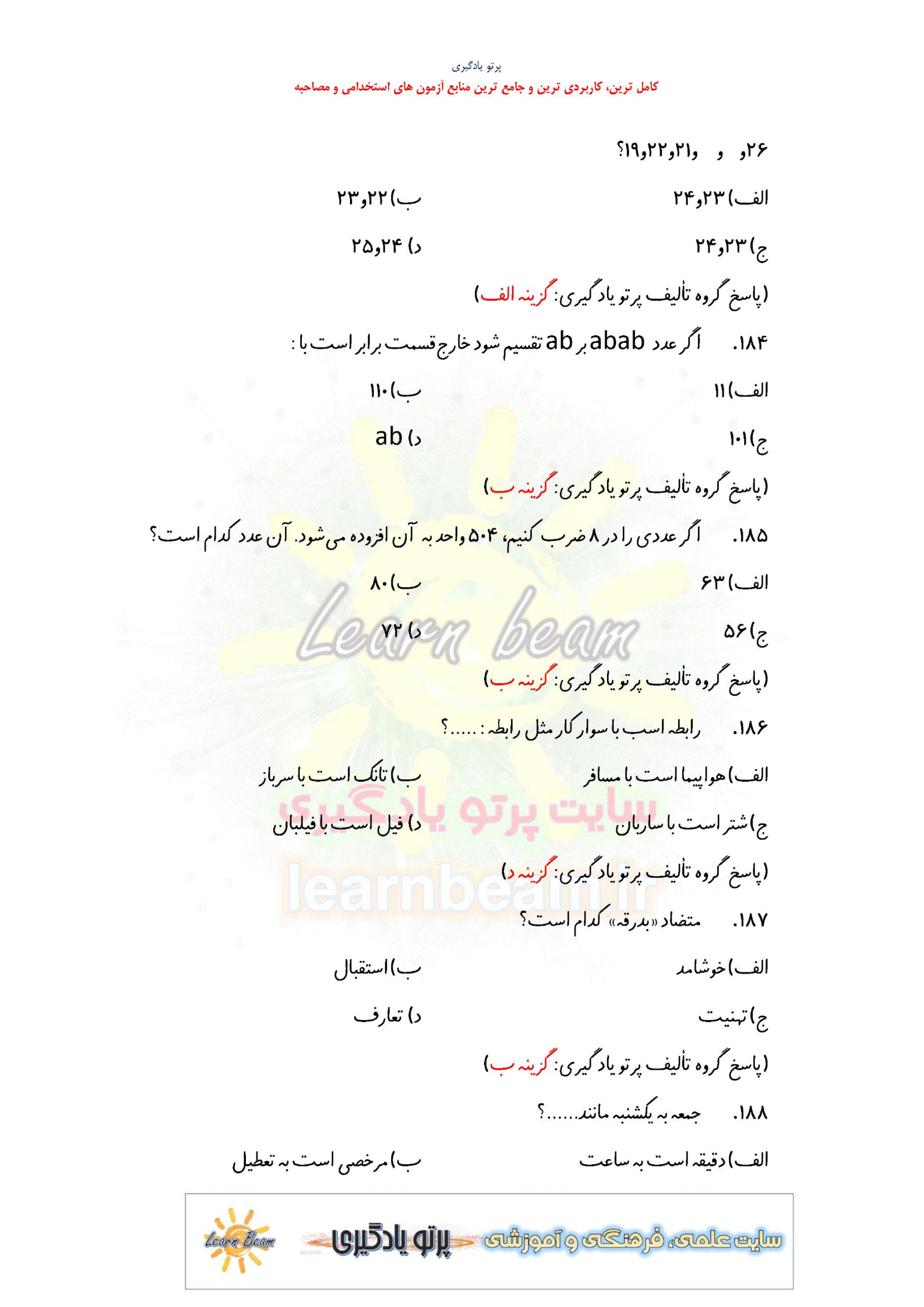 از دیگر منابع آزمون استخدامی در سایت پرتو یادگیری دیدن فرمایید.