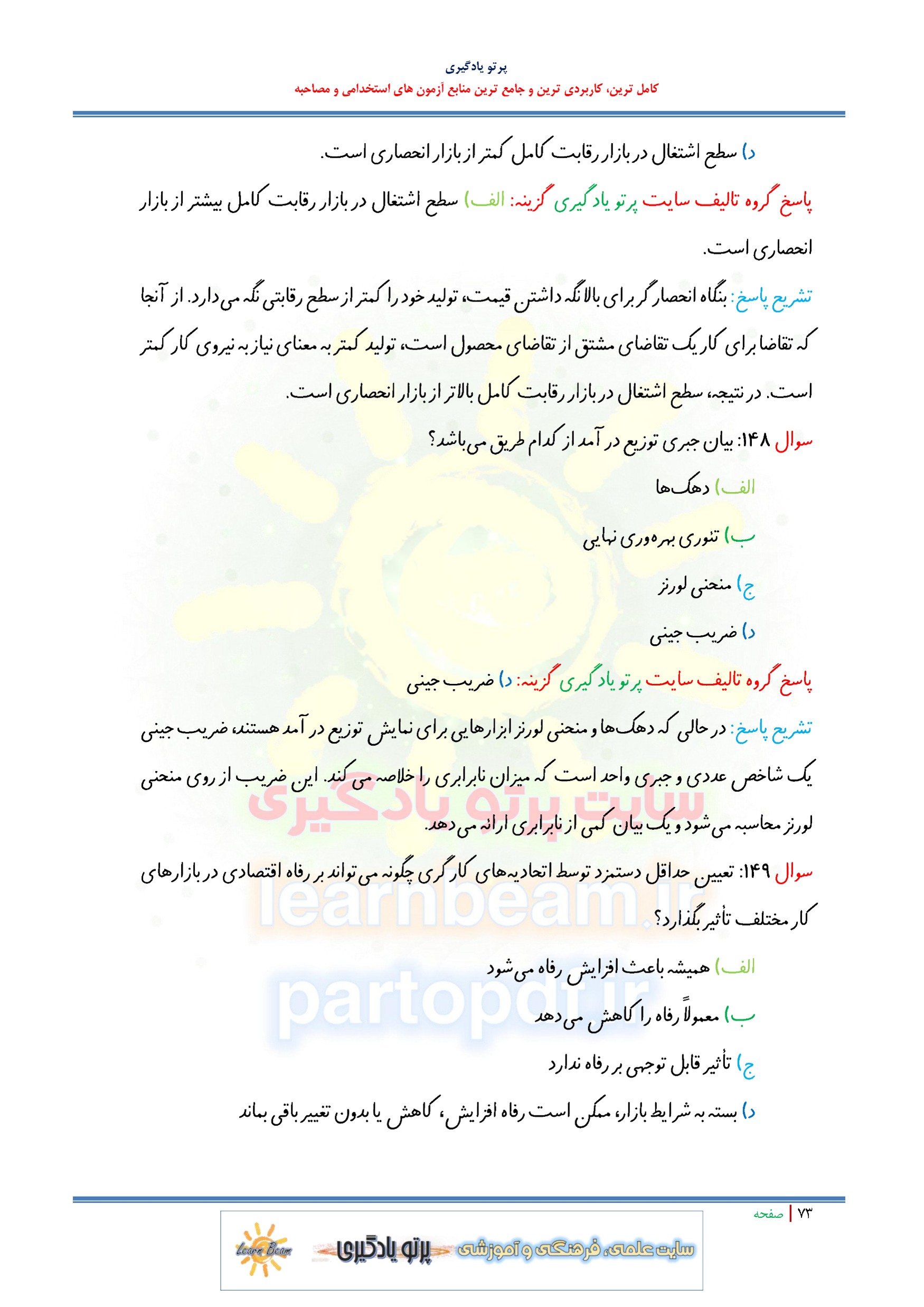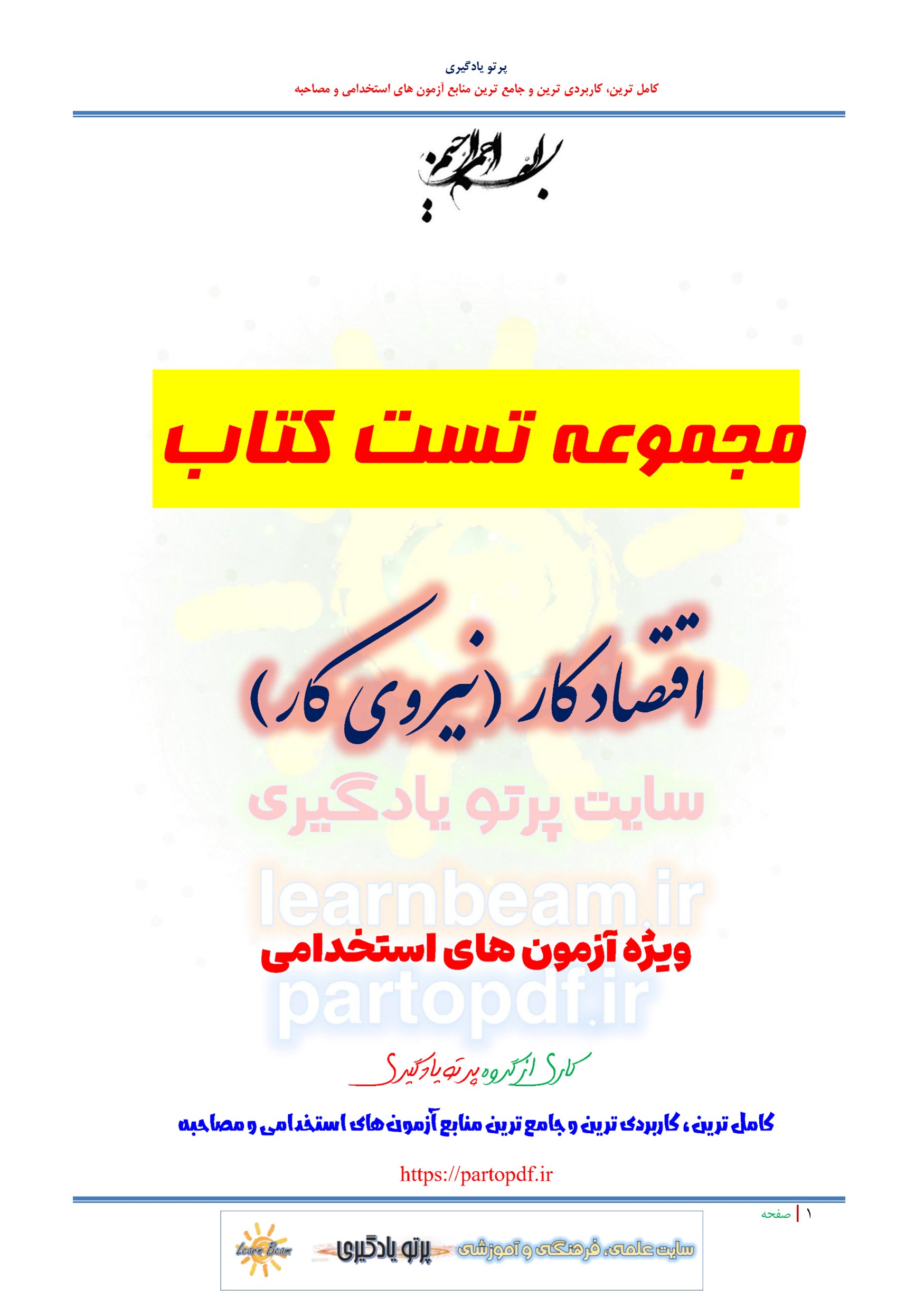 سوالات و تست کتاب اقتصاد کار / نیروی کار / سوالات کتاب اقتصاد کار / نیروی کار شامل 272 سوال تستی در 131 صفحه با پاسخ تشریحی در قالب فایل pdf. بهترین منبع برای آزمون های استخدامی می باشد. جزوه سوالات تستی اقتصاد کار / نیروی کار مطالب خوانده شده داوطلبین آزمون استخدامی را نظم بخشیده و منسجم می سازد. این مجموعه مرور سریع داوطلب را سبب می شود و آگاهی های وی را نظم بخشیده و یک آمادگی و شبیه سازی را برای جلسه آزمون به همراه دارد. مطالعه این منبع برای همه داوطلبین شرکت کننده در آزمون های استخدامی پیشنهاد می شود.