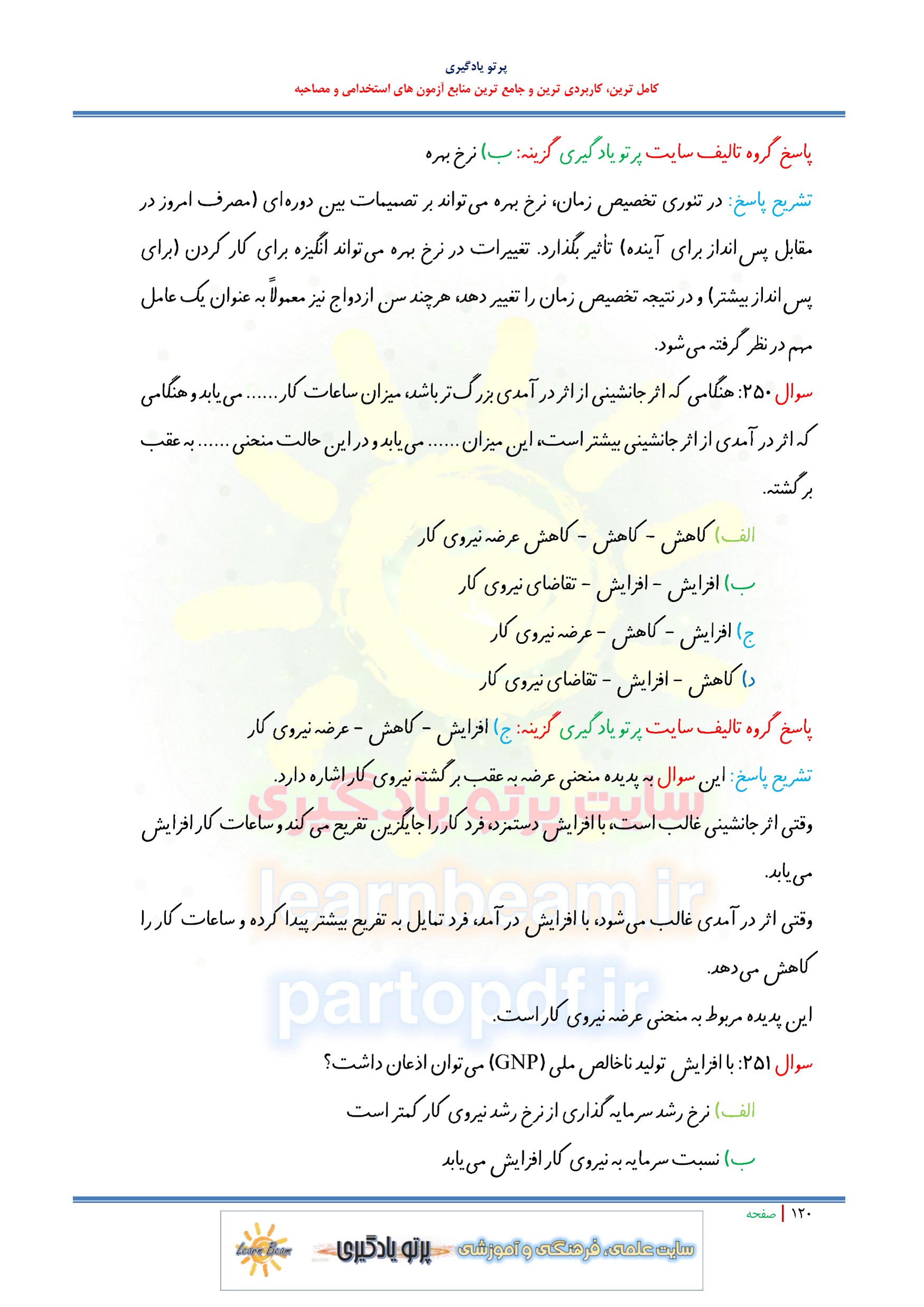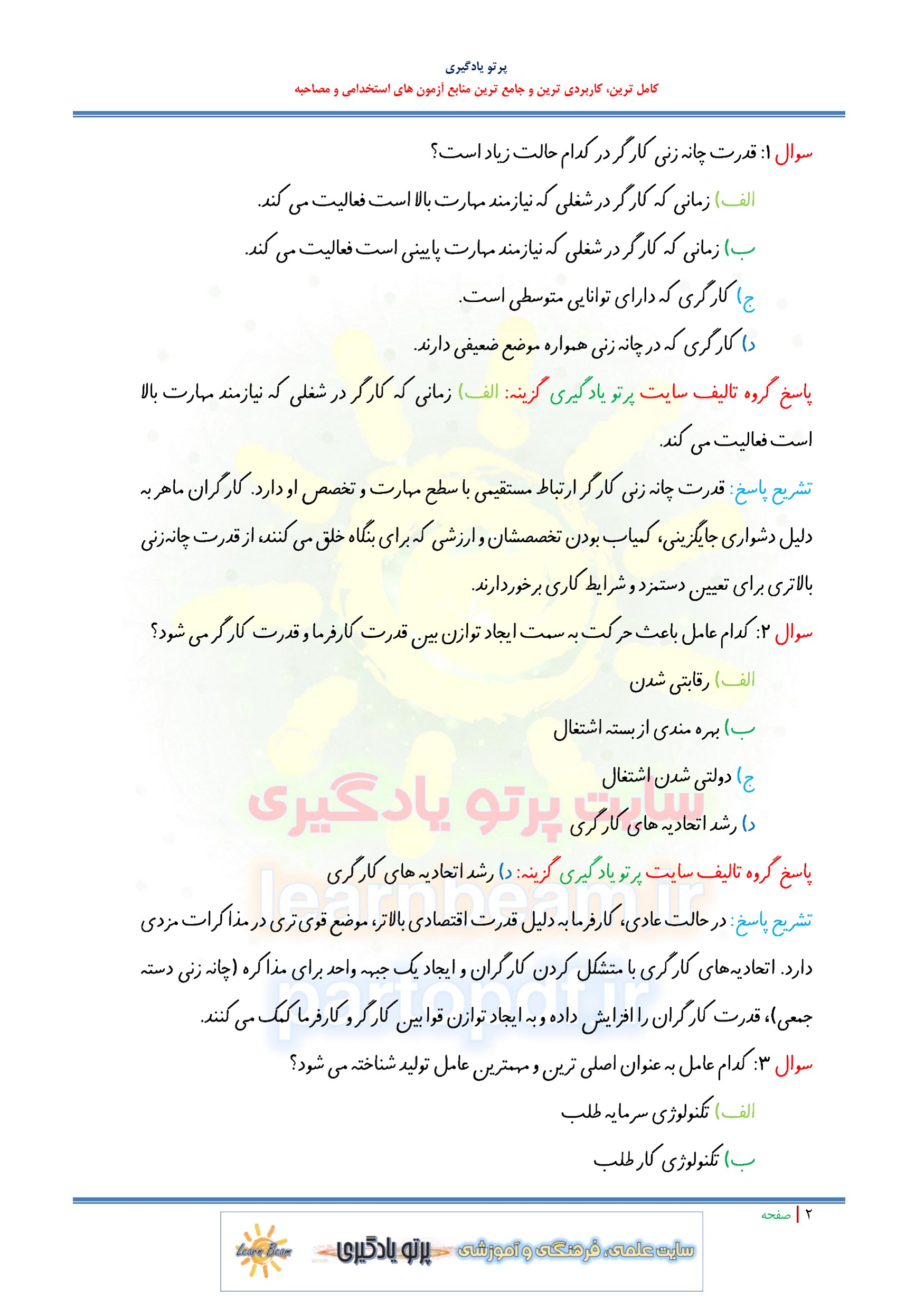 مجموعه سوالات و تست کتاب اقتصاد کار / نیروی کار با پاسخ تشریحی