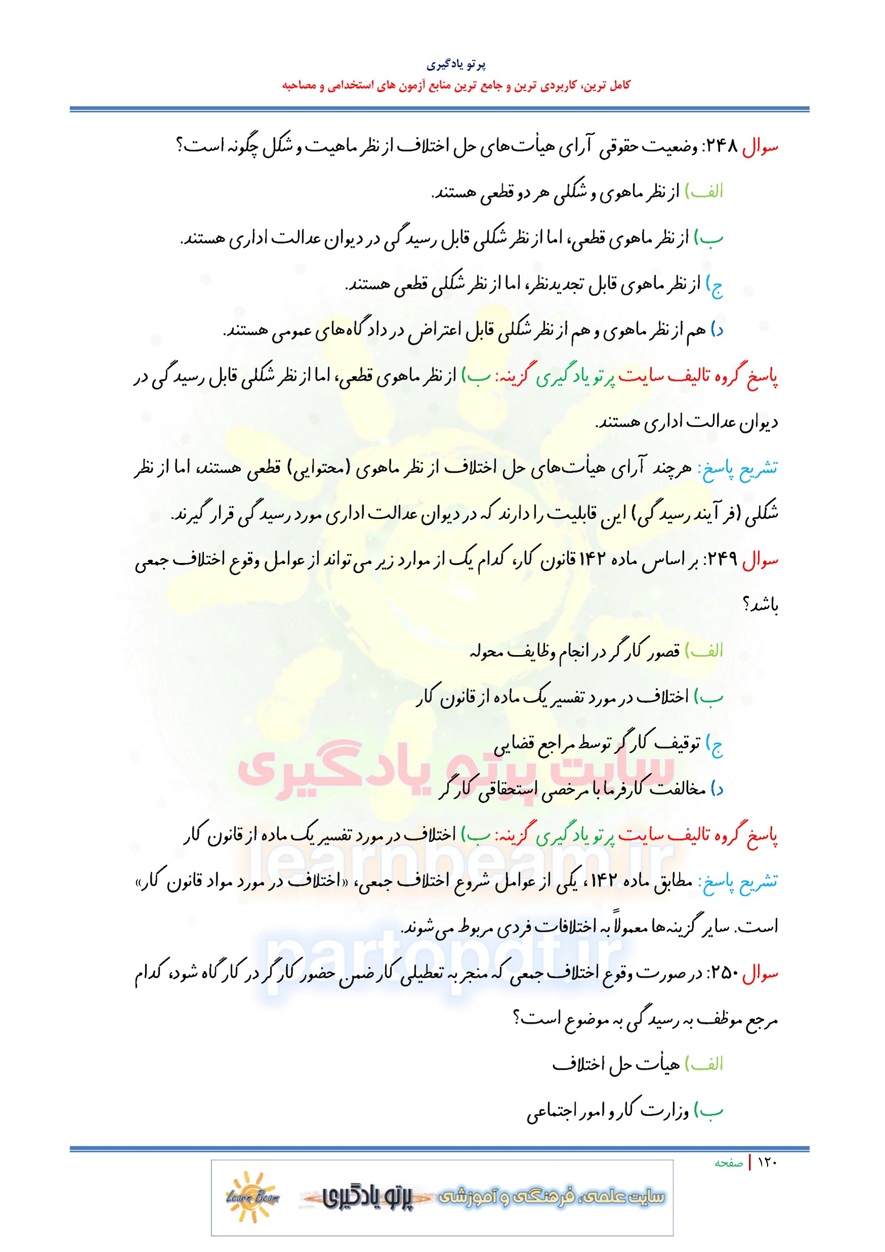 مجموعه سوالات و تست کتاب حقوق کار با پاسخ تشریحی