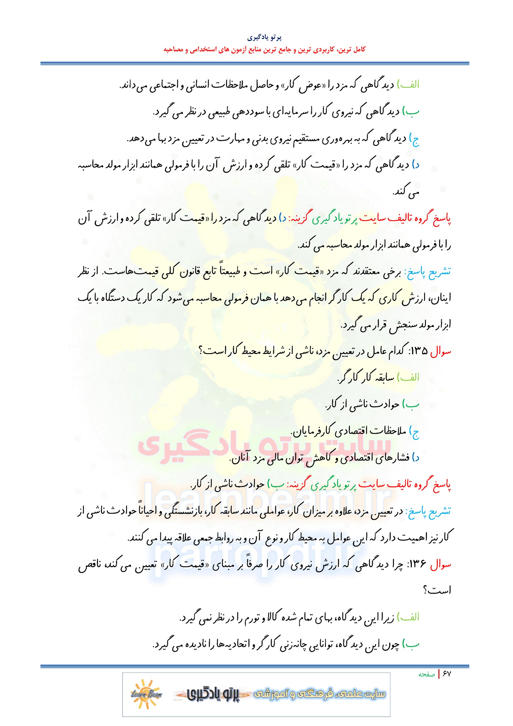 سوالات و تست کتاب حقوق کار سوالات تستی کتاب حقوق کار شامل 265 سوال تستی در 128 صفحه با پاسخ تشریحی در قالب فایل pdf. مطابق با سرفصل های دفترچه آزمون های استخدامی. مجموعه تستی کتاب حقوق کار بهترین منبع برای آمادگی آزمون های استخدامی می باشد. مجموعه سوالات و تست کتاب حقوق کار مطالب خوانده شده داوطلبین آزمون استخدامی را نظم بخشیده و منسجم می سازد. مجموعه سوالات تستی کتاب حقوق کار ویژه آزمون های استخدامی مرور سریع داوطلب را سبب می شود و آگاهی های وی را نظم بخشیده و یک آمادگی و شبیه سازی را برای جلسه آزمون به همراه دارد. مطالعه پک مجموعه سوالات و تست کتاب حقوق کار این منبع داوطلبین آزمون های استخدامی پیشنهاد می شود.