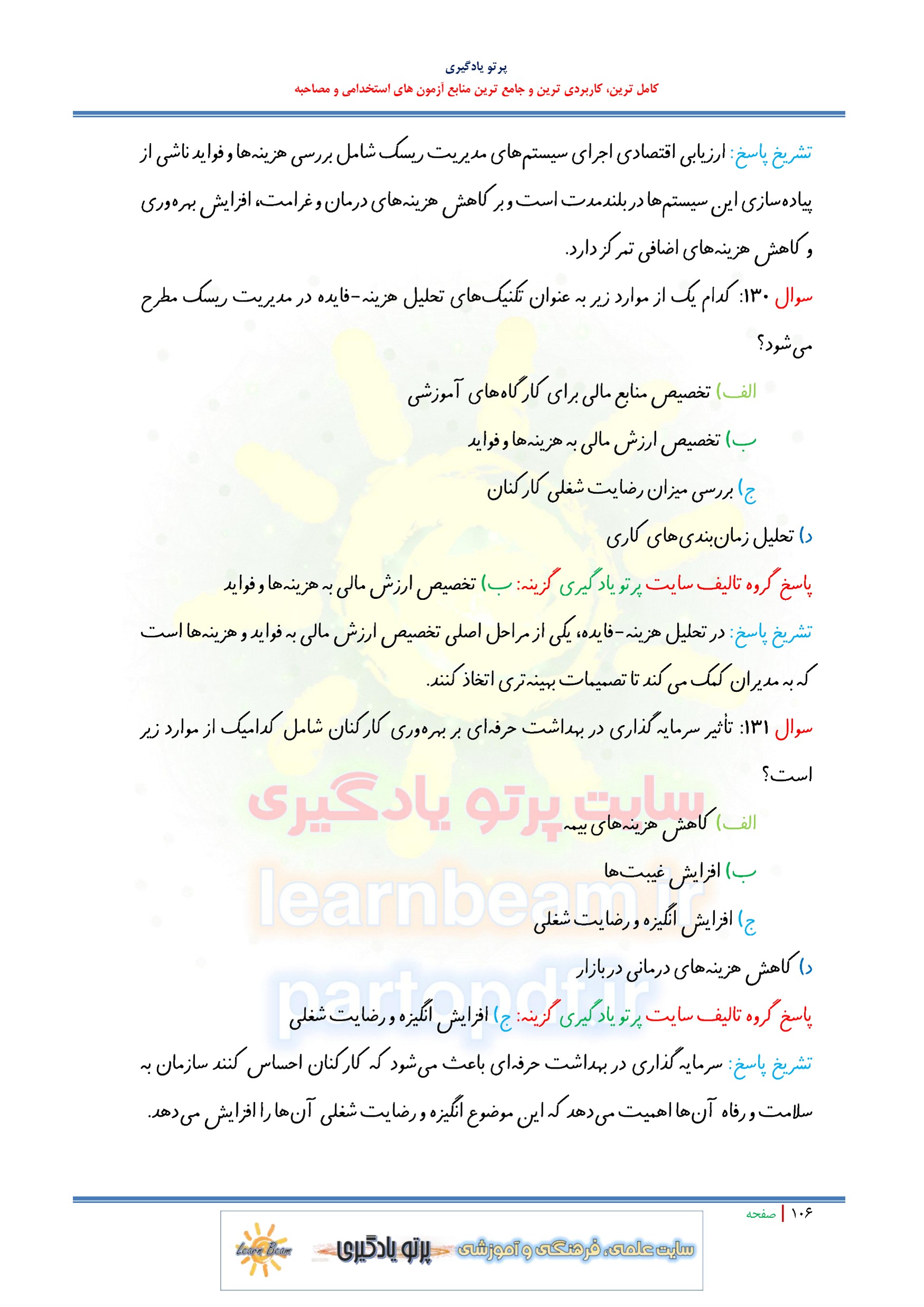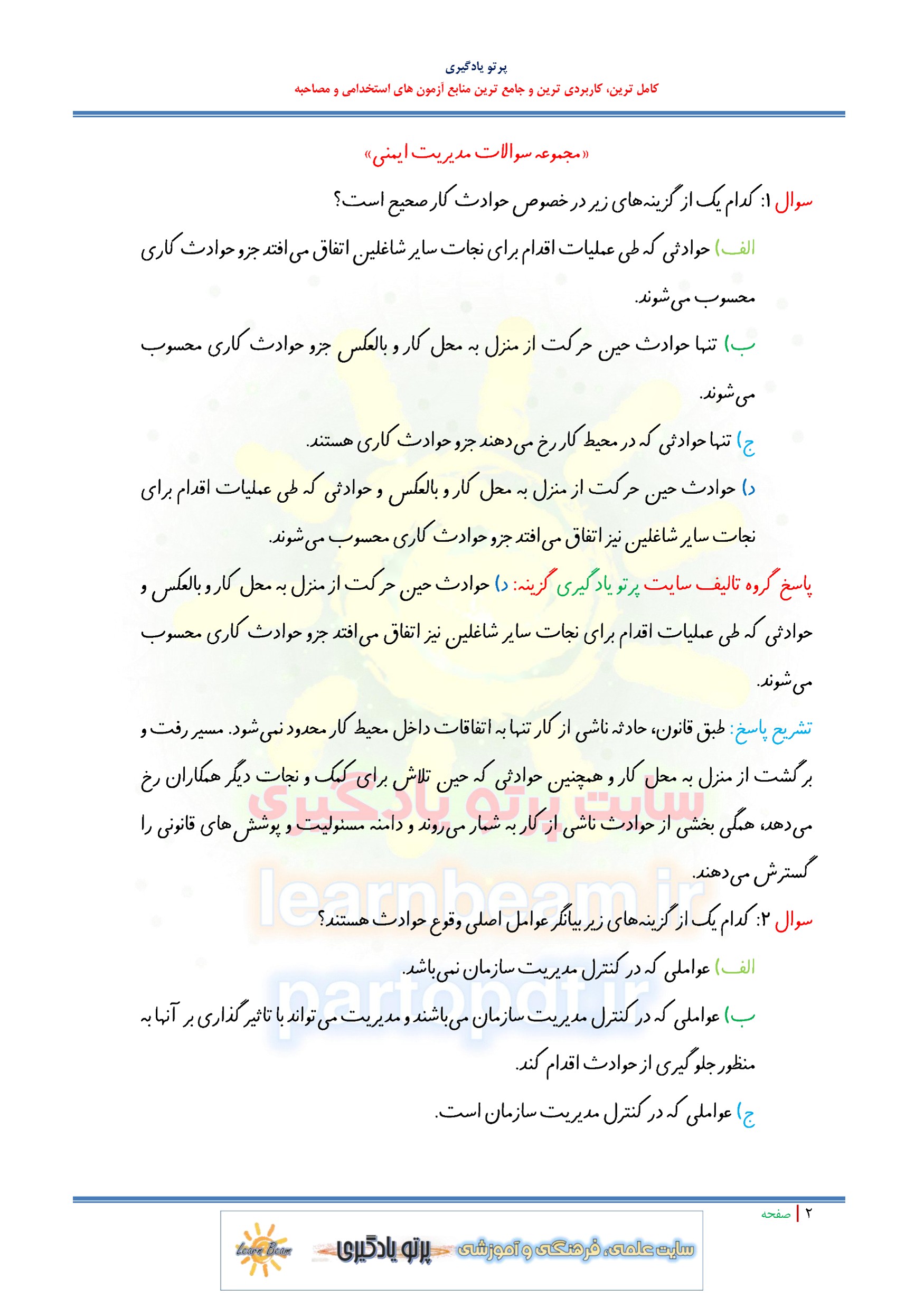 مجموعه سوالات و تست مدیریت ایمنی و ریسک با پاسخ تشریحی