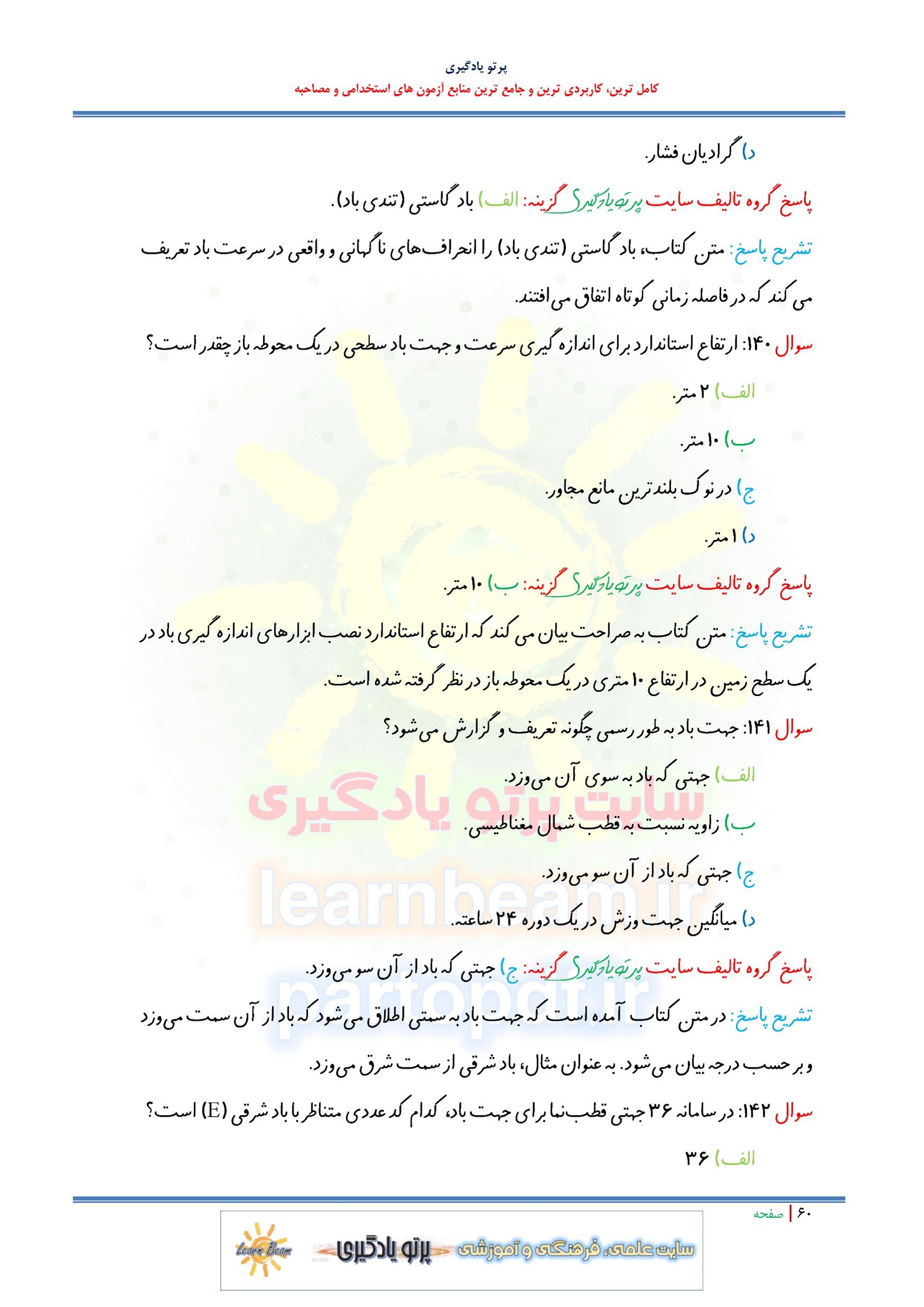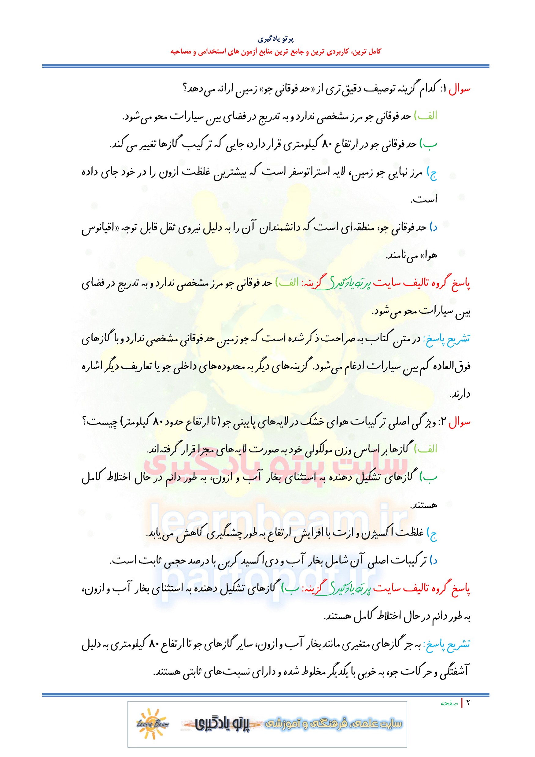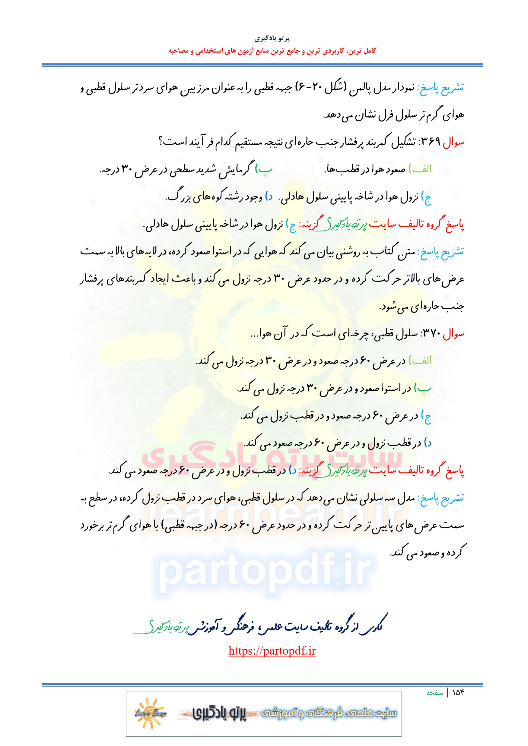 مجموعه سوالات و تست کتاب هواشناسی عمومی با پاسخ تشریحی