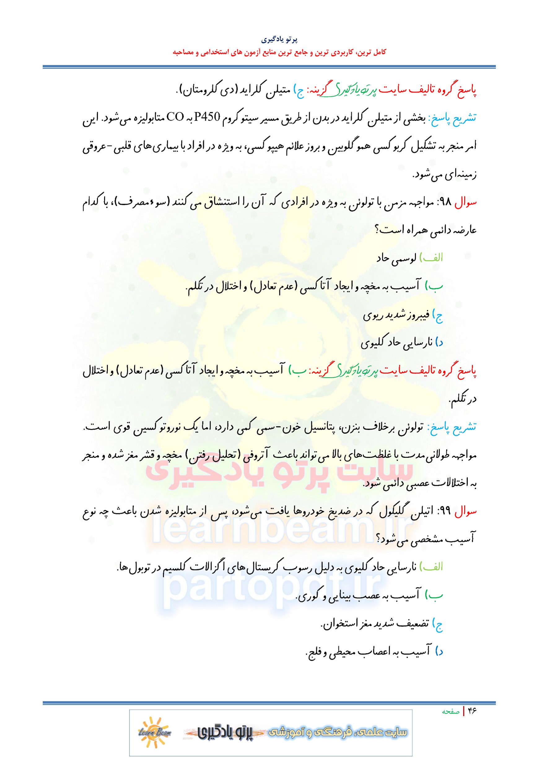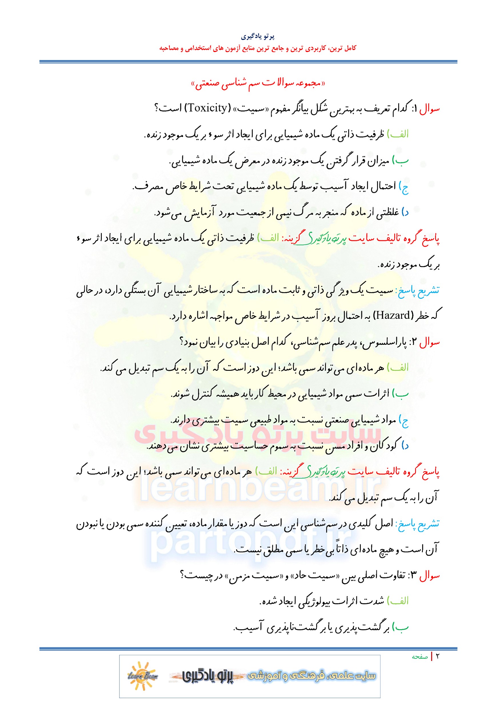 مجموعه سوالات و تست کتاب سم شناسی صنعتی و شغلی با پاسخ تشریحی