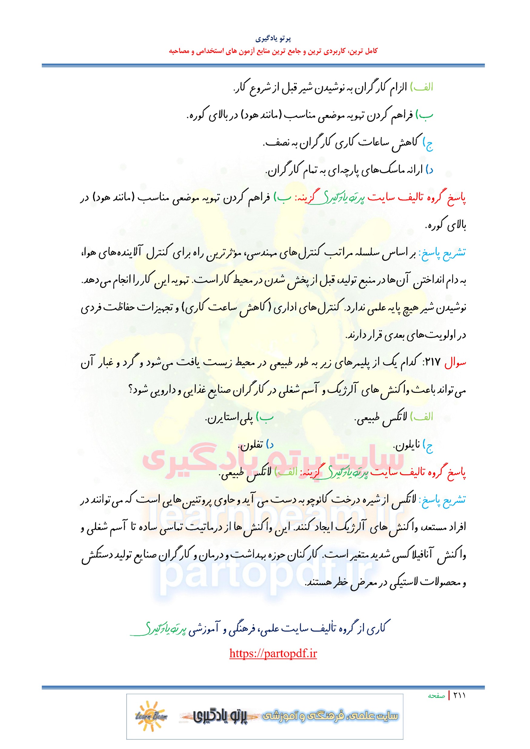 سوالات و تست کتاب سم شناسی صنعتی و شغلی سوالات تستی کتاب سم شناسی صنعتی و شغلی شامل 196 سوال تستی سم شناسی صنعتی و 217 سوال تستی سم شناسی شغلی و جمعا 413 سوال تستی در 211 صفحه با پاسخ تشریحی در قالب فایل pdf. مطابق با سرفصل های دفترچه آزمون های استخدامی. مجموعه تستی کتاب سم شناسی صنعتی و شغلی بهترین منبع برای آمادگی آزمون های استخدامی می باشد. مجموعه سوالات و تست کتاب سم شناسی صنعتی و شغلی مطالب خوانده شده داوطلبین آزمون استخدامی را نظم بخشیده و منسجم می سازد. مجموعه سوالات تستی کتاب سم شناسی صنعتی و شغلی ویژه آزمون های استخدامی مرور سریع داوطلب را سبب می شود و آگاهی های وی را نظم بخشیده و یک آمادگی و شبیه سازی را برای جلسه آزمون به همراه دارد. مطالعه پک مجموعه سوالات و تست کتاب سم شناسی صنعتی و شغلی این منبع داوطلبین آزمون های استخدامی پیشنهاد می شود.