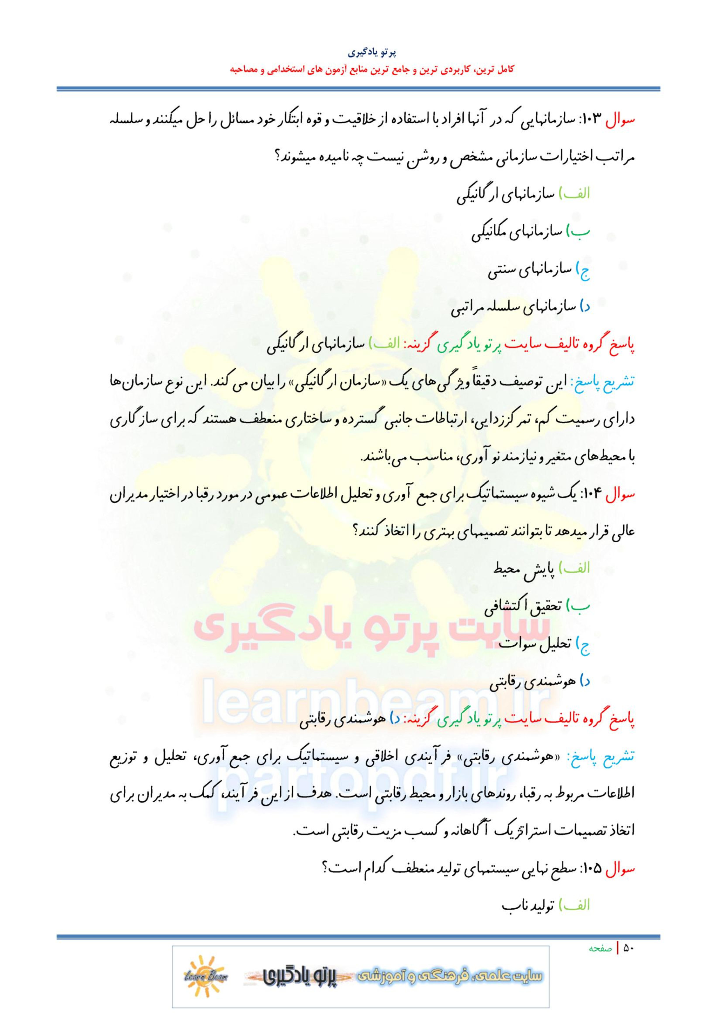 مجموعه سوالات و تست کتاب تئوری مدیریت با پاسخ تشریحی