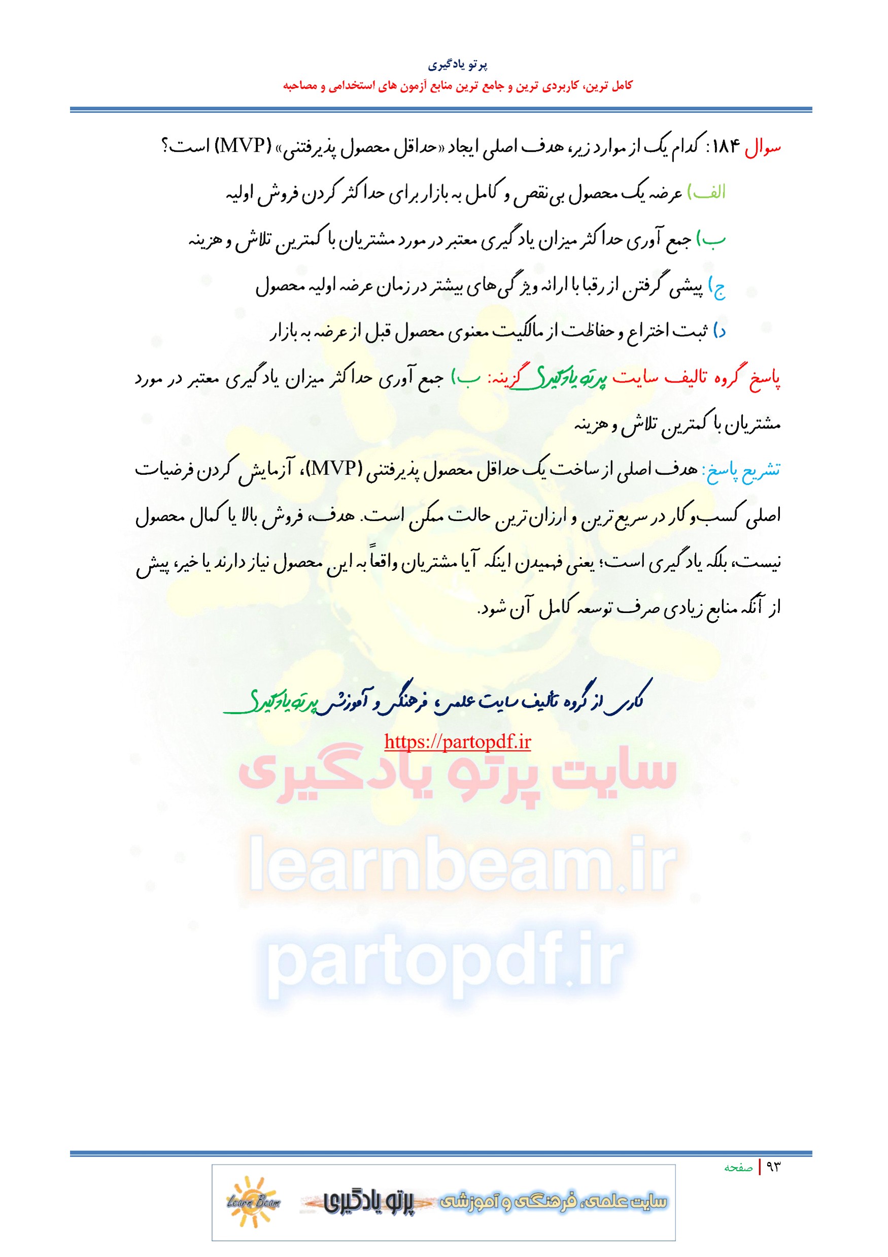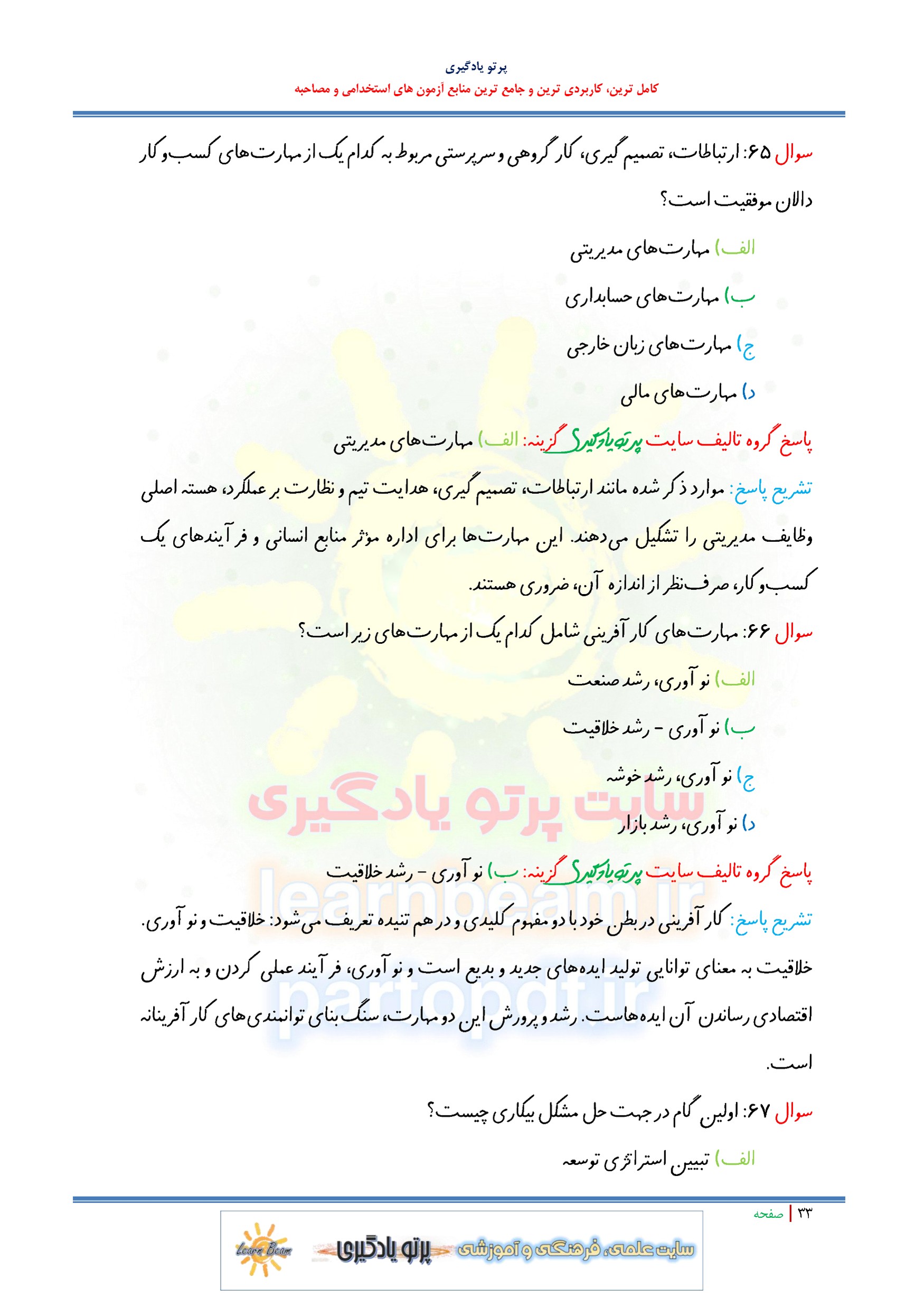 سوالات و تست کتاب نظریه های کارآفرینی سوالات کتاب نظریه های کارآفرینی شامل 184 سوال تستی در 93 صفحه با پاسخ تشریحی در قالب فایل pdf. بهترین منبع برای آزمون های استخدامی می باشد. مجموعه سوالات تستی کتاب نظریه های کارآفرینی مطالب خوانده شده داوطلبین آزمون استخدامی را نظم بخشیده و منسجم می سازد. این مجموعه مرور سریع داوطلب را سبب می شود و آگاهی های وی را نظم بخشیده و یک آمادگی و شبیه سازی را برای جلسه آزمون به همراه دارد. مطالعه این منبع برای همه داوطلبین شرکت کننده در آزمون های استخدامی پیشنهاد می شود.