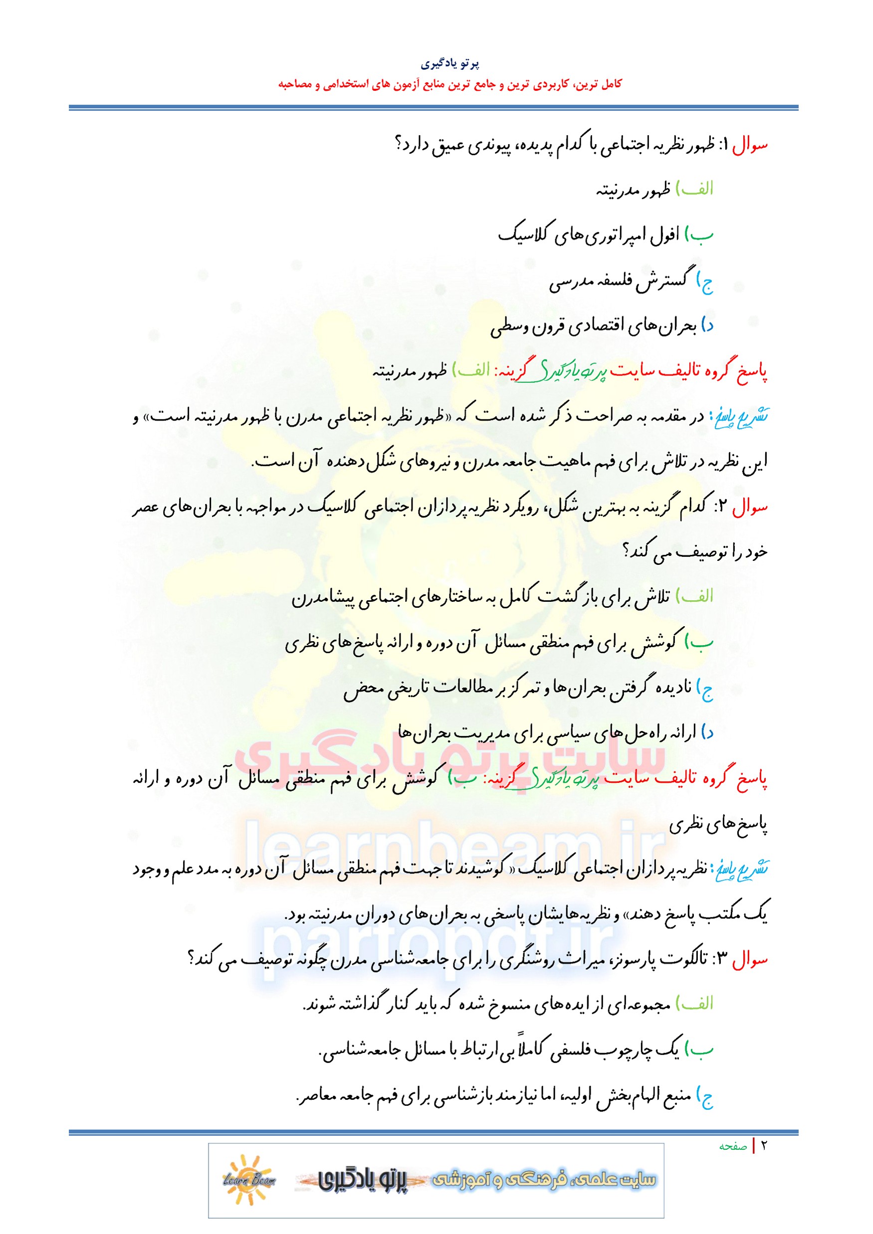 مجموعه سوالات و تست کتاب مبانی علوم اجتماعی با پاسخ تشریحی
