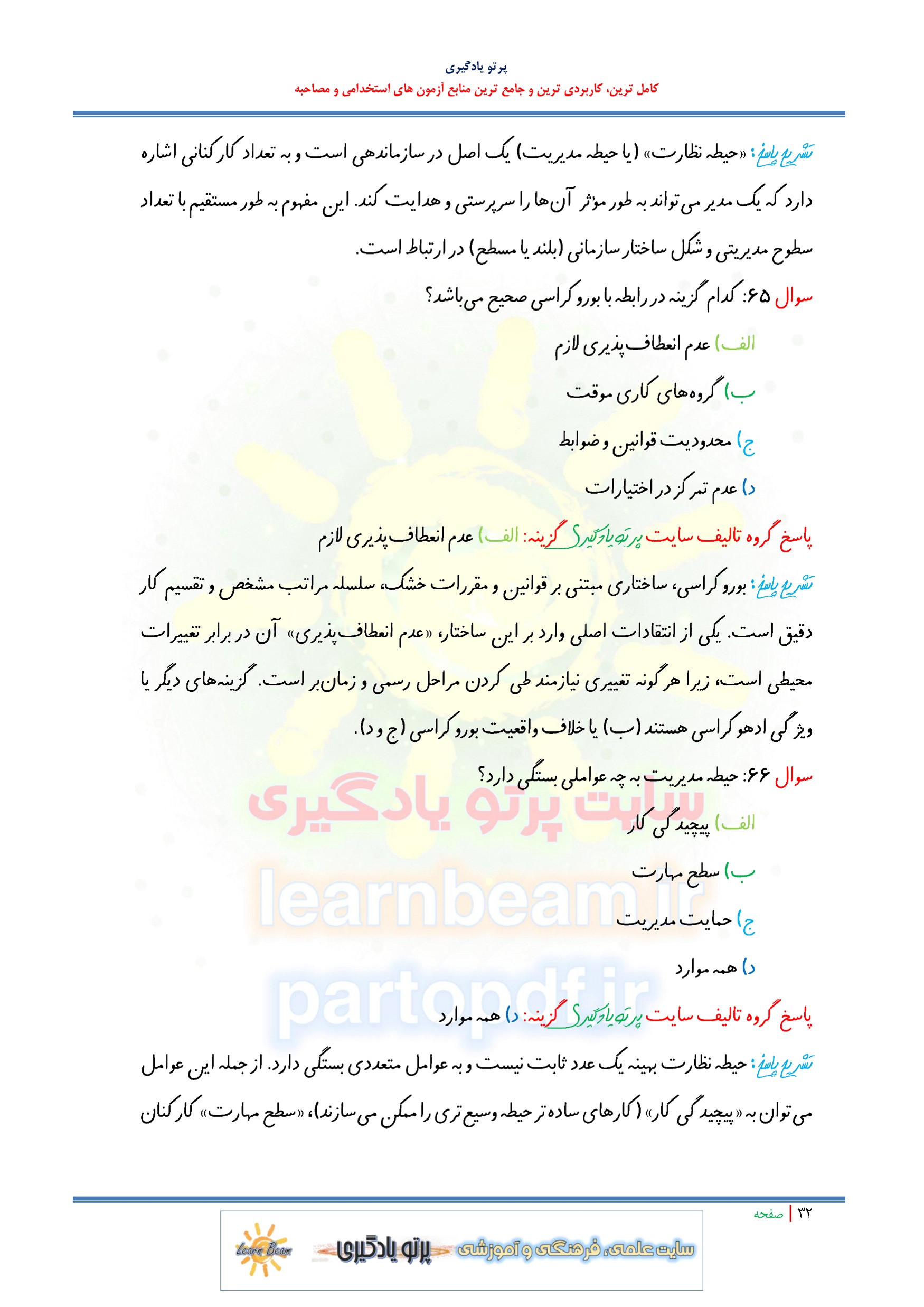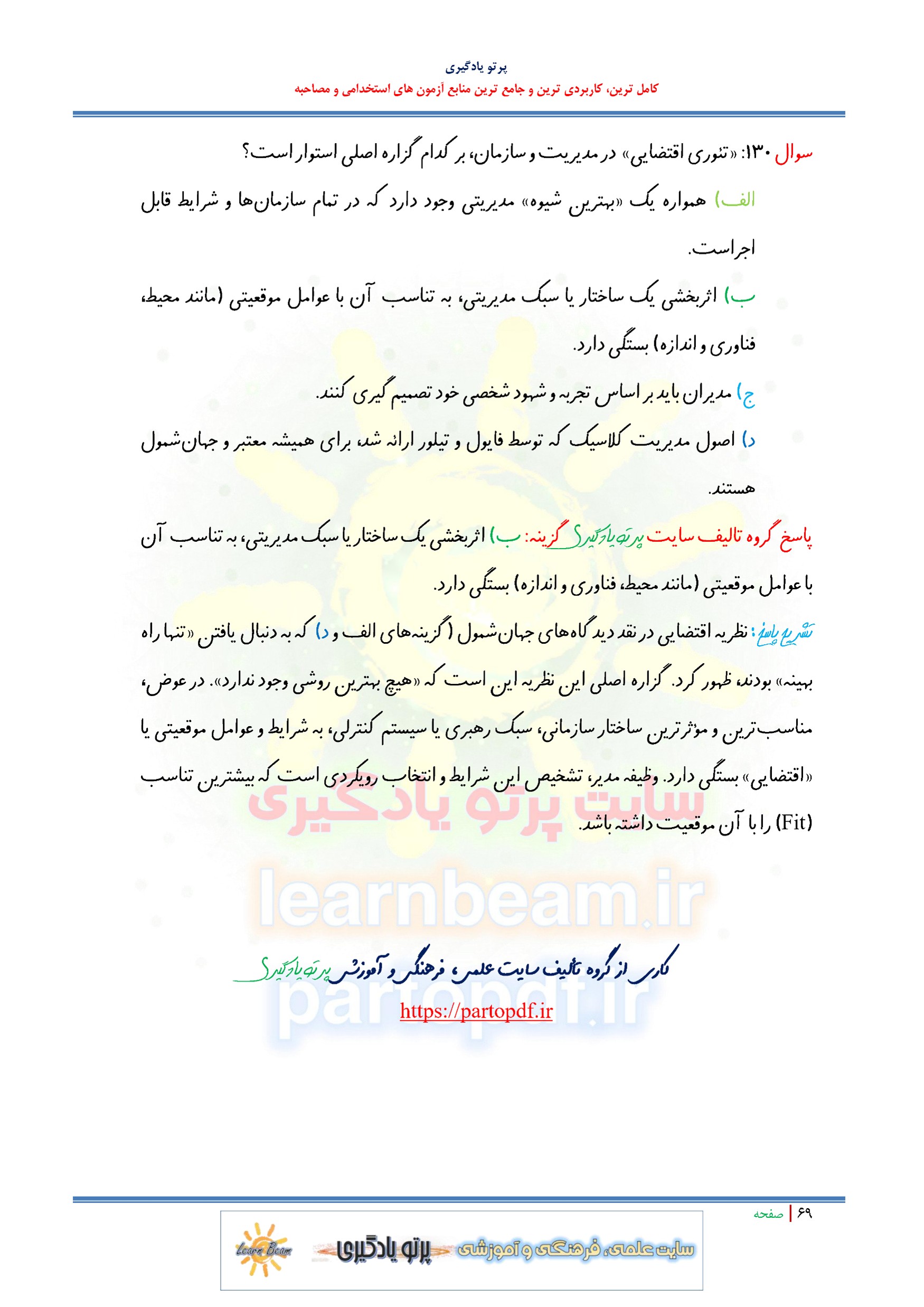 مجموعه سوالات و تست کتاب مبانی مدیریت عمومی با پاسخ تشریحی
