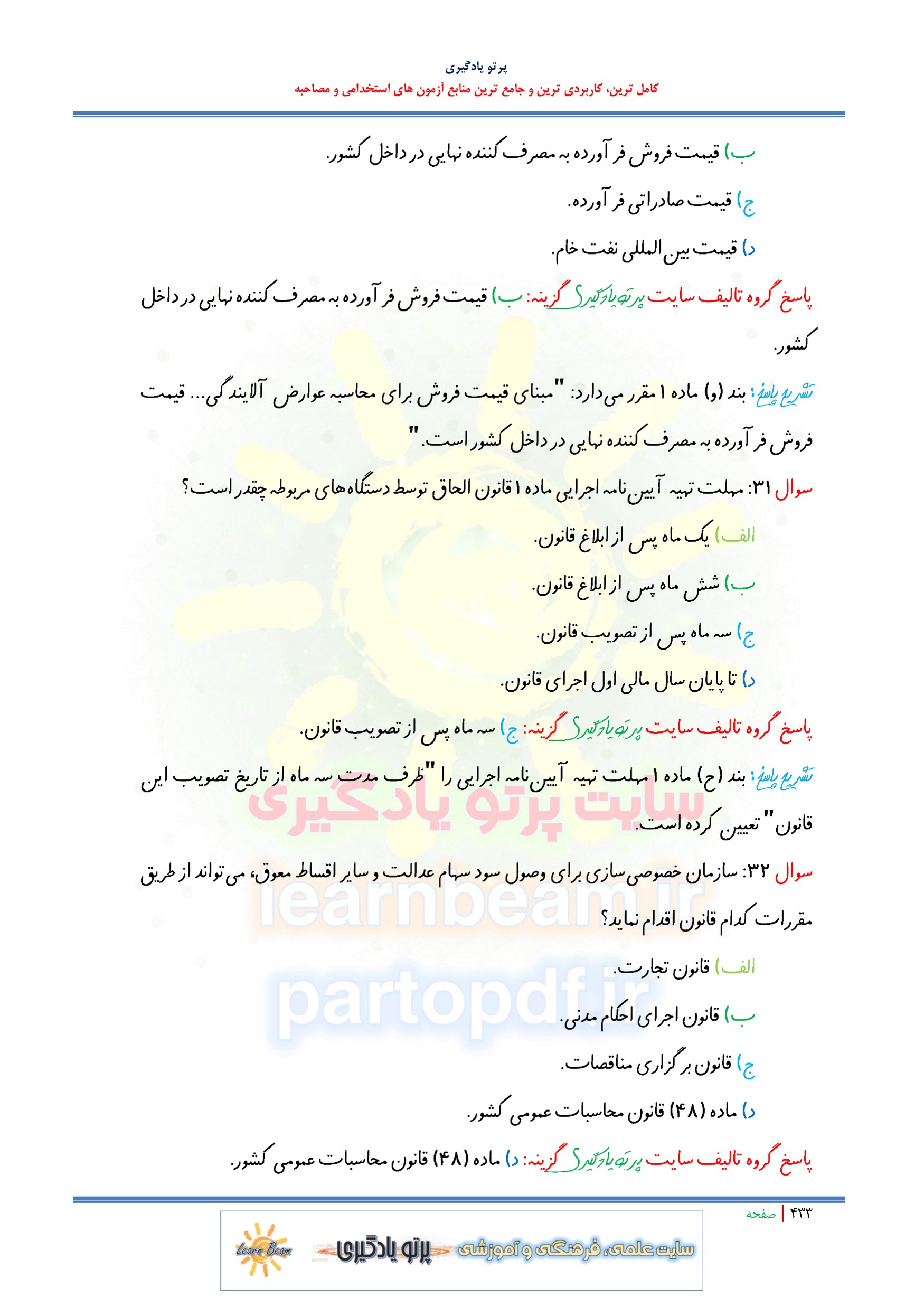 - سوالات تستی: قانون الحاق برخي مواد به قانون تنظيم بخشي از مقررات مالي دولت (150 تست)