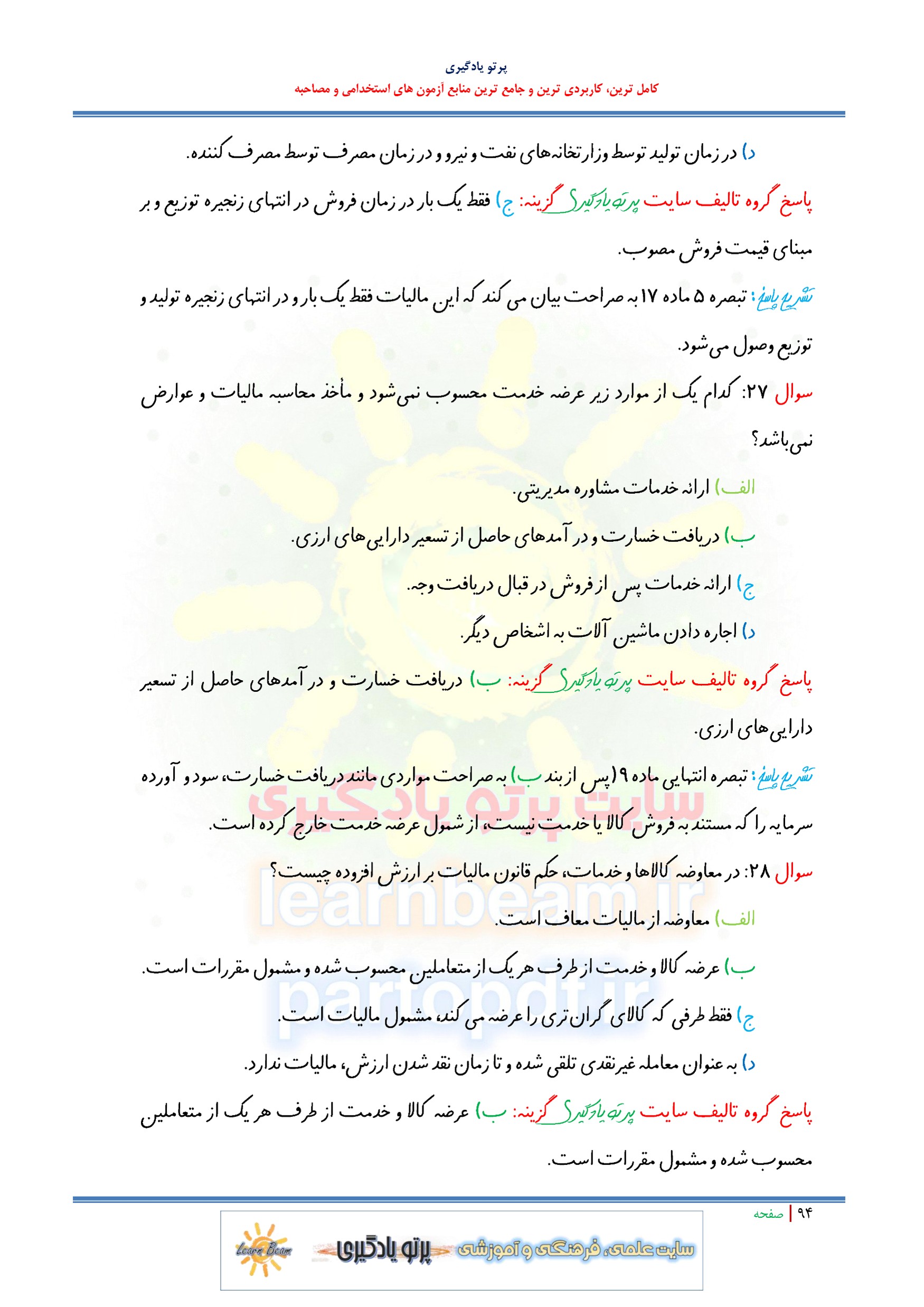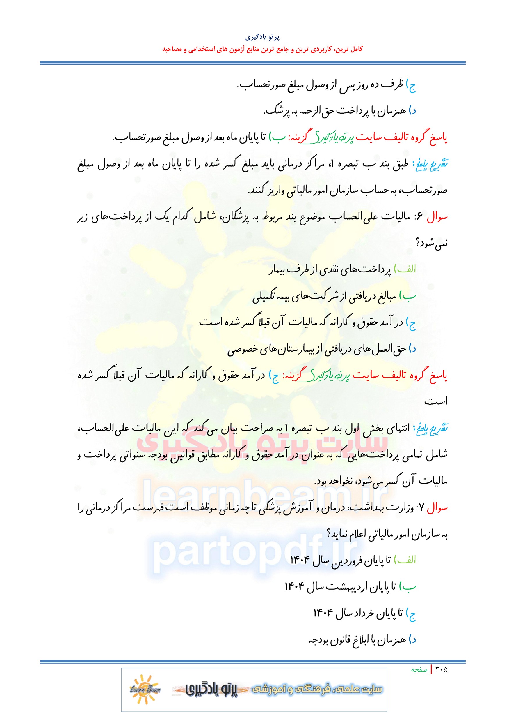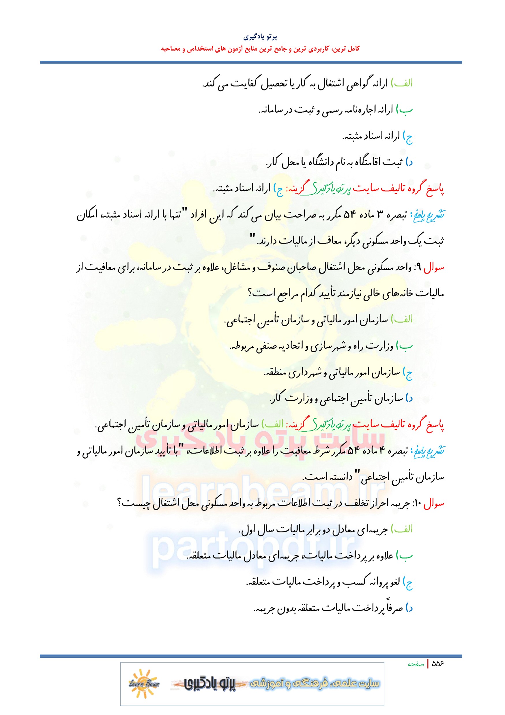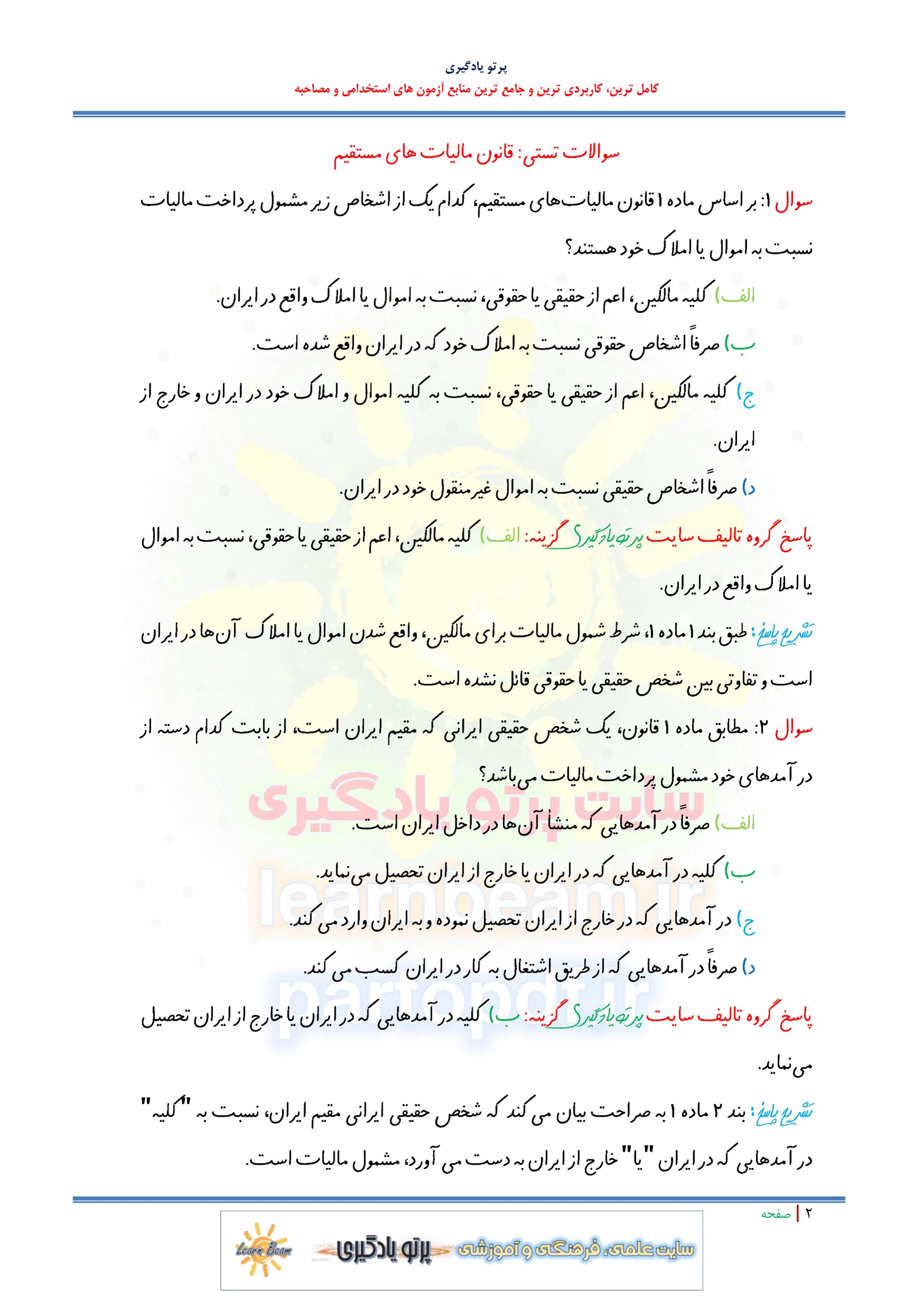 مجموعه سوالات و تست قوانین مالیاتی با پاسخ تشریحی