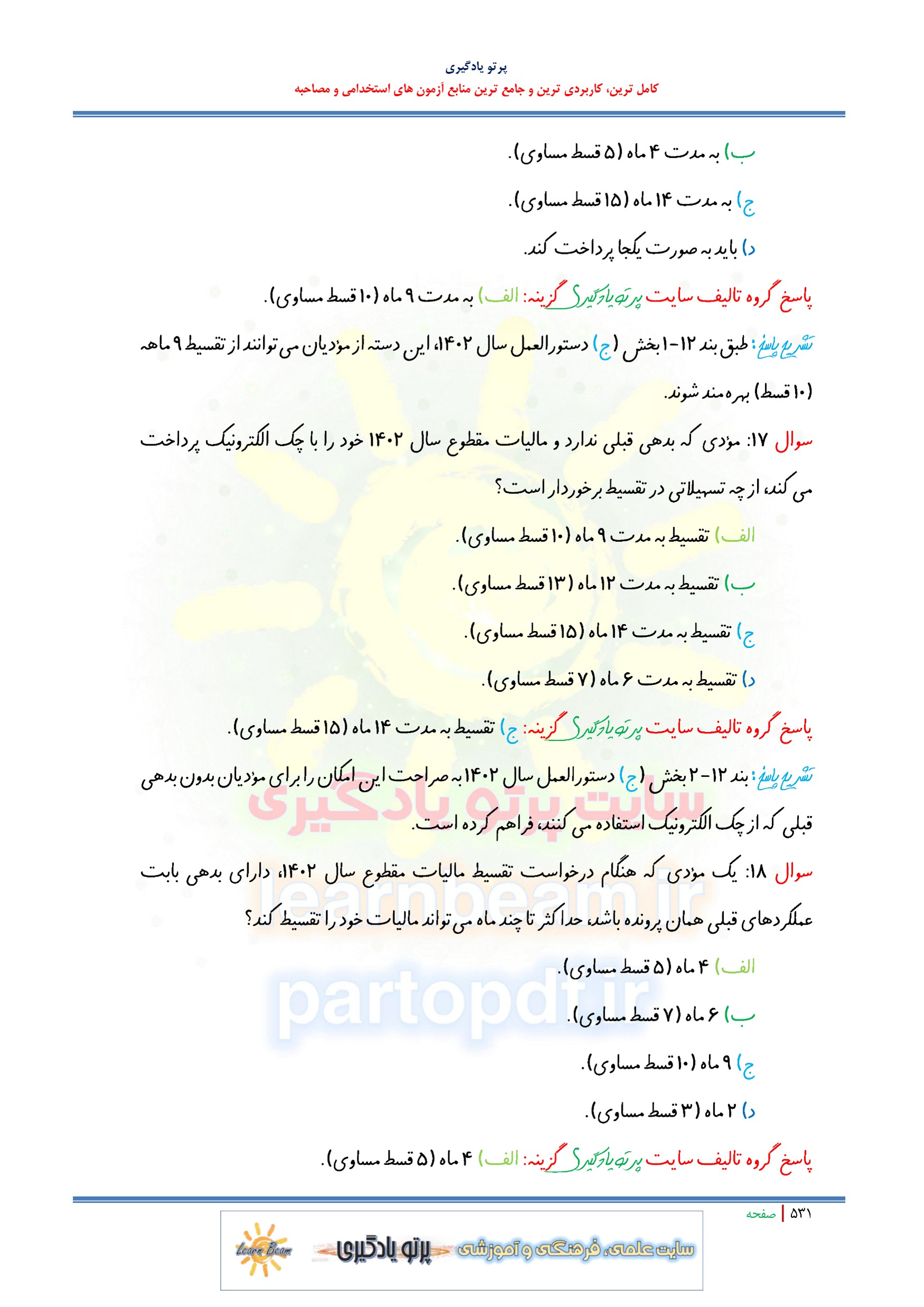 - سوالات تستی: دستورالعمل های مالیاتی با آخرین اصلاحات (75 تست)