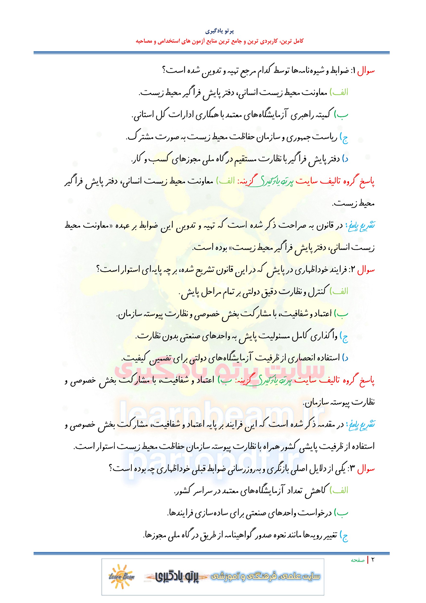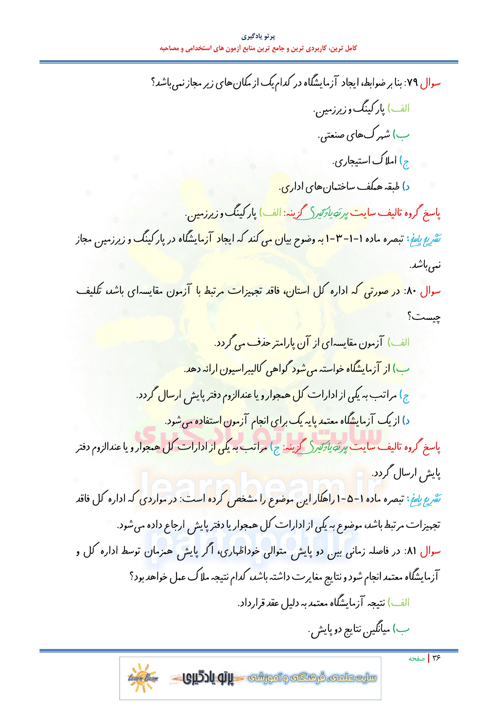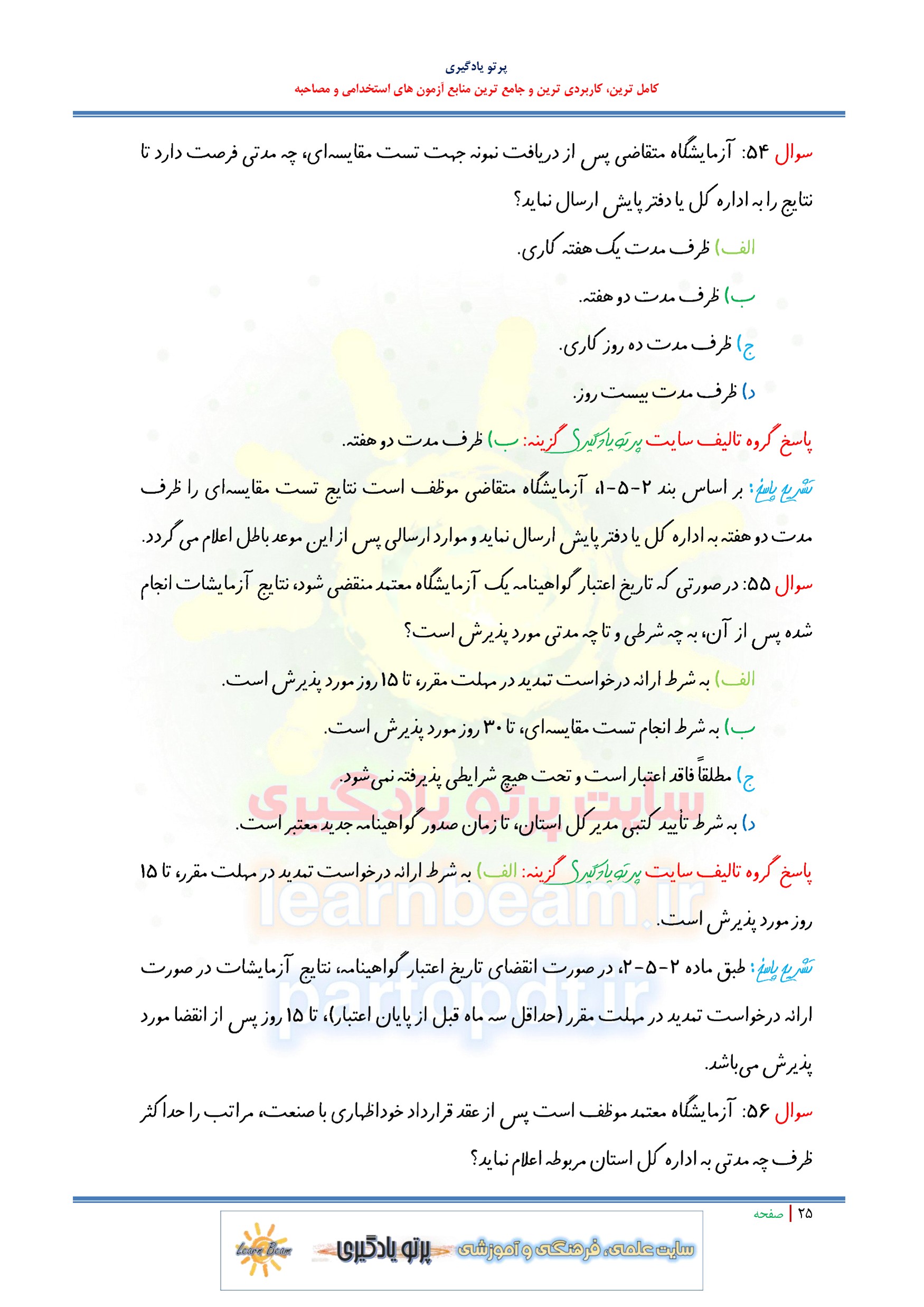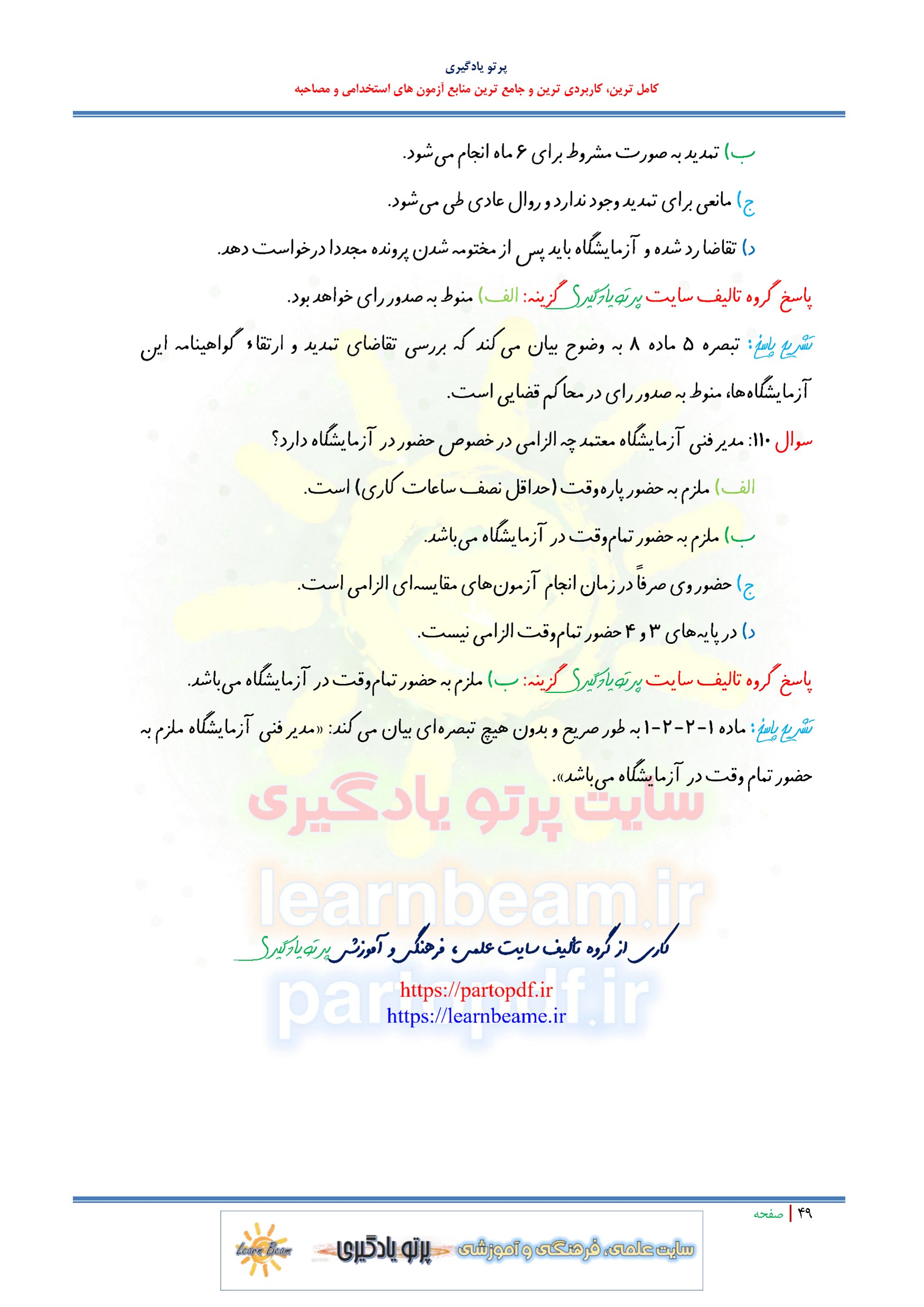 مجموعه سوالات و تست قوانین و مقررات پایش و شیوه نامه خوداظهاری آزمایشگاه های معتمد با پاسخ تشریحی