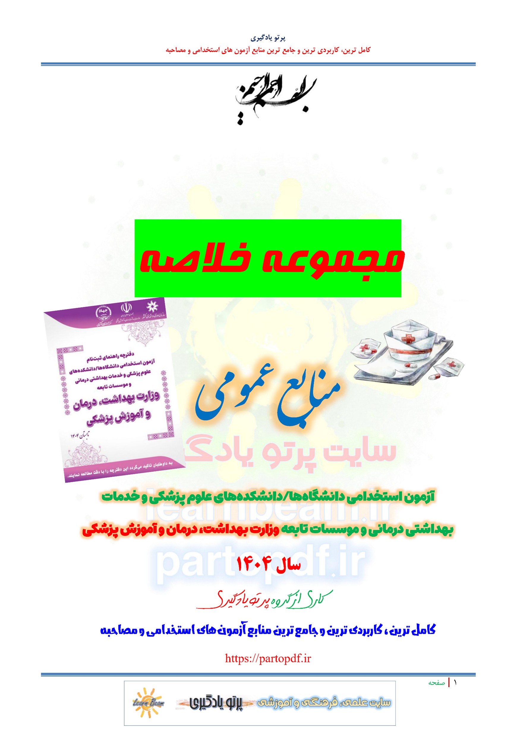 خلاصه منابع عمومی آزمون استخدامی دانشگاهها و دانشکدههای علوم پزشکی و خدمات بهداشتی درمانی و موسسات تابعه وزارت بهداشت درمان و آموزش پزشکی