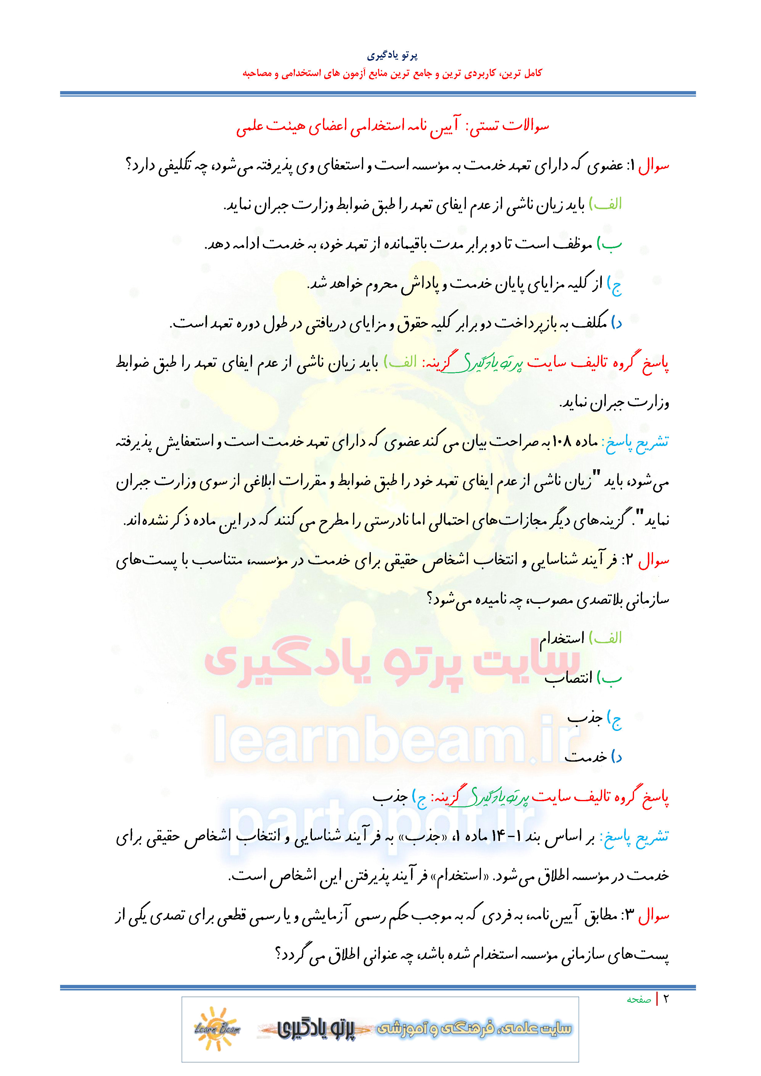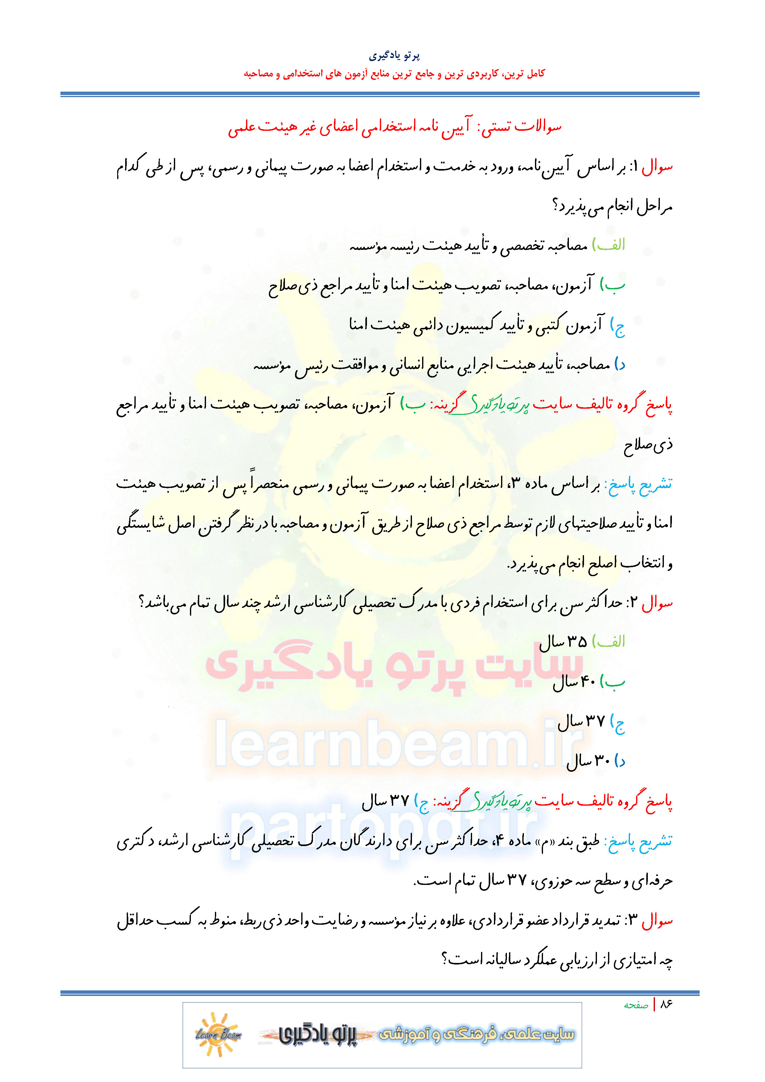 مجموعه سوالات و تست آیین نامه های استخدامی دانشگاه ها با پاسخ تشریحی