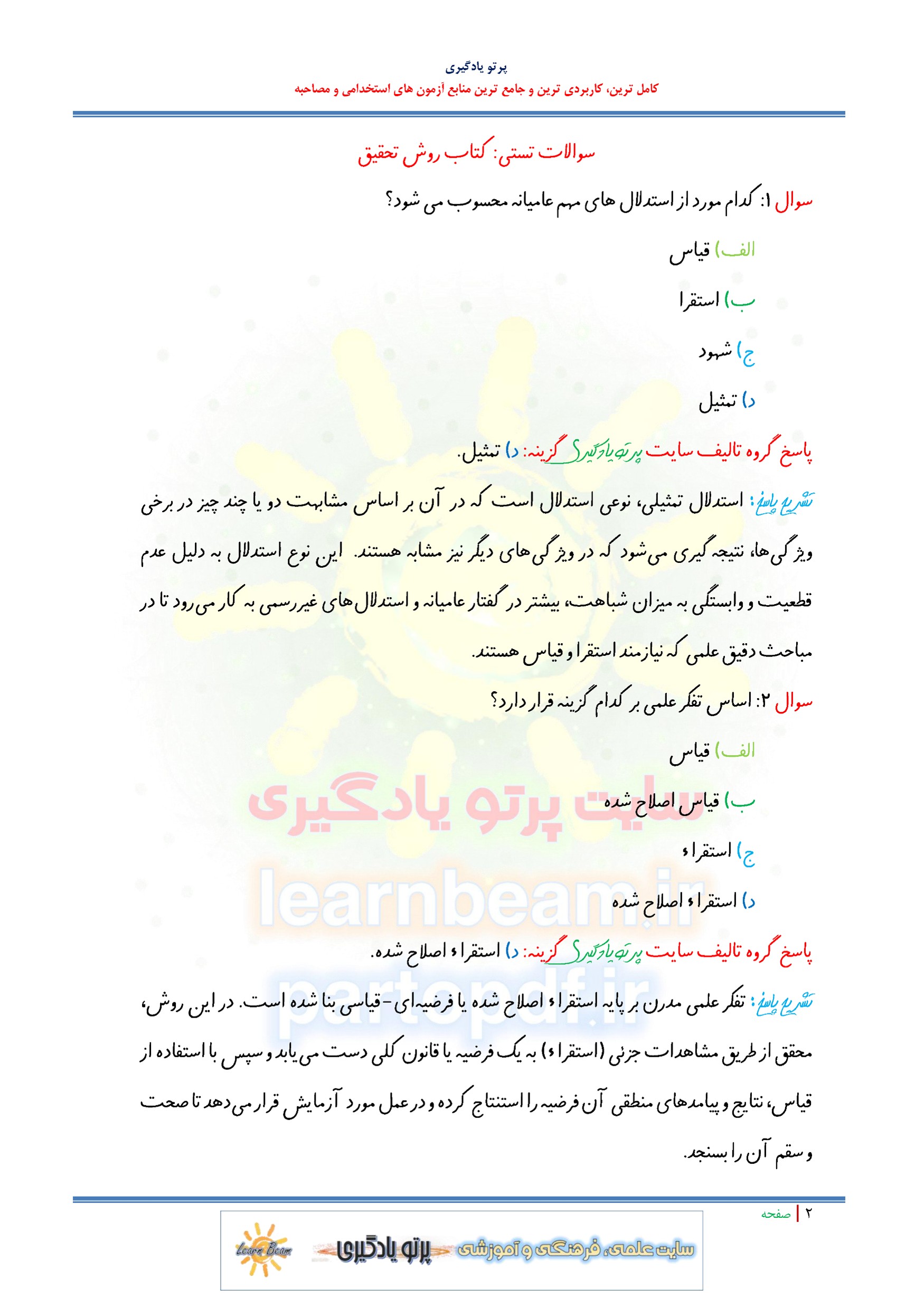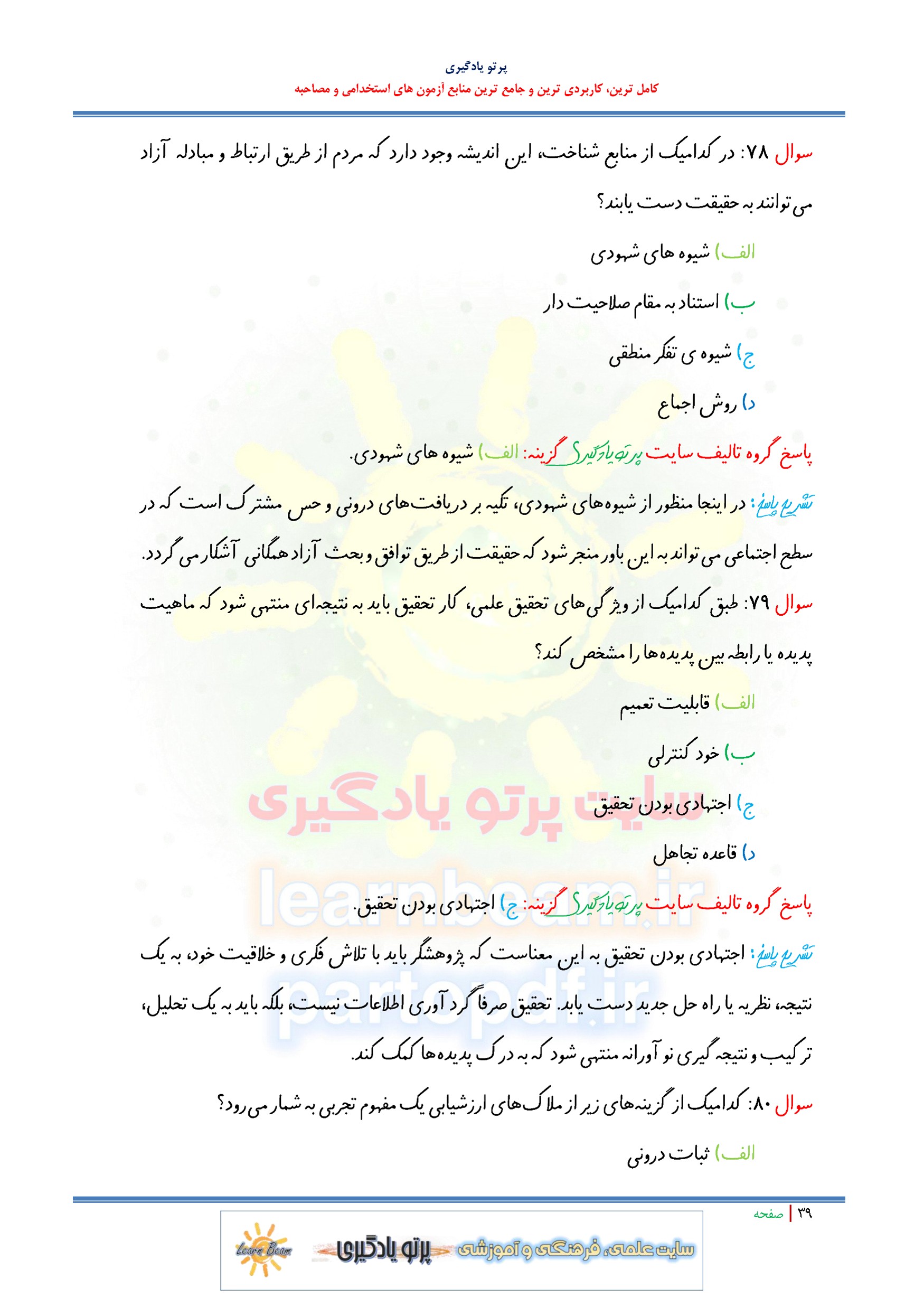 مجموعه سوالات و تست کتاب روش تحقیق با پاسخ تشریحی