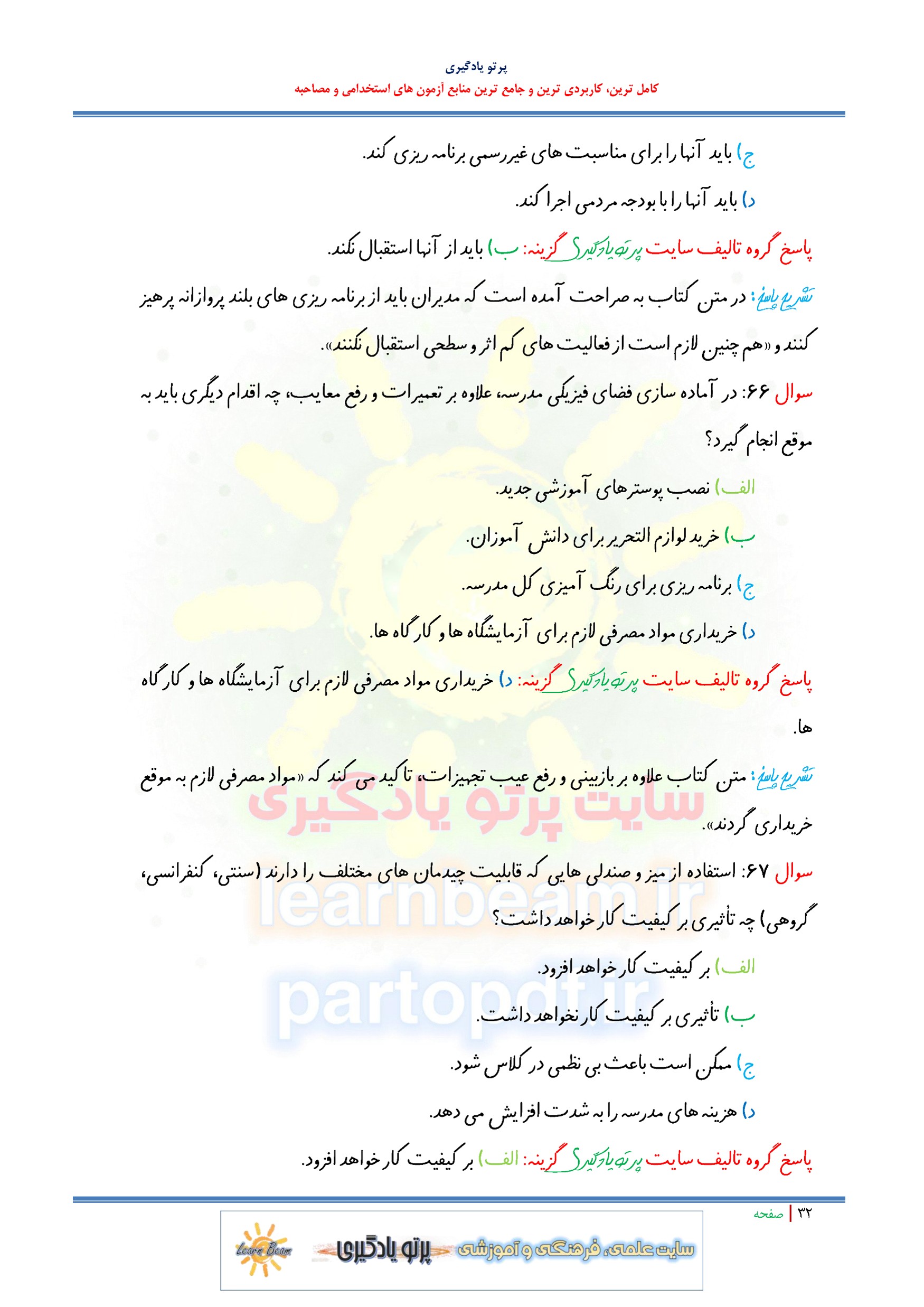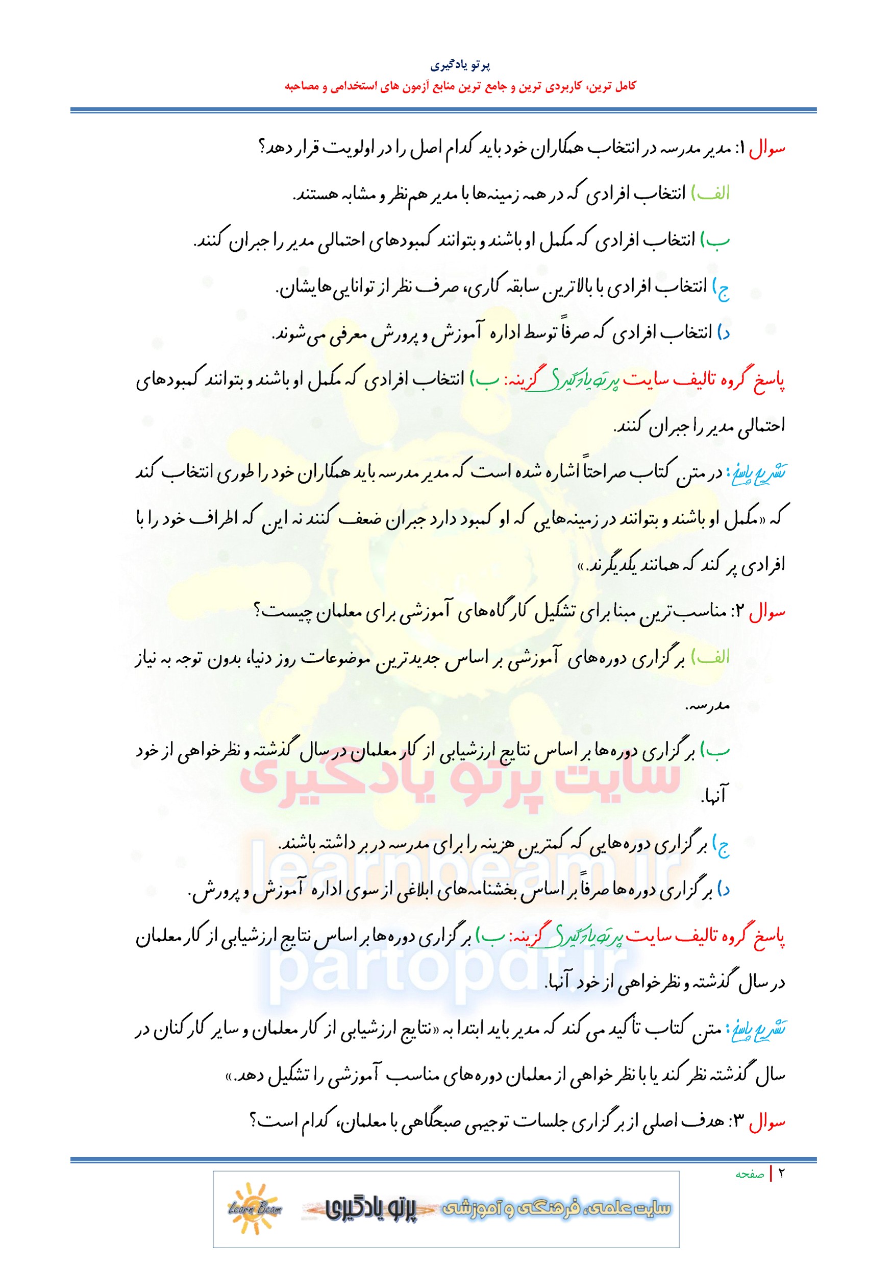 سوالات تستی کتاب از مدیریت خوب تا رهبری عالی