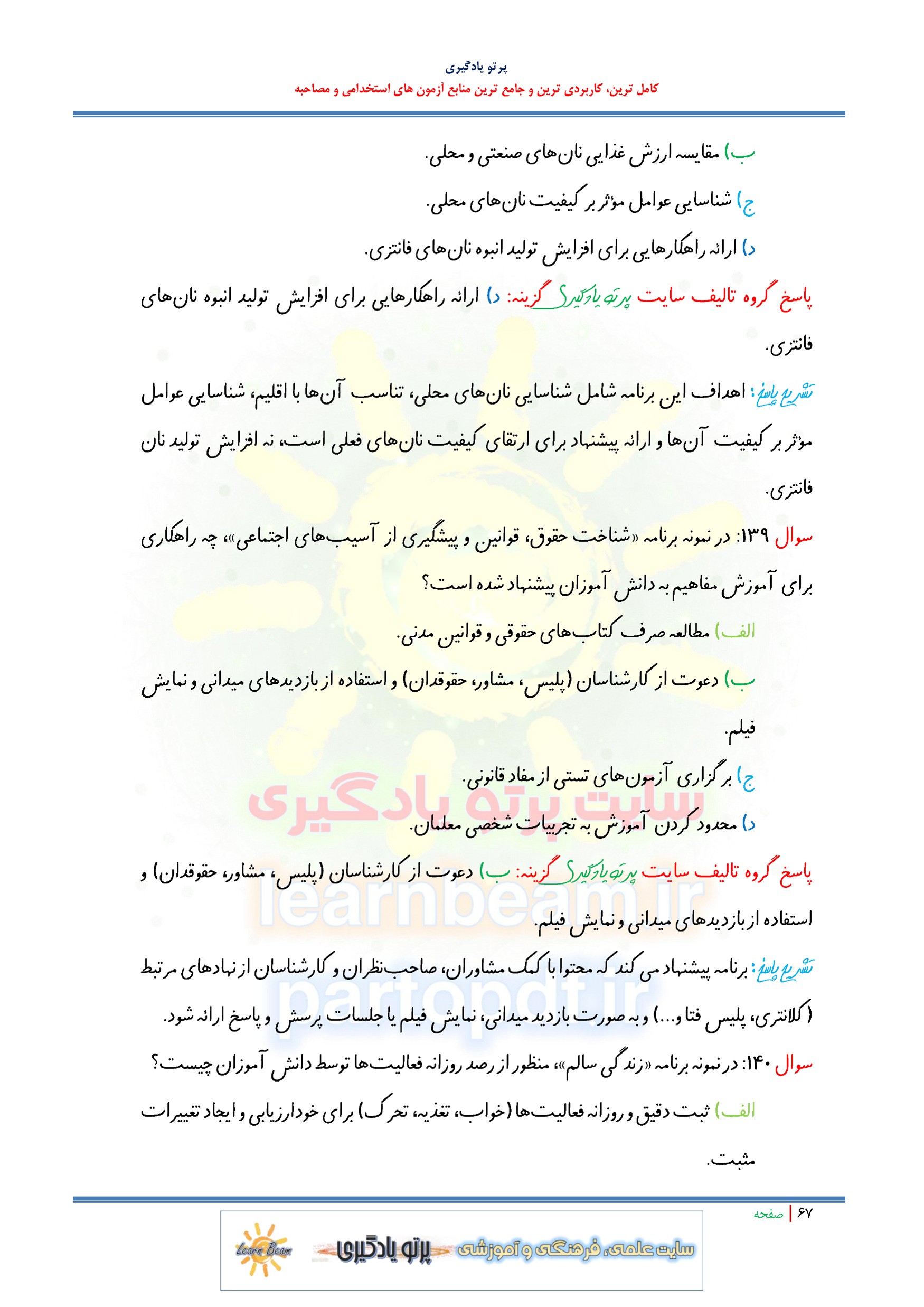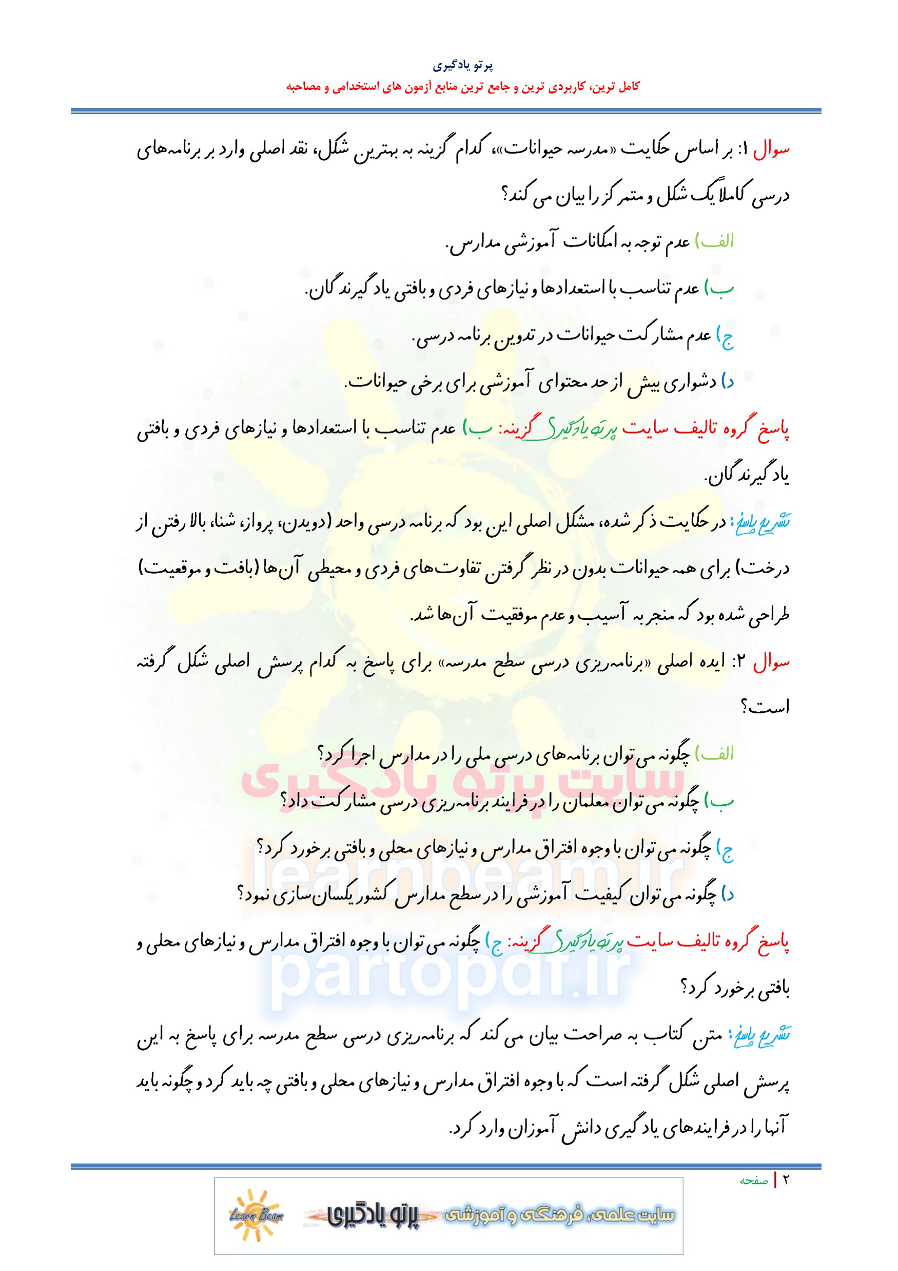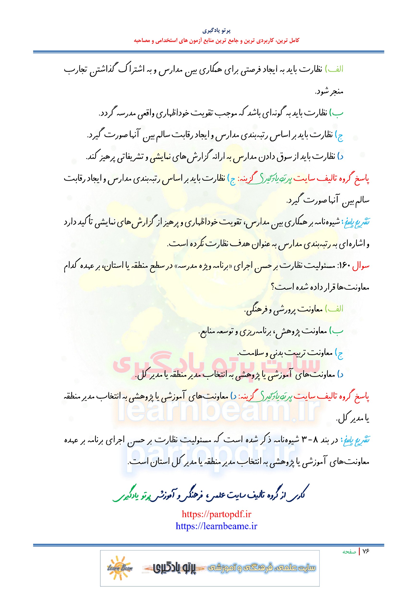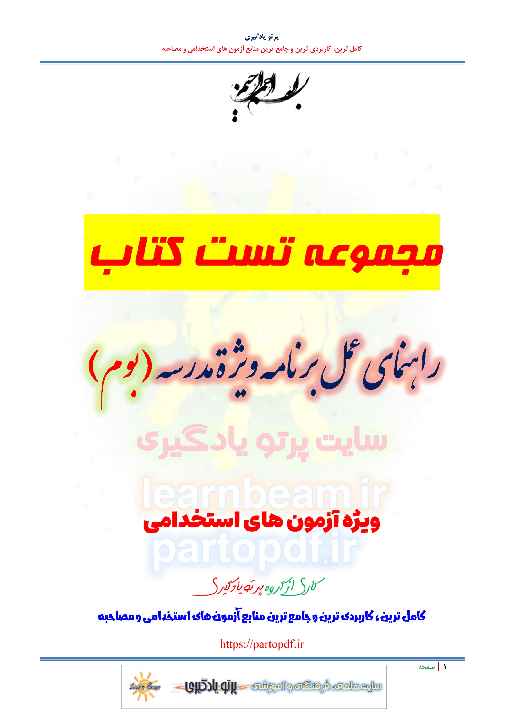 مجموعه سوالات و تست کتاب راهنمای عمل برنامه ویژه مدرسه بوم با پاسخ تشریحی
