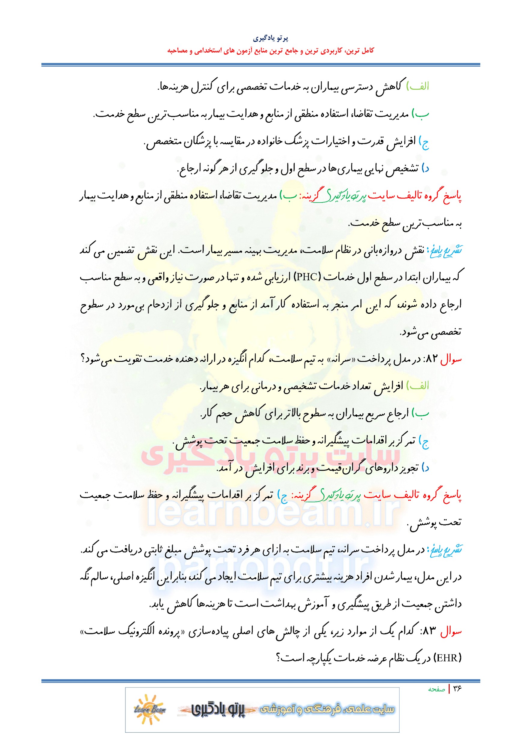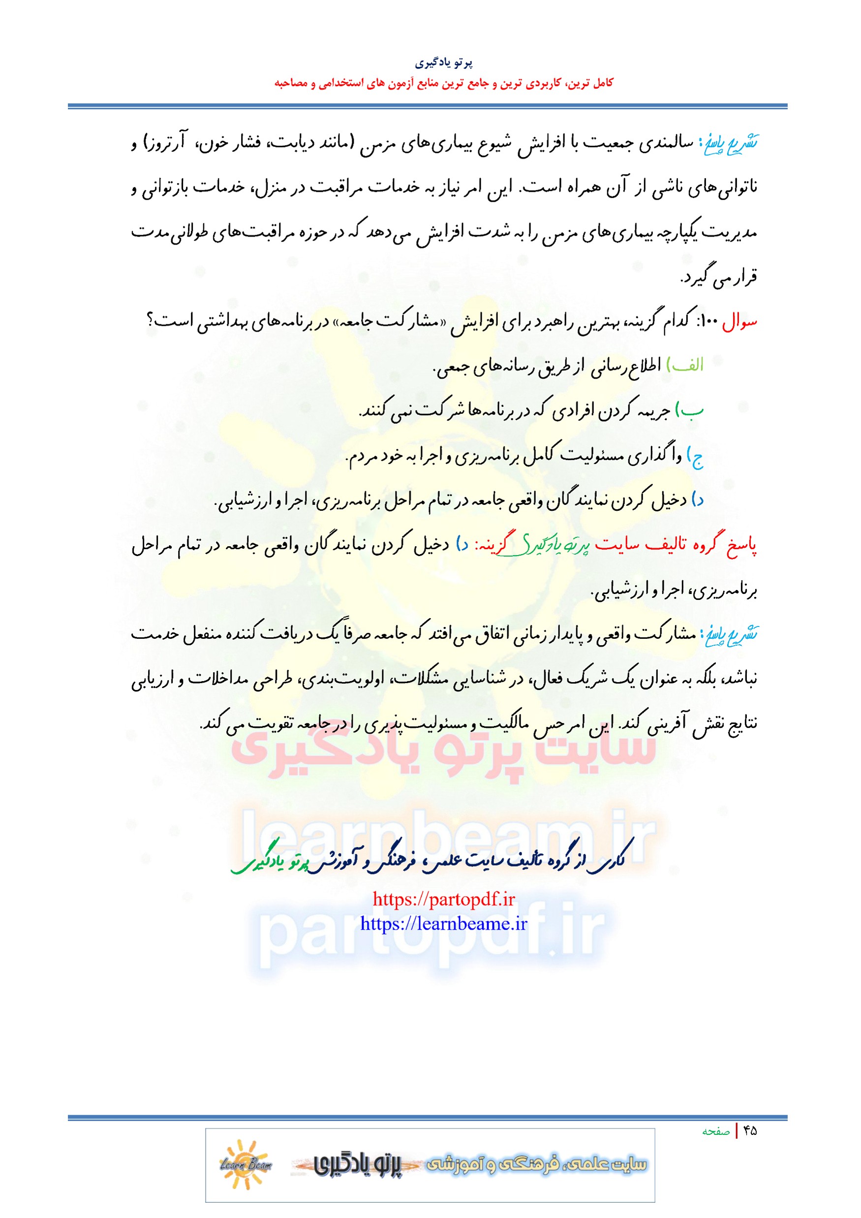 مجموعه سوالات و تست کتاب نظام عرضه خدمات بهداشت مادر و کودک با پاسخ تشریحی